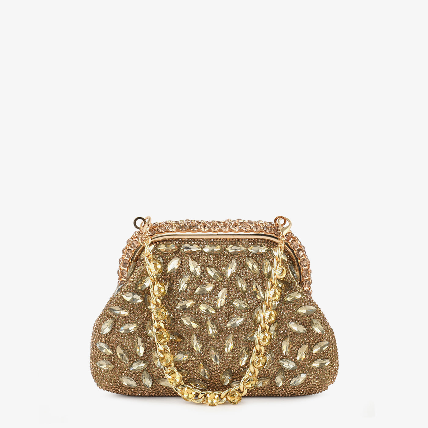 • Design: Frame clutch with embellished clasp and chain strap