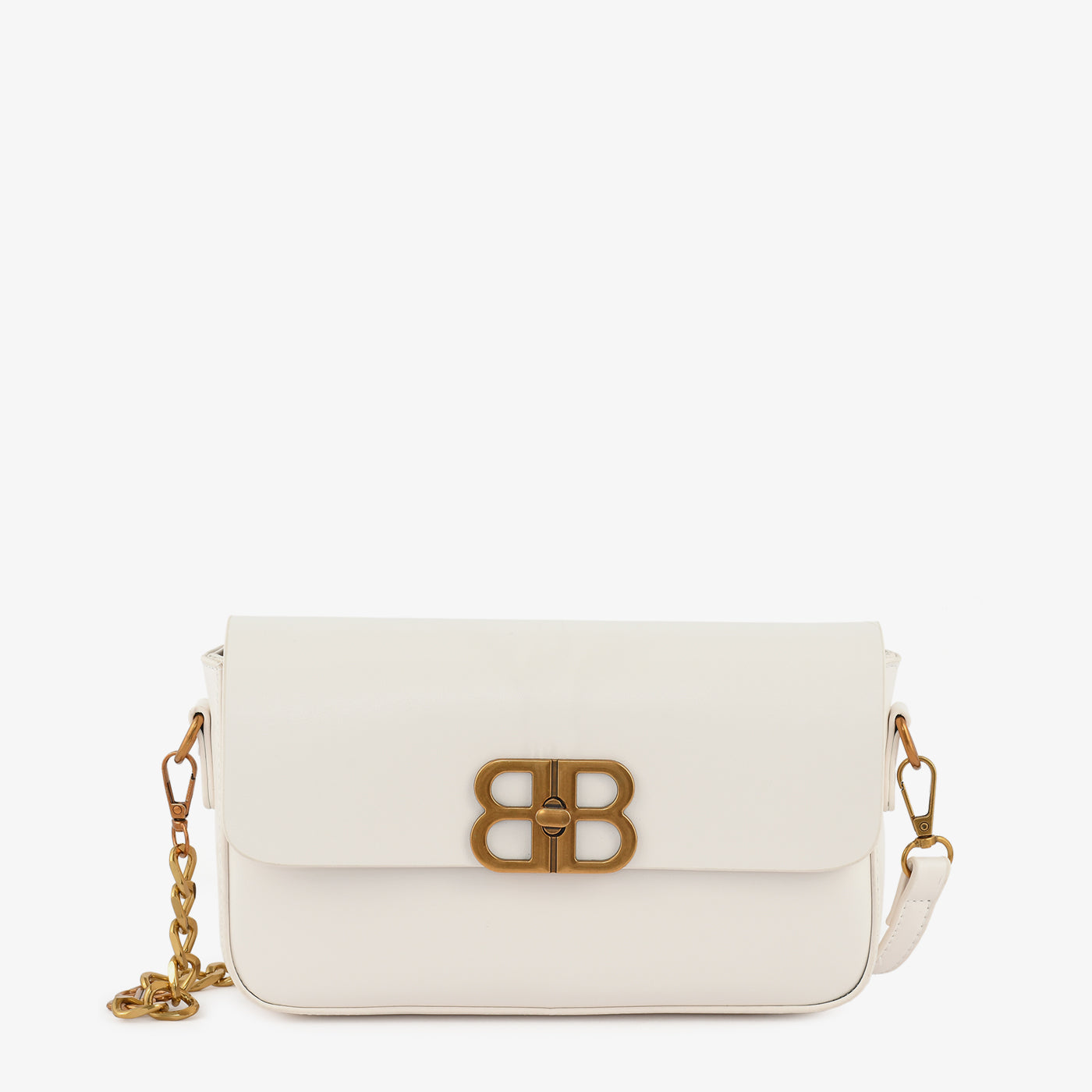 A refined crossbody handbag with a sleek silhouette, elevated by a signature emblem lock and a touch of golden hardware. Its structured style and versatile chain strap make...