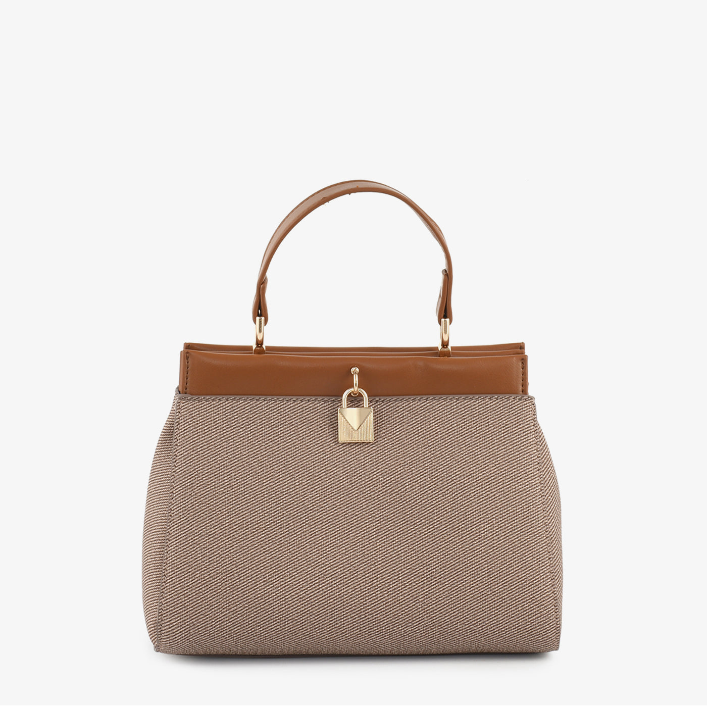 This elegantly crafted handbag features a structured silhouette with a refined textured finish that adds a touch of sophistication to your everyday and formal looks. Designed with a sturdy top handle and a secure lock-style front detail, it offers both style and functionality. The spacious main compartment with smooth inner lining provides ample room for your essentials, while the balanced structure ensures comfortable handling. Built for durability and timeless appeal, this bag is ideal for office wear, social gatherings, and evening outings.