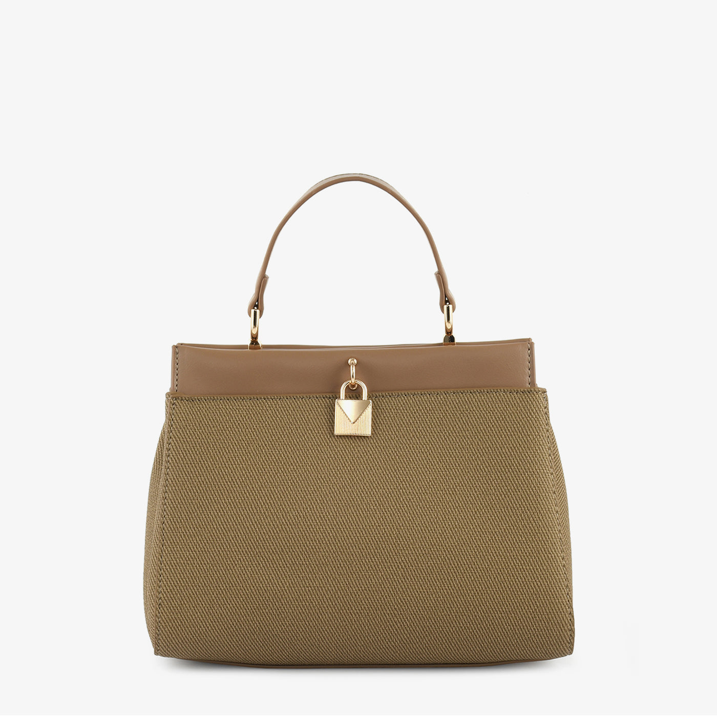 • Design: Structured handbag with top handle, secure front lock detail, and spacious interior