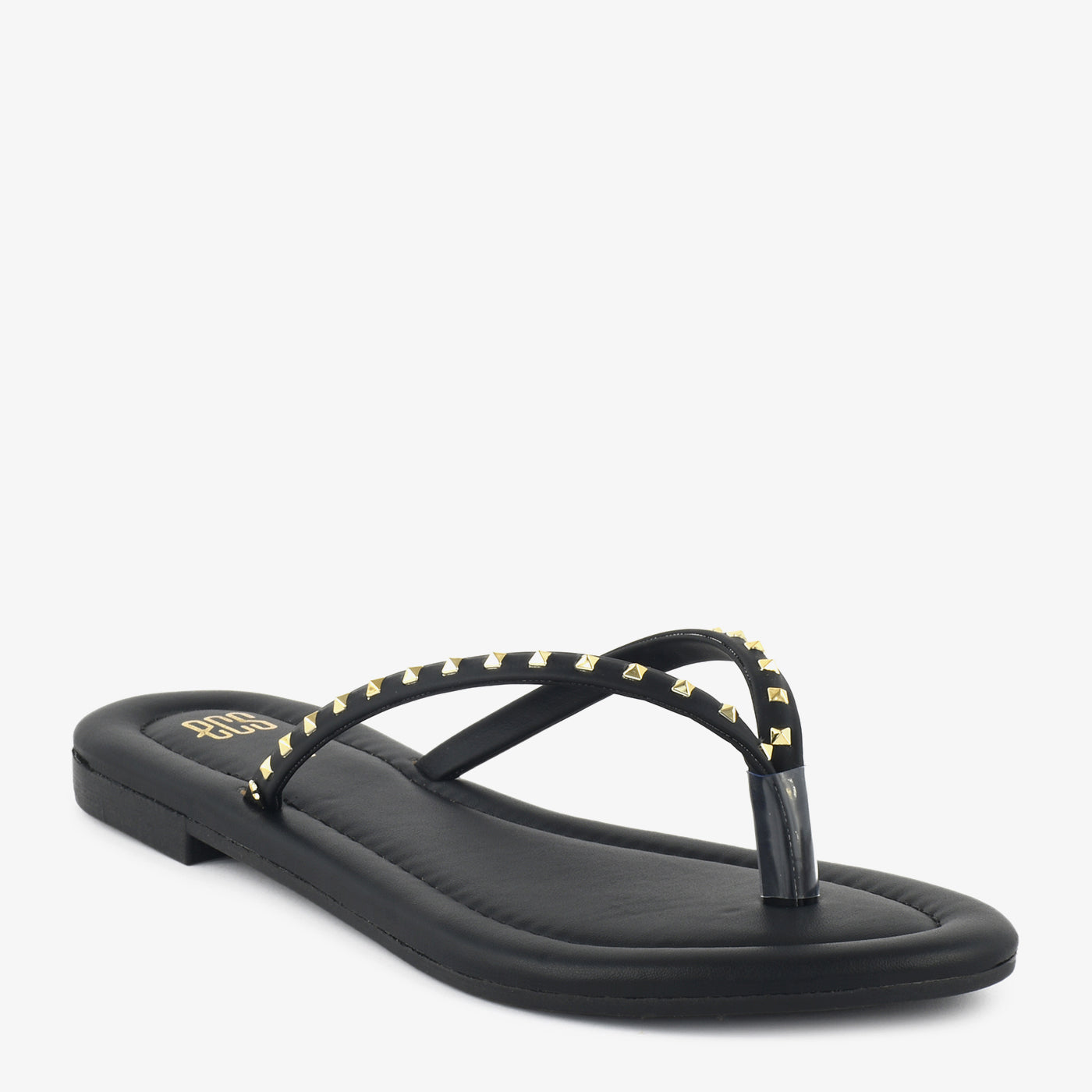 This sleek black chappal features a refined silhouette highlighted with subtle metallic stud detailing. Designed for everyday casual wear, it offers a cushioned footbed for lasting comfort. Slim straps provide a secure yet elegant fit. Lightweight construction supports easy movement throughout the day. The minimalist finish enhances its premium appeal. Perfect for relaxed outings and daily styling. A versatile essential for modern wardrobes.