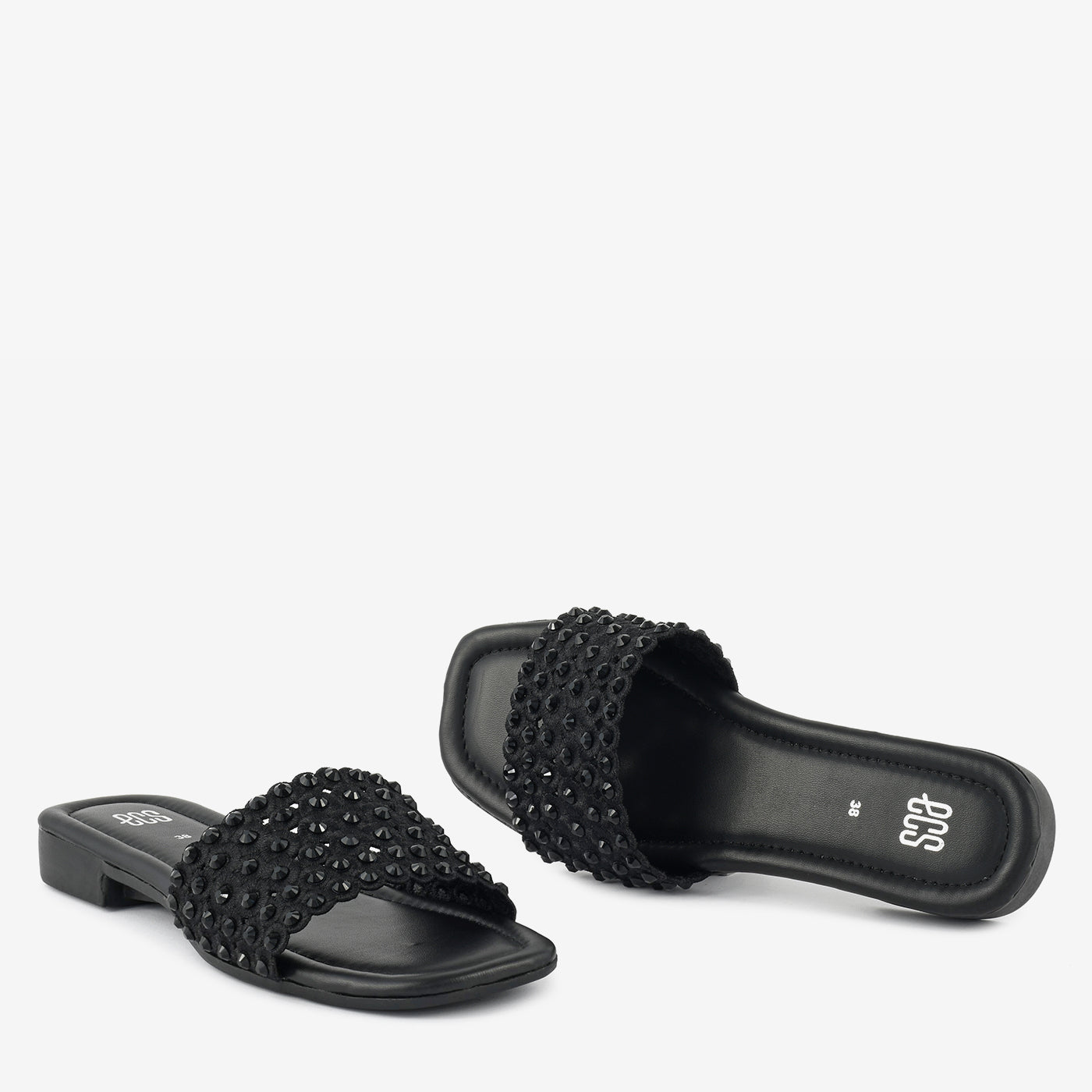 Designed with a sleek and modern look, this slipper combines subtle shine with everyday comfort. The upper features neatly arranged stud embellishments that add texture and a refined decorative touch while keeping the design stylish and minimal. The soft cushioned footbed offers gentle support for daily wear, while the low heel provides comfortable elevation and stability. The open slip-on design makes it easy to wear, making it perfect for casual outings or relaxed occasions.