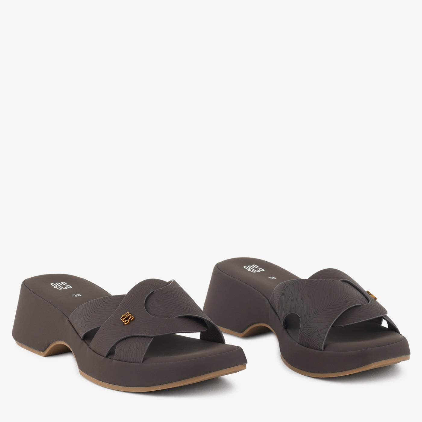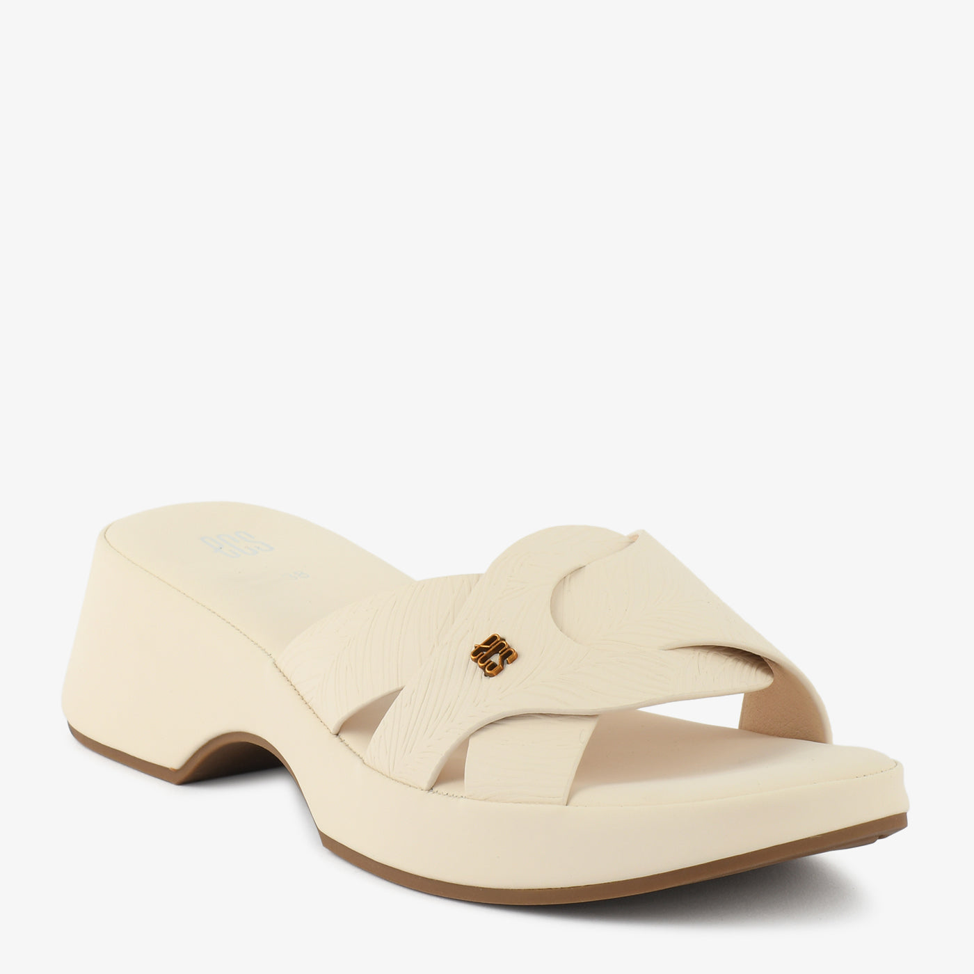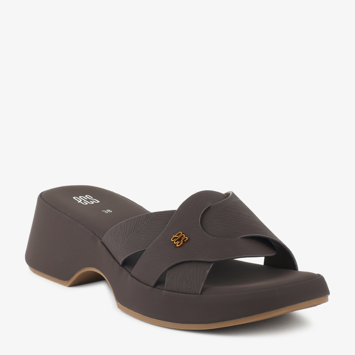 Designed with a modern and structured look, this slipper offers a perfect balance of style and everyday ease. The upper features overlapping cross straps that create a clean and refined design while providing a secure fit. A subtle logo accent adds a minimal decorative touch to the overall appearance. The soft cushioned footbed supports comfortable walking and relaxed wear throughout the day. Built with a wedge-style sole, it provides gentle elevation and stable movement. Ideal for casual outings or daily wear, this slipper combines practical comfort with a neat contemporary style.