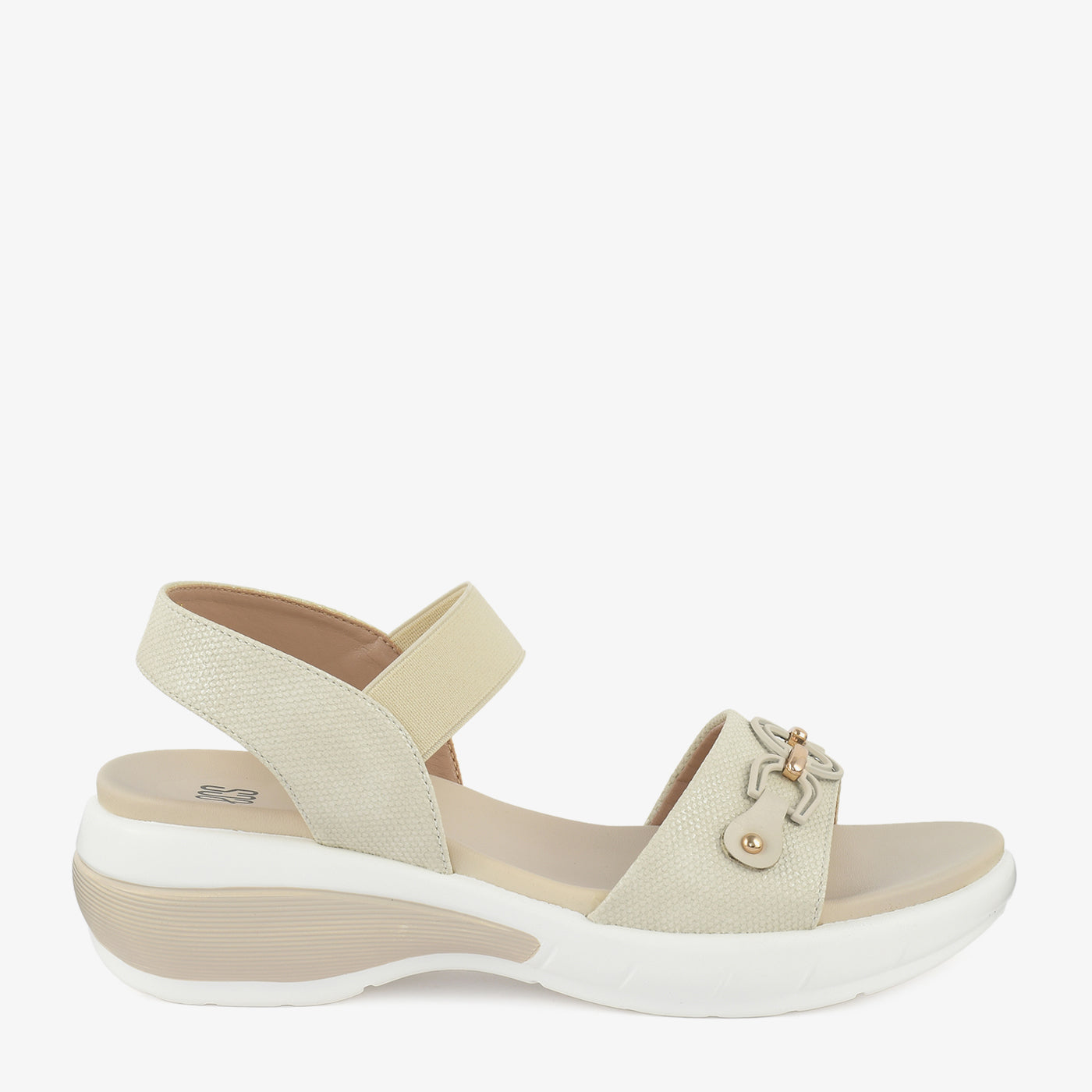Step into graceful style with these T-strap sandals. The central detail is adorned with elegant embellishments, adding a touch of sophistication to your everyday look in Lahore. The comfortable flat or low wedge sole makes them perfect for warm days and casual outings.