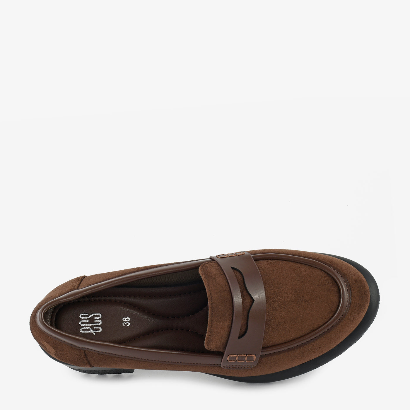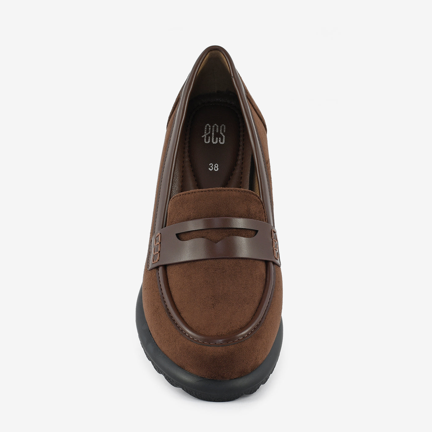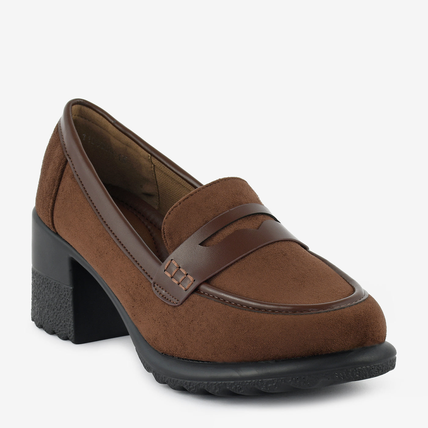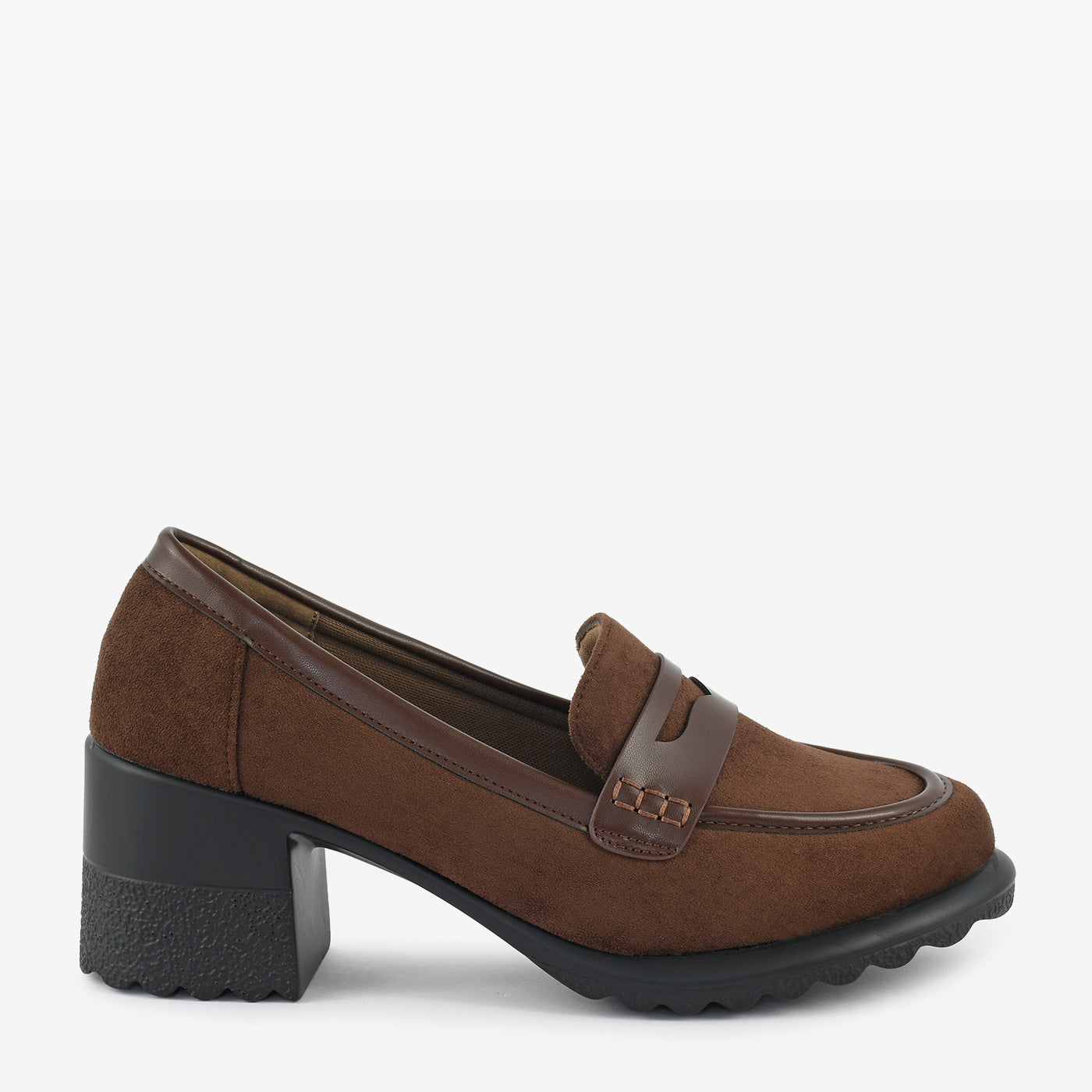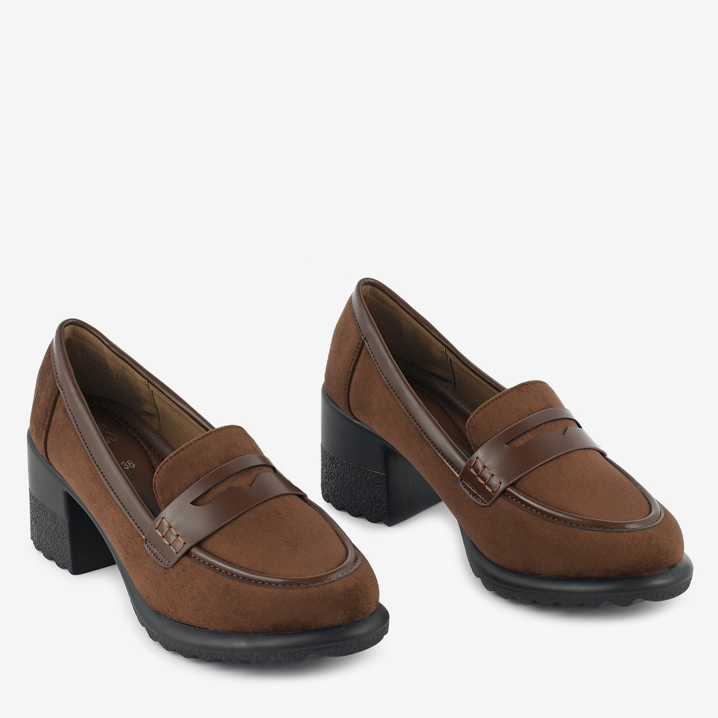 A bold loafer featuring a raised heel and structured design. The mix of materials adds texture, while the block heel ensures stability for extended wear. A refined pick for professional and everyday looks.