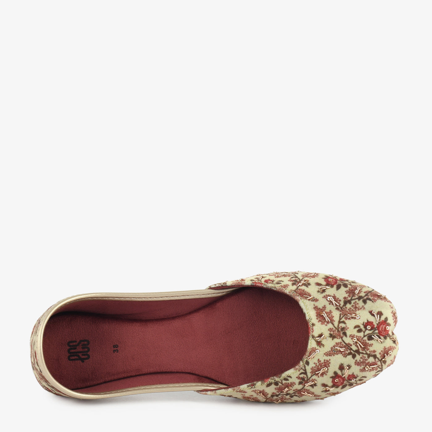 - Design: Slip-on khussa with embroidered pattern and smooth inner lining