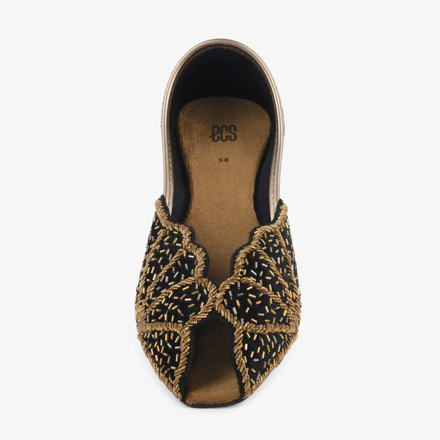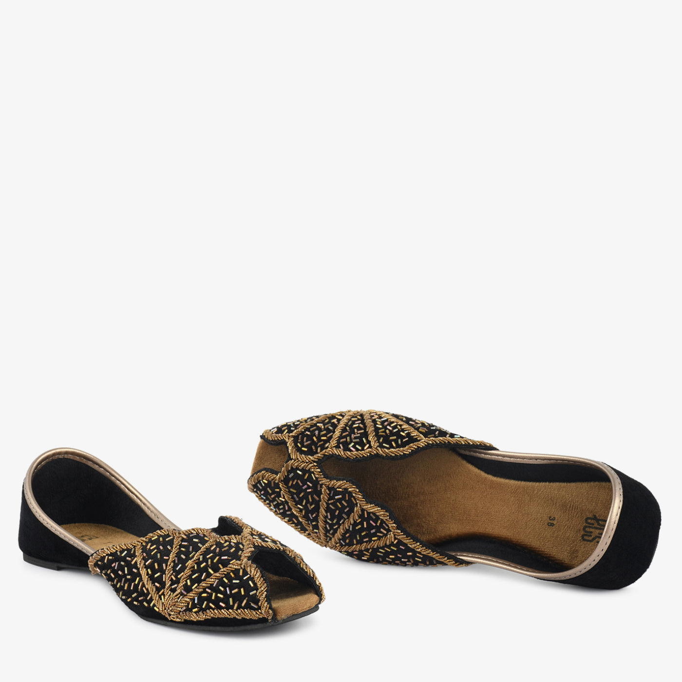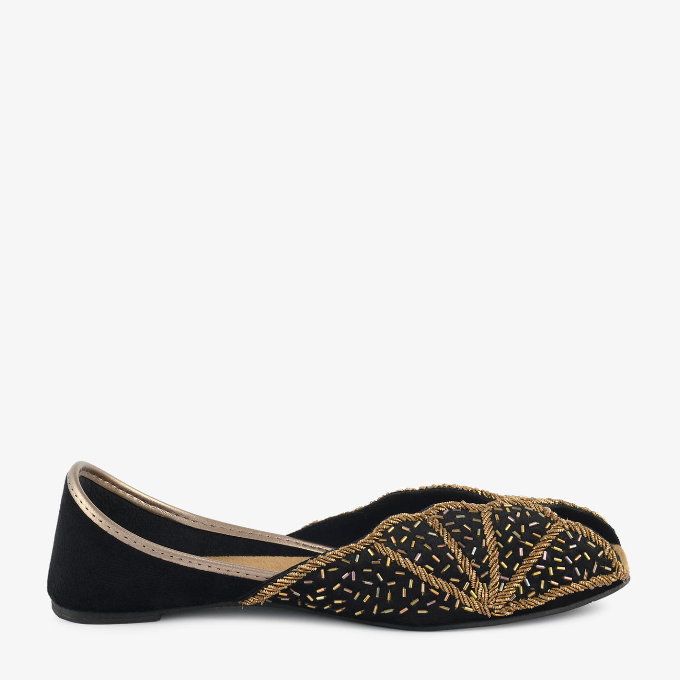 • Design: Embellished khussa with intricate thread and bead detailing