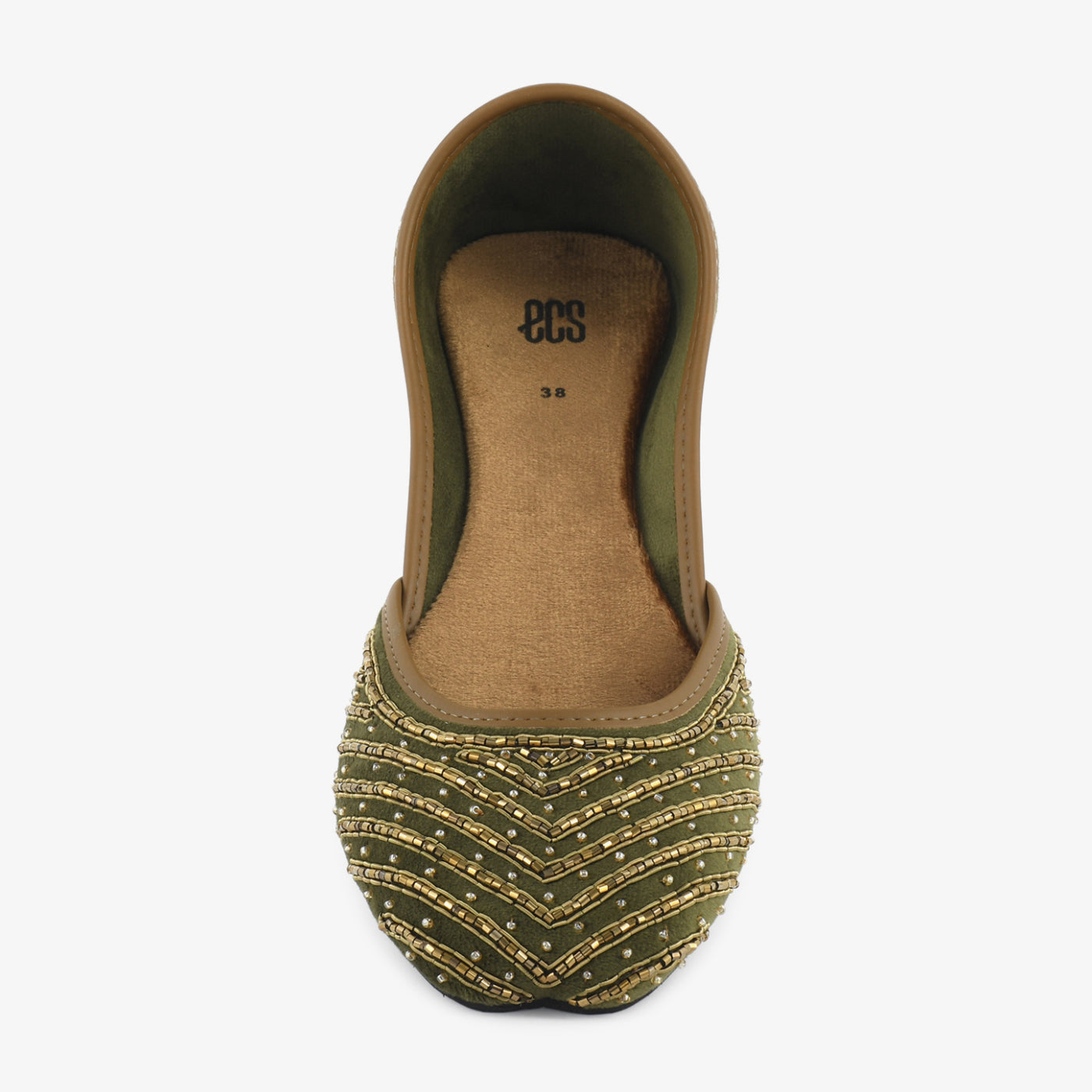 Crafted with refined traditional detailing, this women’s khussa features a beautifully embellished upper with intricate beadwork arranged in elegant flowing patterns. The delicate decorative lines add a graceful and sophisticated touch while keeping the design balanced and modest. Its classic khussa shape offers a comfortable slip-on style that is easy to wear for gatherings, cultural events, or everyday traditional wear. The soft inner lining and cushioned footbed provide lasting comfort, while the lightweight sole supports smooth and steady movement throughout the day. This khussa blends traditional craftsmanship with everyday comfort.