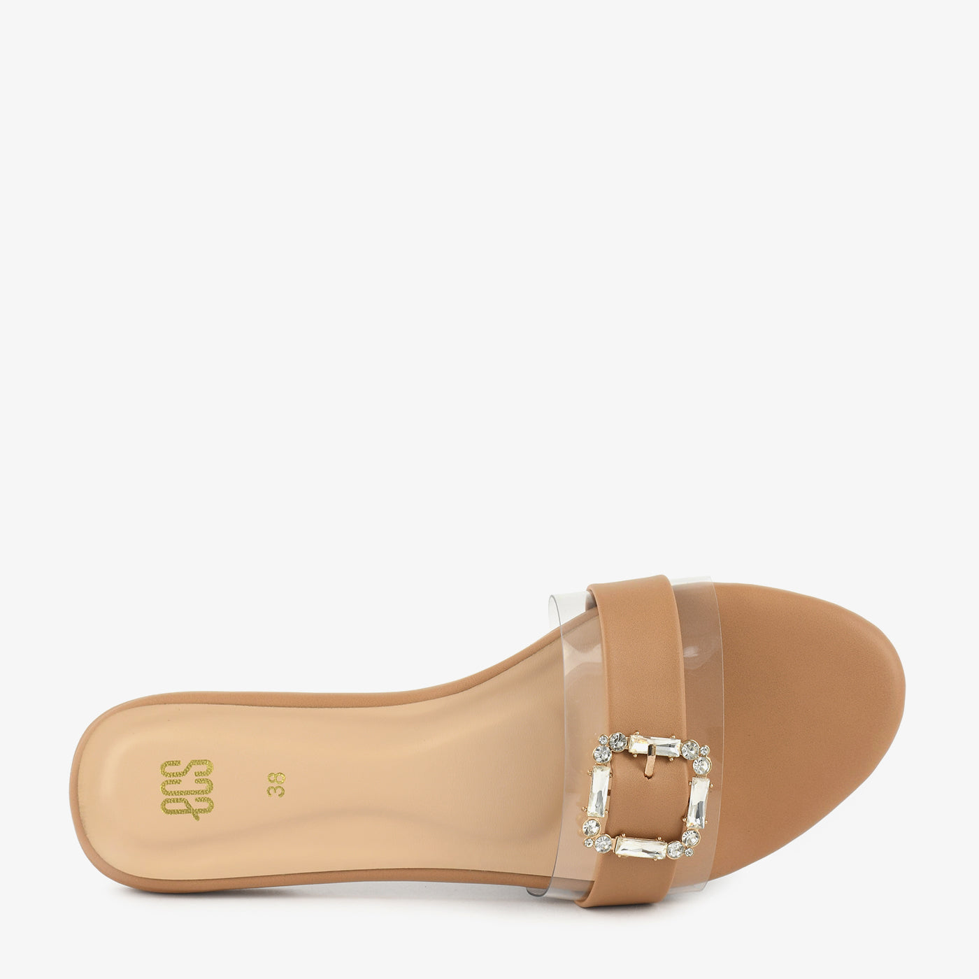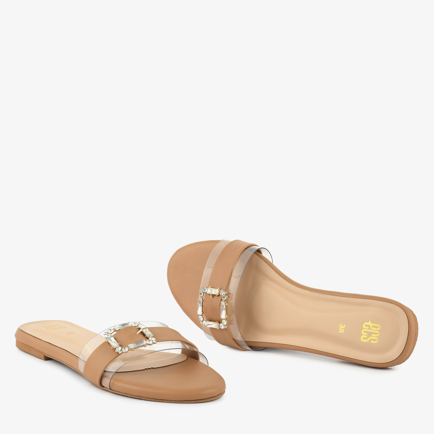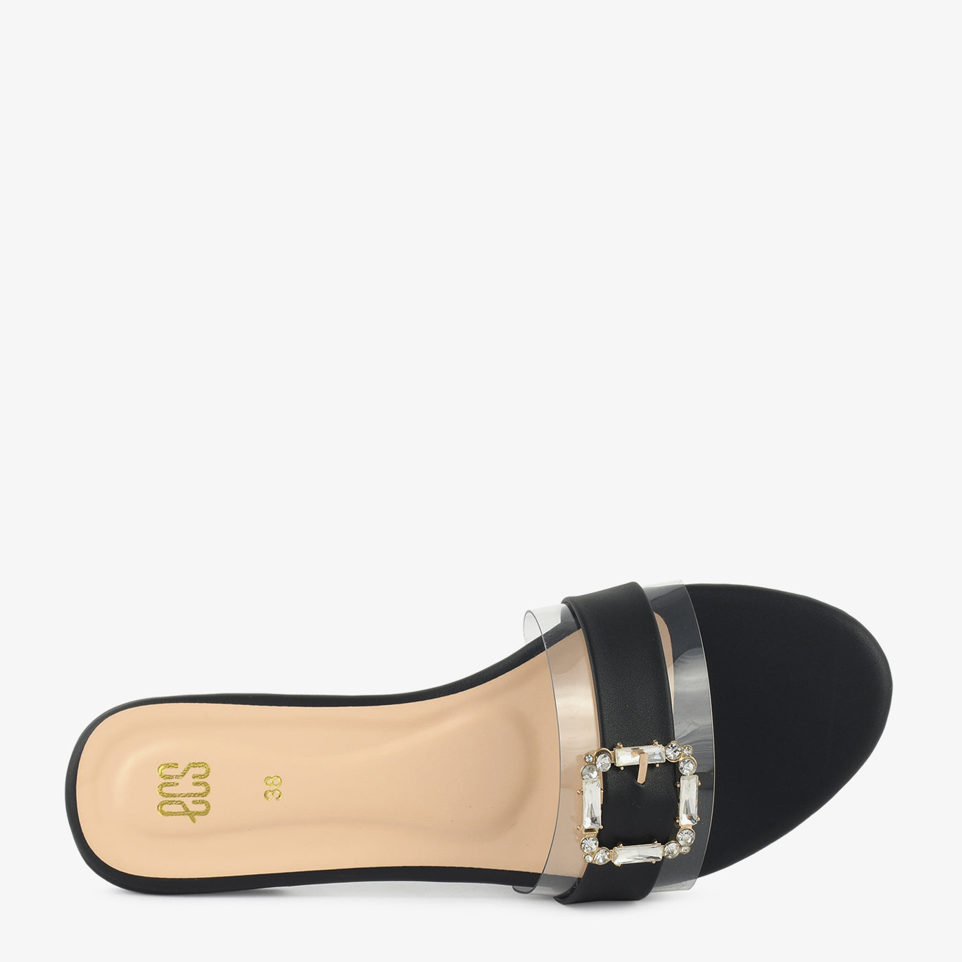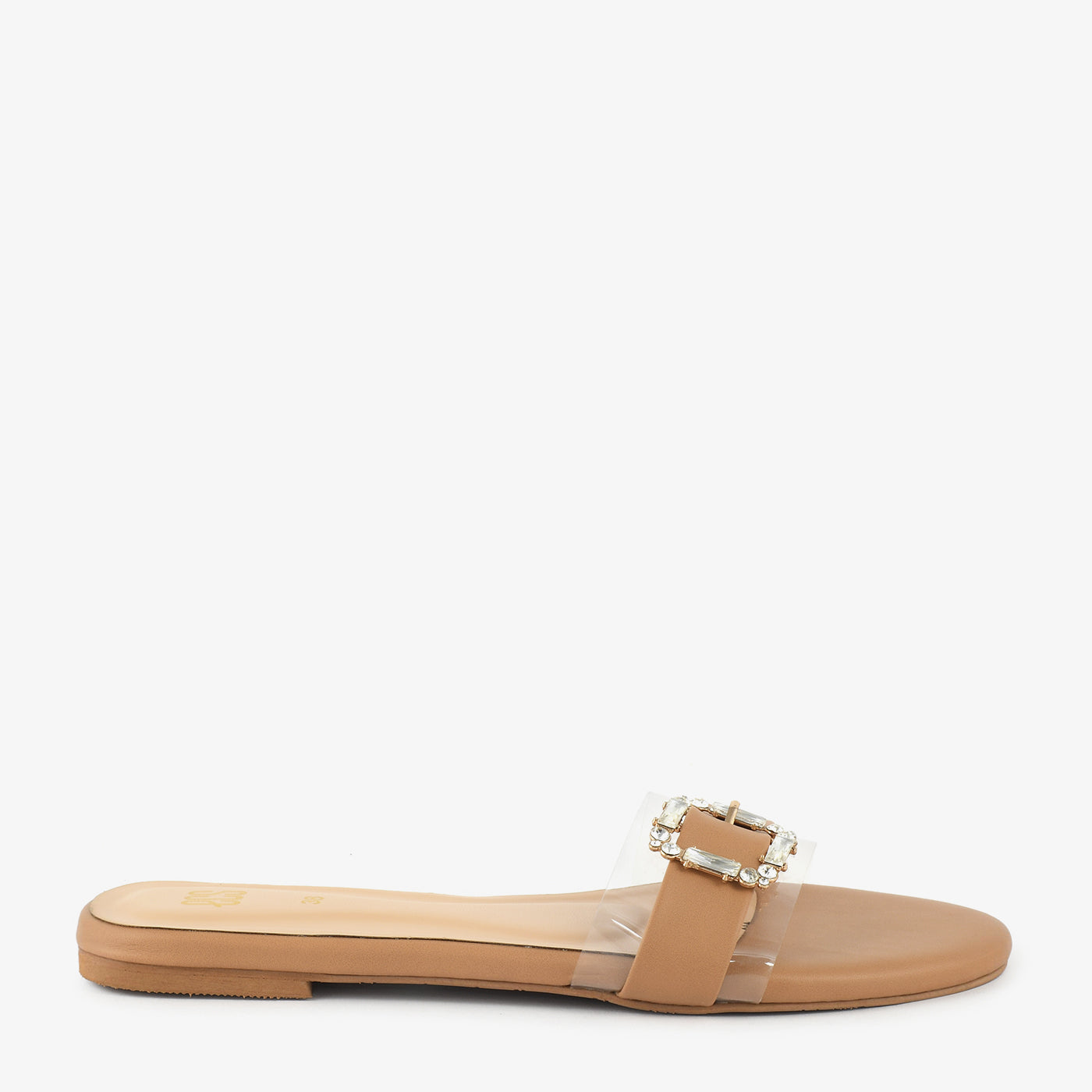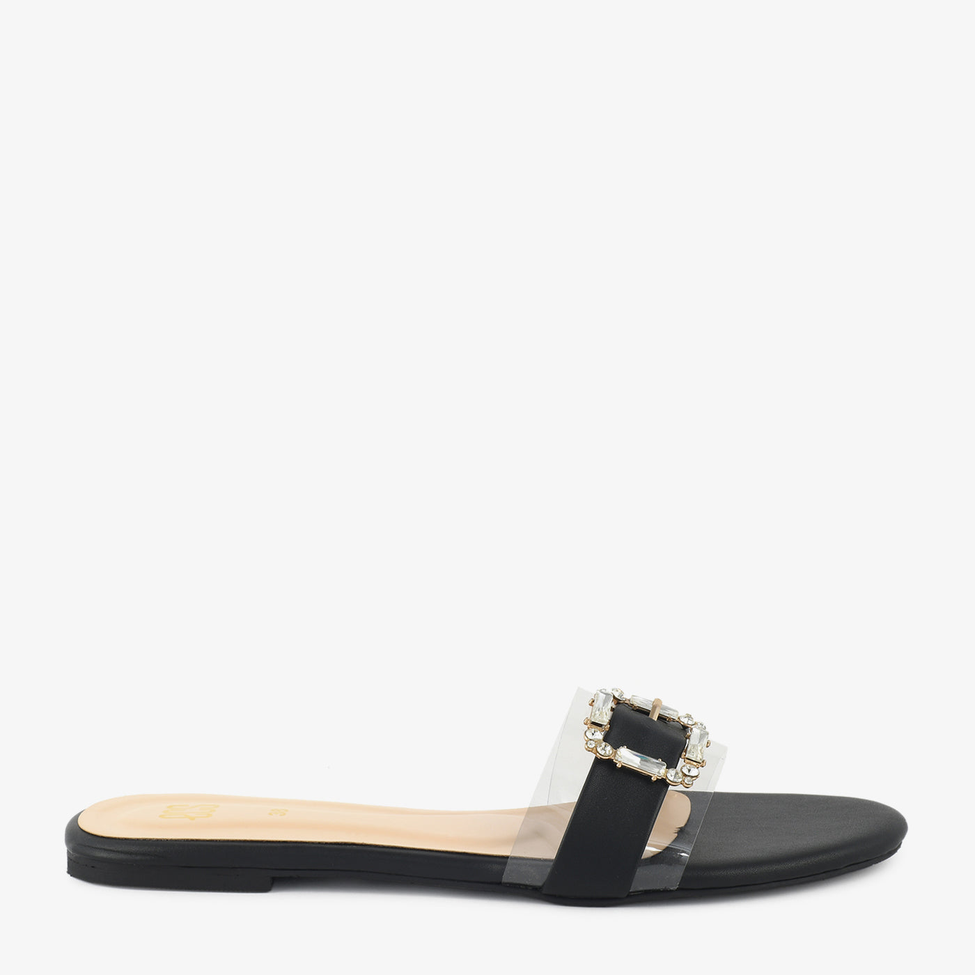 This women’s slipper is designed to bring together everyday comfort and refined detailing. The structured upper features a clear layered strap highlighted with an elegant geometric embellishment, creating a polished...