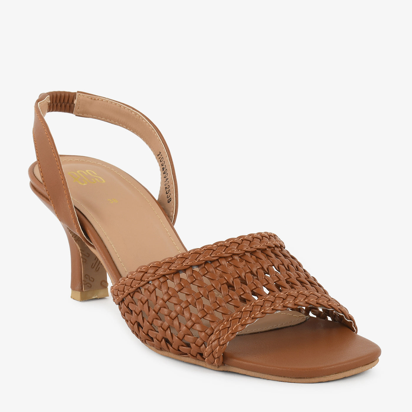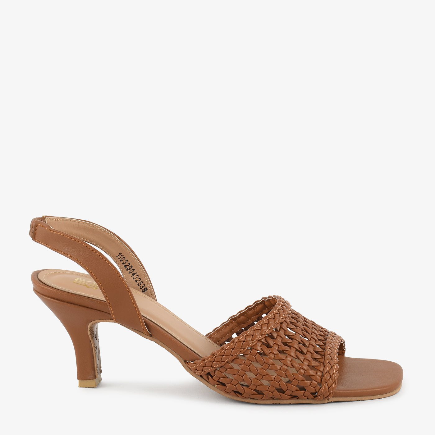 A chic slingback heel featuring beautifully woven straps and supportive back band. Lightweight and comfortable with a graceful heel height, ideal for day-to-night styling. Blending earthy texture and modern finesse, this pair fits perfectly with elegant modest looks. A timeless neutral for classy outings.
