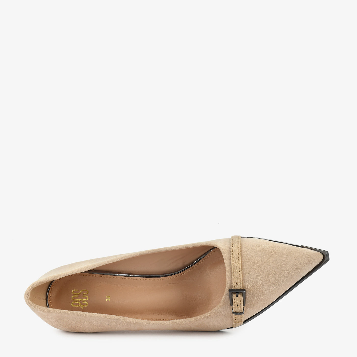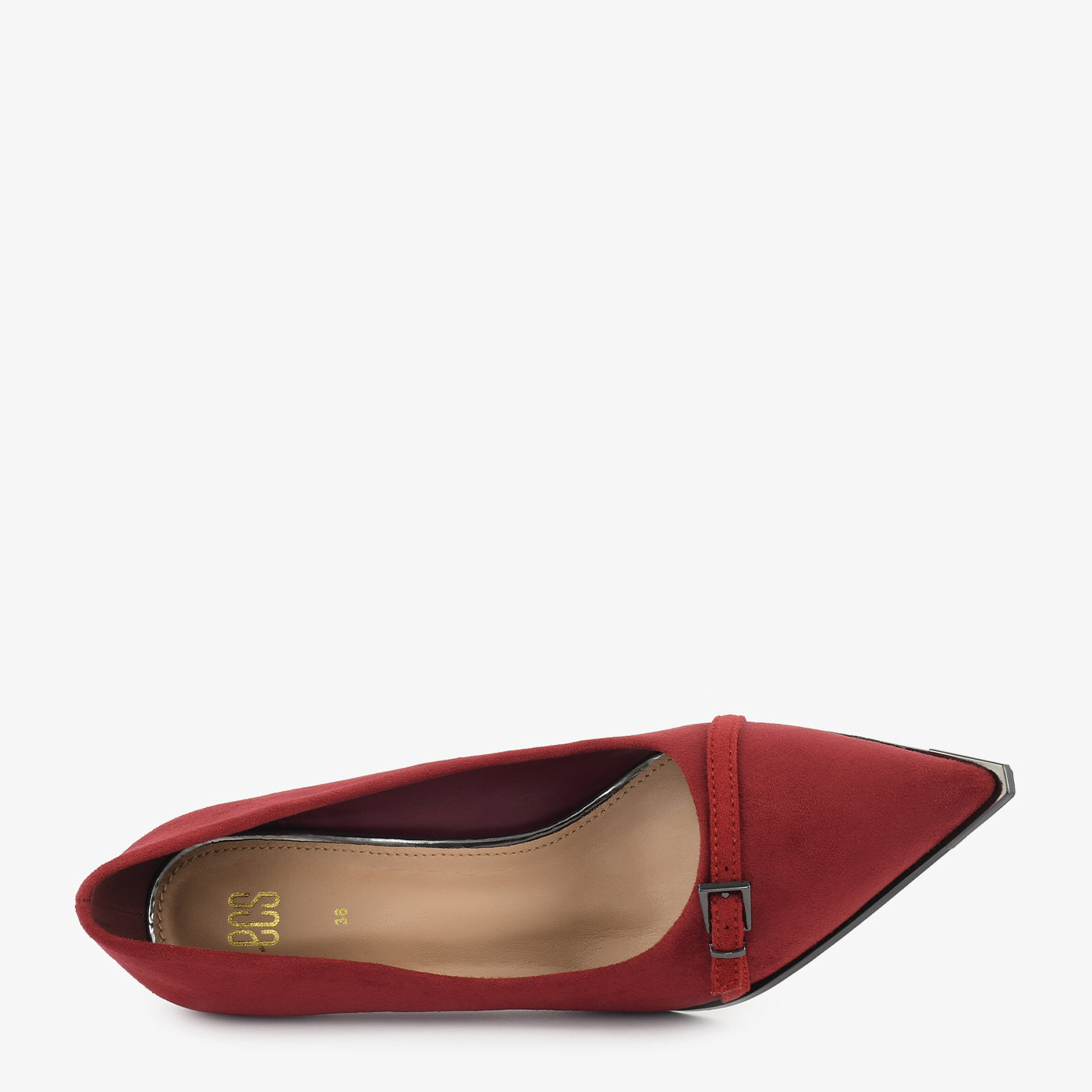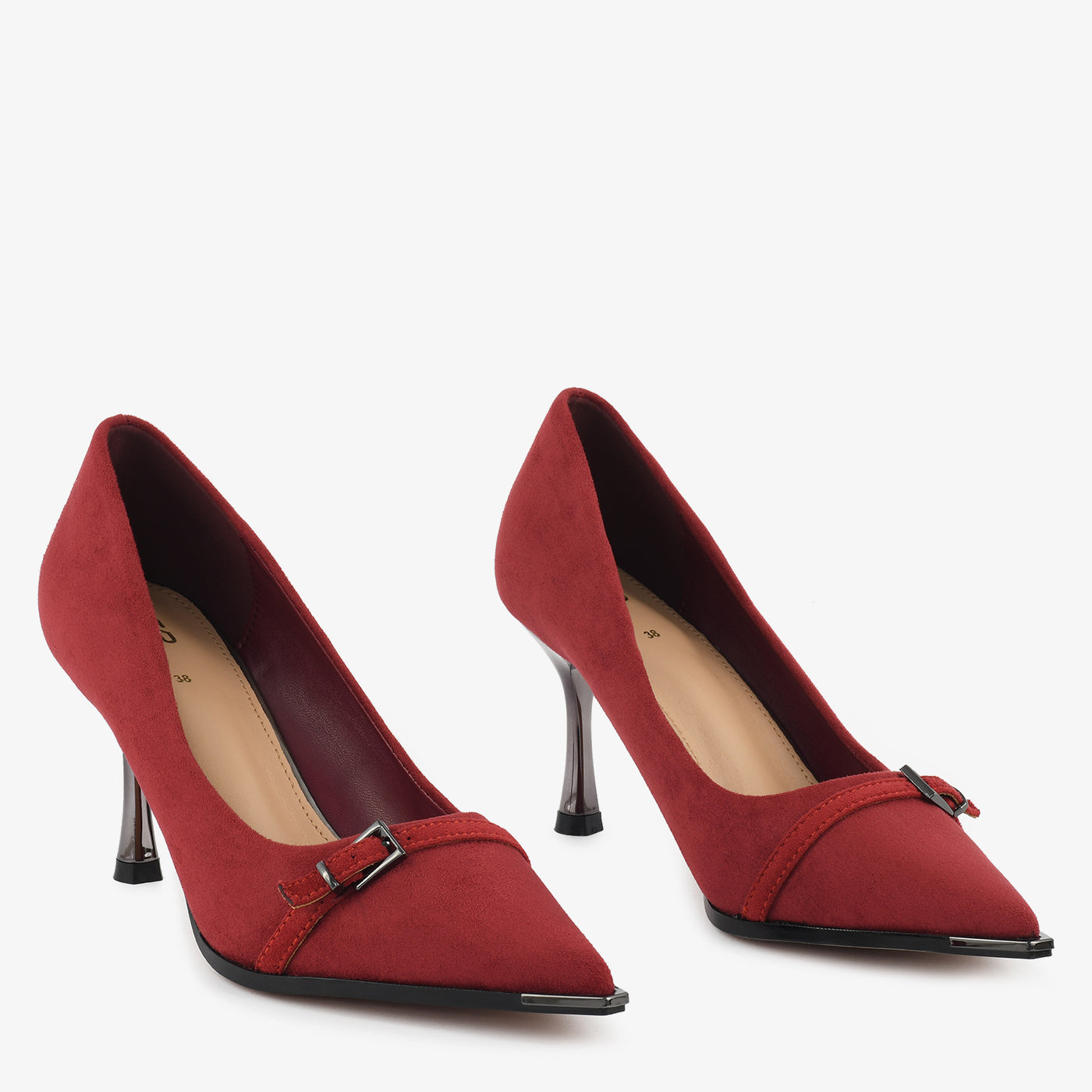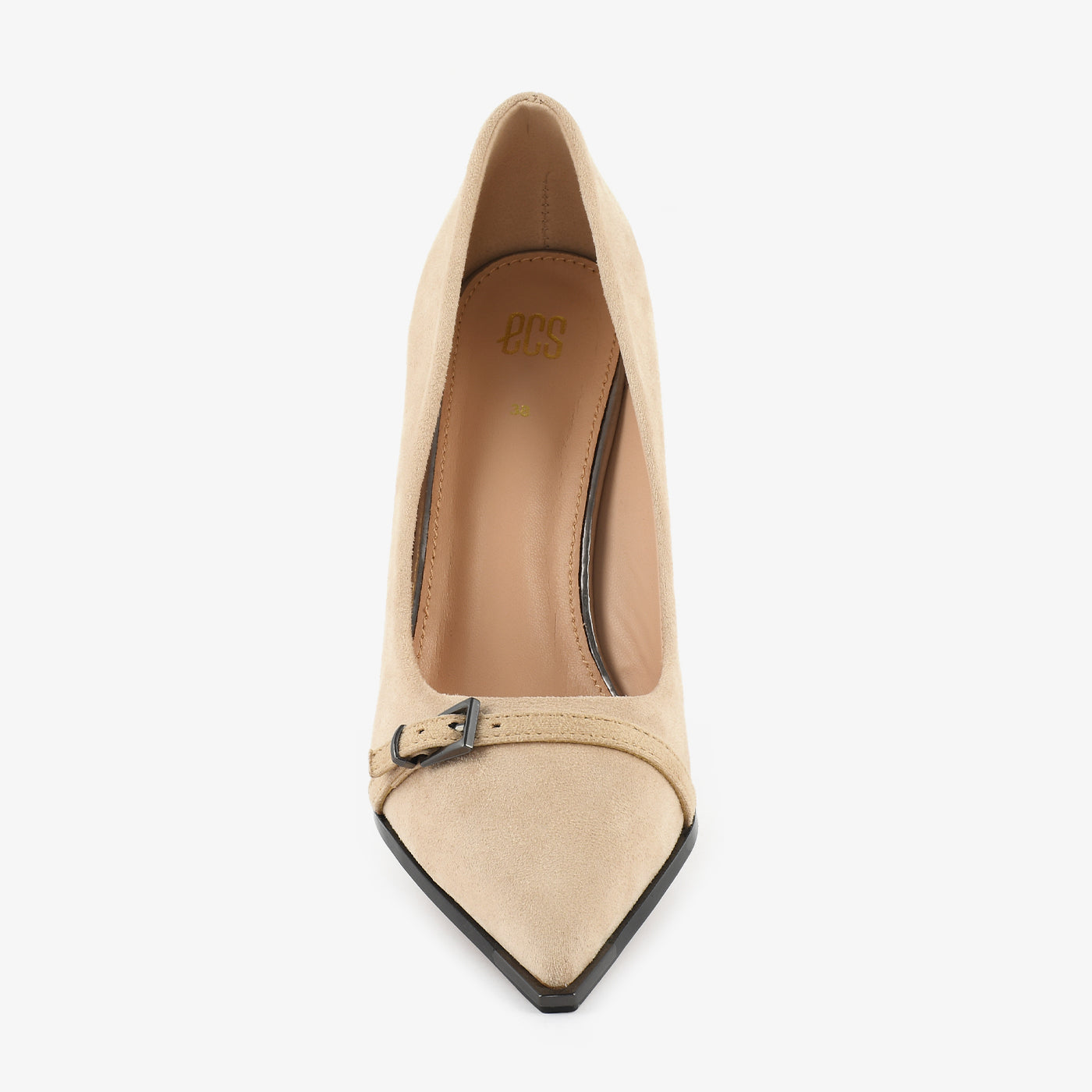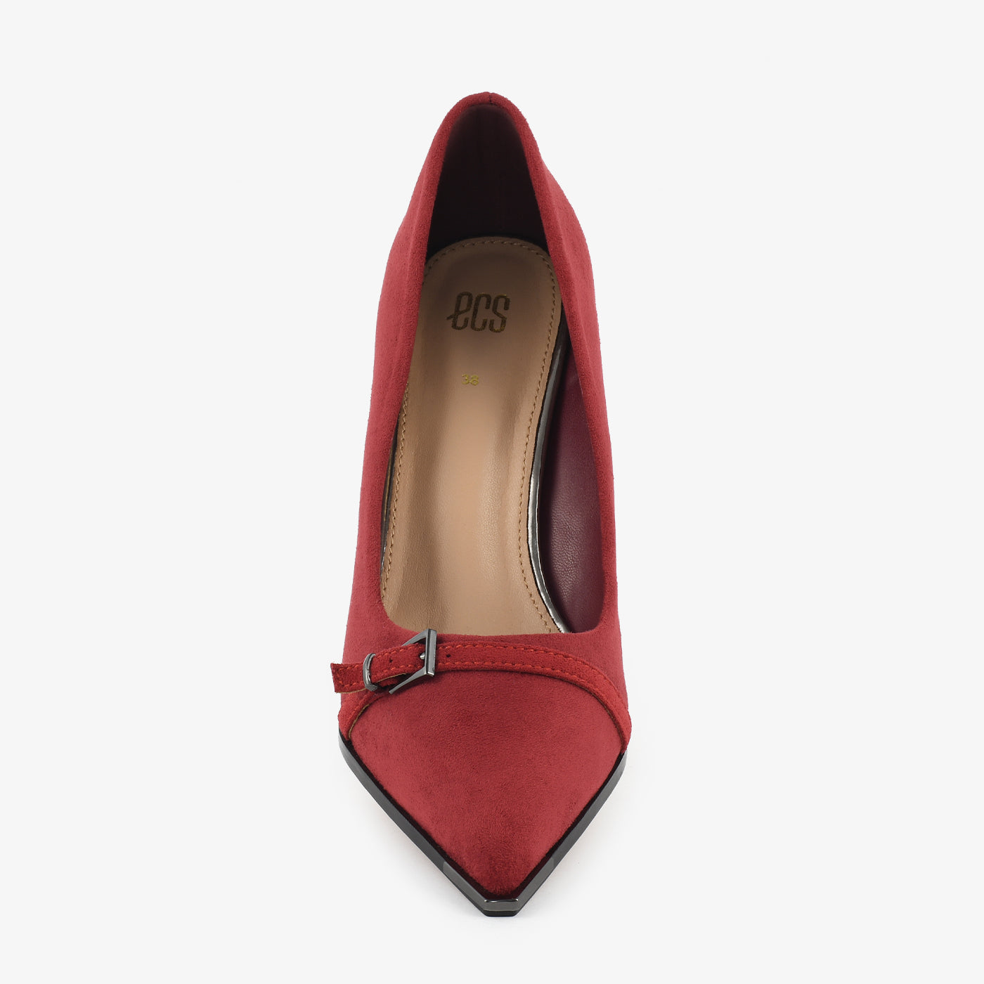 A modern coat shoe designed with a pointed toe and sleek buckle strap for a refined appearance. Its narrow heel and smooth texture make it ideal for formal and professional settings.