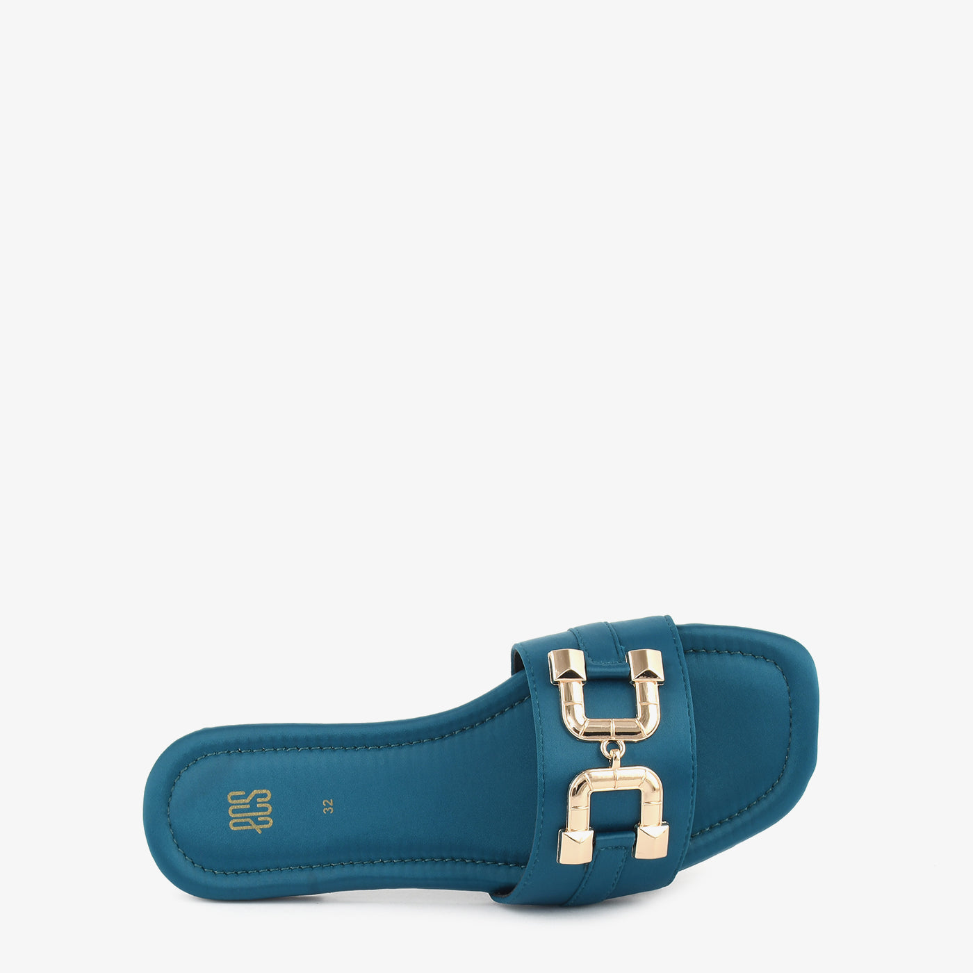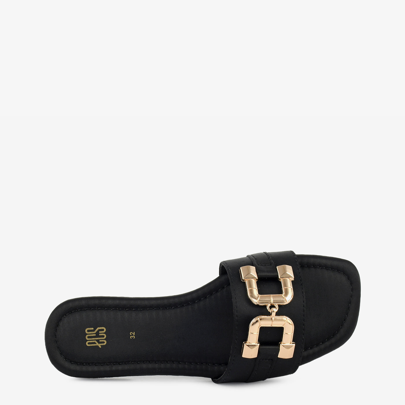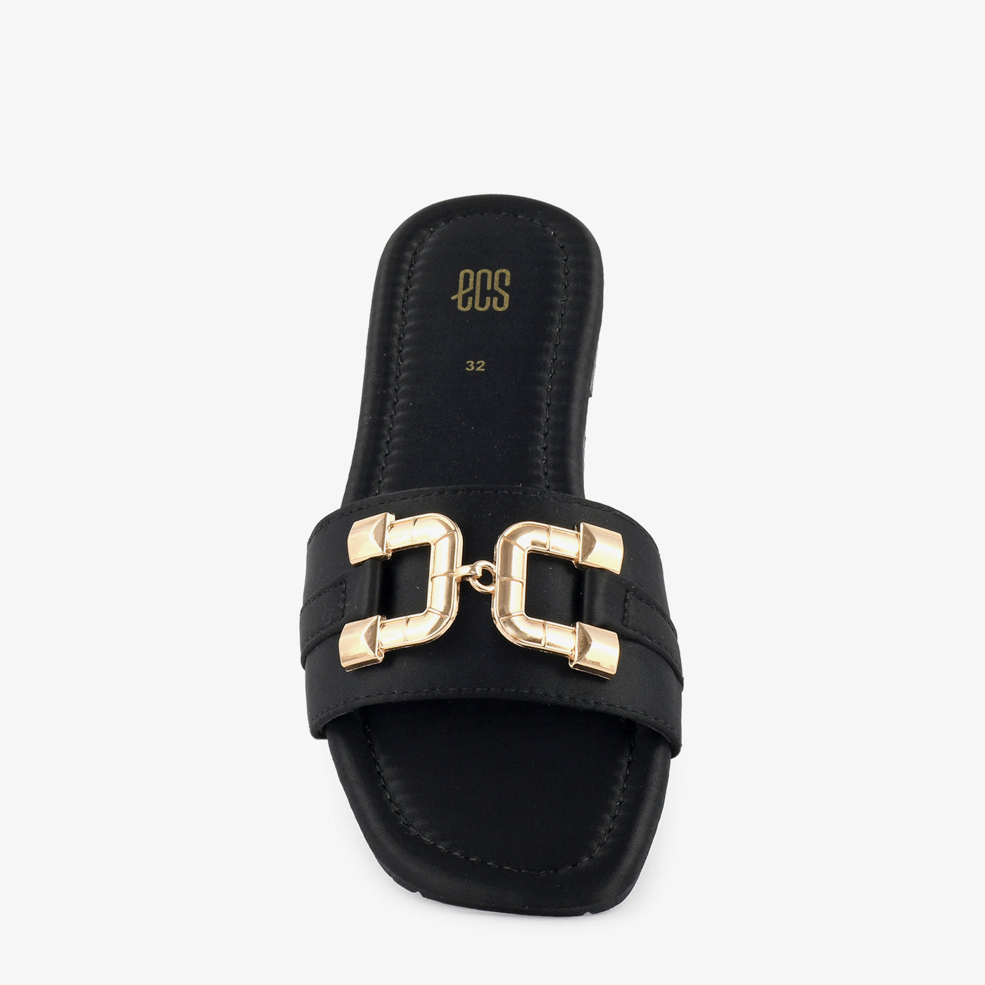 This stylish slipper features a clean and modern design with a sleek upper enhanced by bold metallic accents for a standout look. The wide strap offers a secure and comfortable fit, while the cushioned footbed ensures ease throughout the day. Its lightweight sole allows smooth movement, making it perfect for daily wear. The minimal yet striking design adds a contemporary touch to your casual wardrobe. Ideal for quick outings, travel, or relaxed days, it combines comfort with effortless style. A versatile choice that blends simplicity with a fashionable edge.