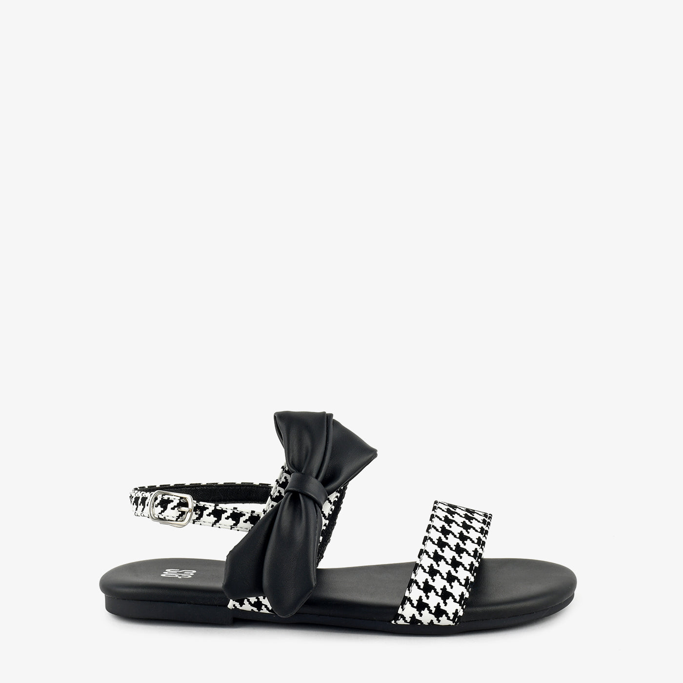 • Design: Flat sandal with bow detailing and adjustable back strap