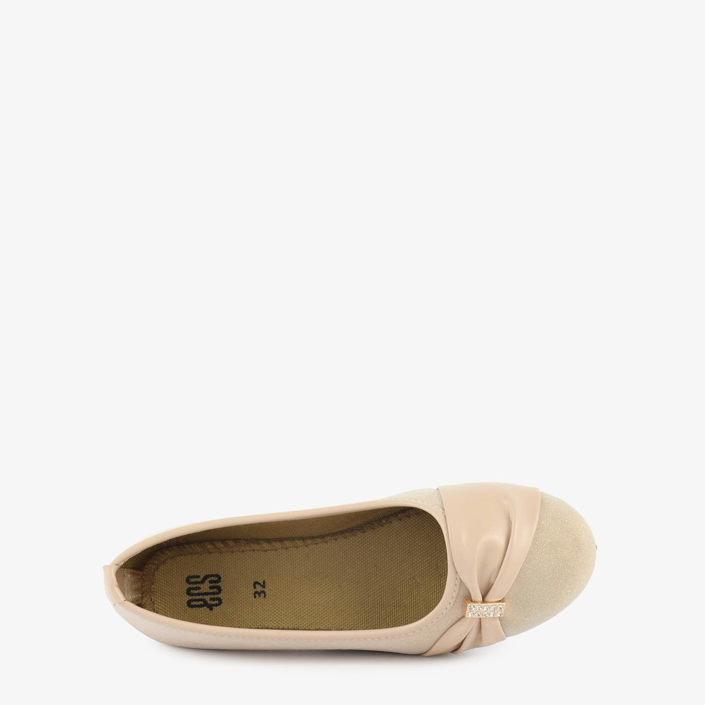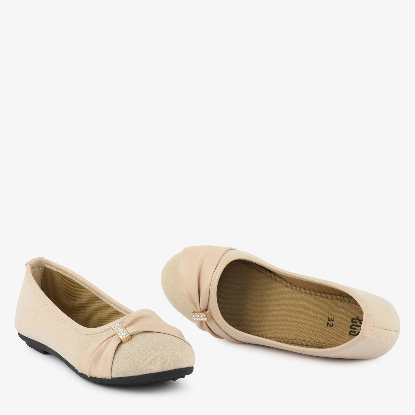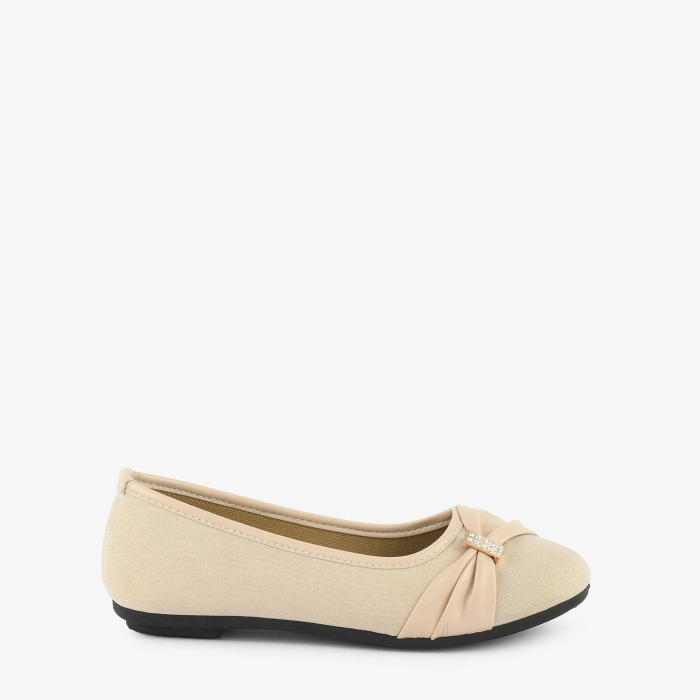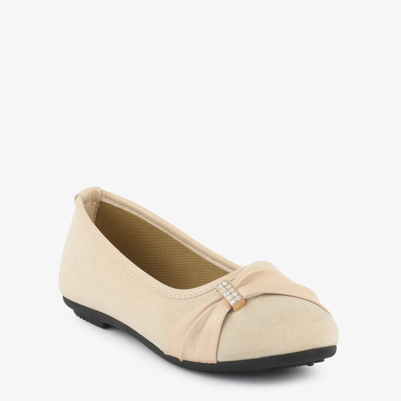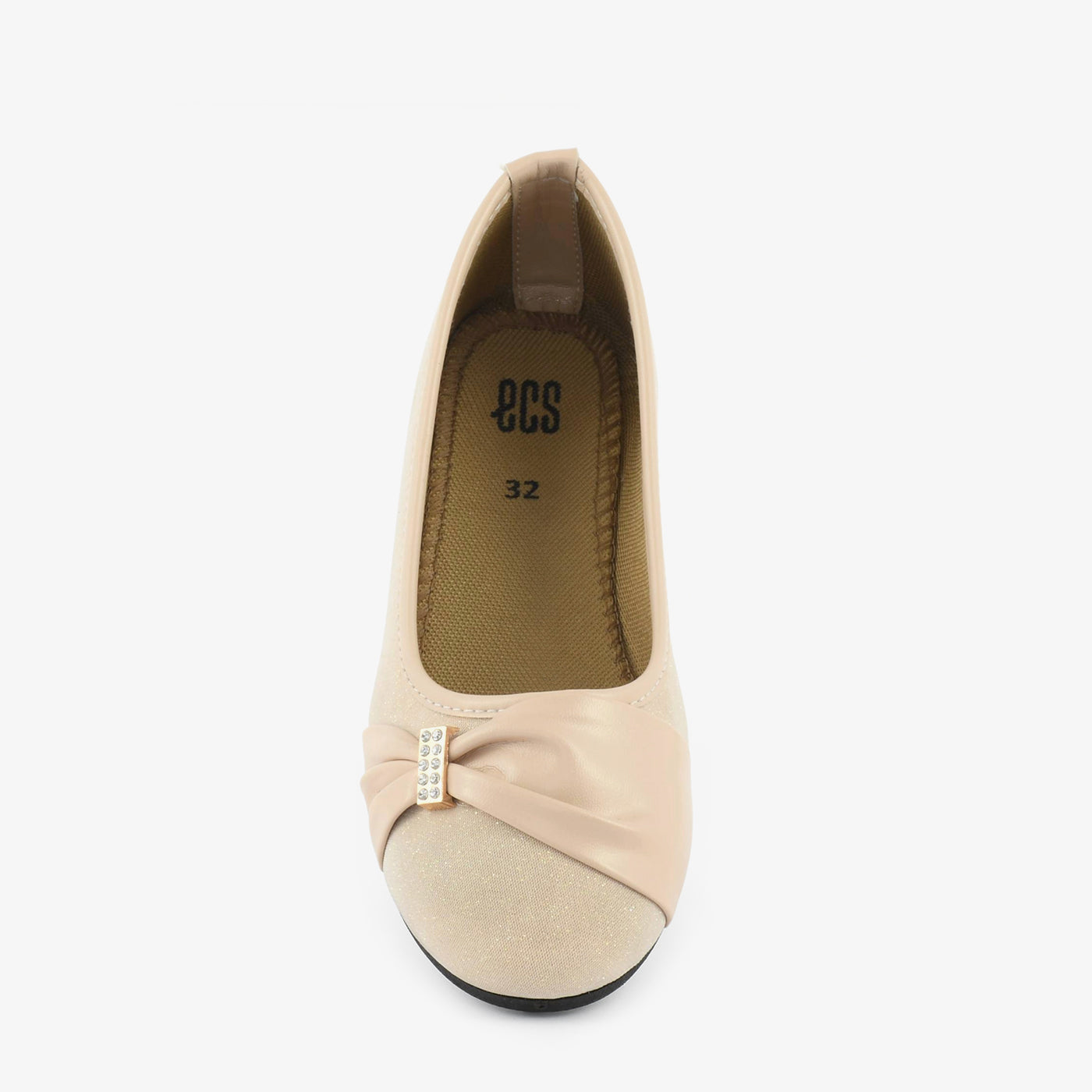 A comfortable and lightweight kids’ pump featuring a subtly textured upper that adds a graceful shimmer to its simple silhouette. The front twist detail with tiny embellishments makes it charming without compromising on comfort. Ideal for school events, casual gatherings, or festive wear.
