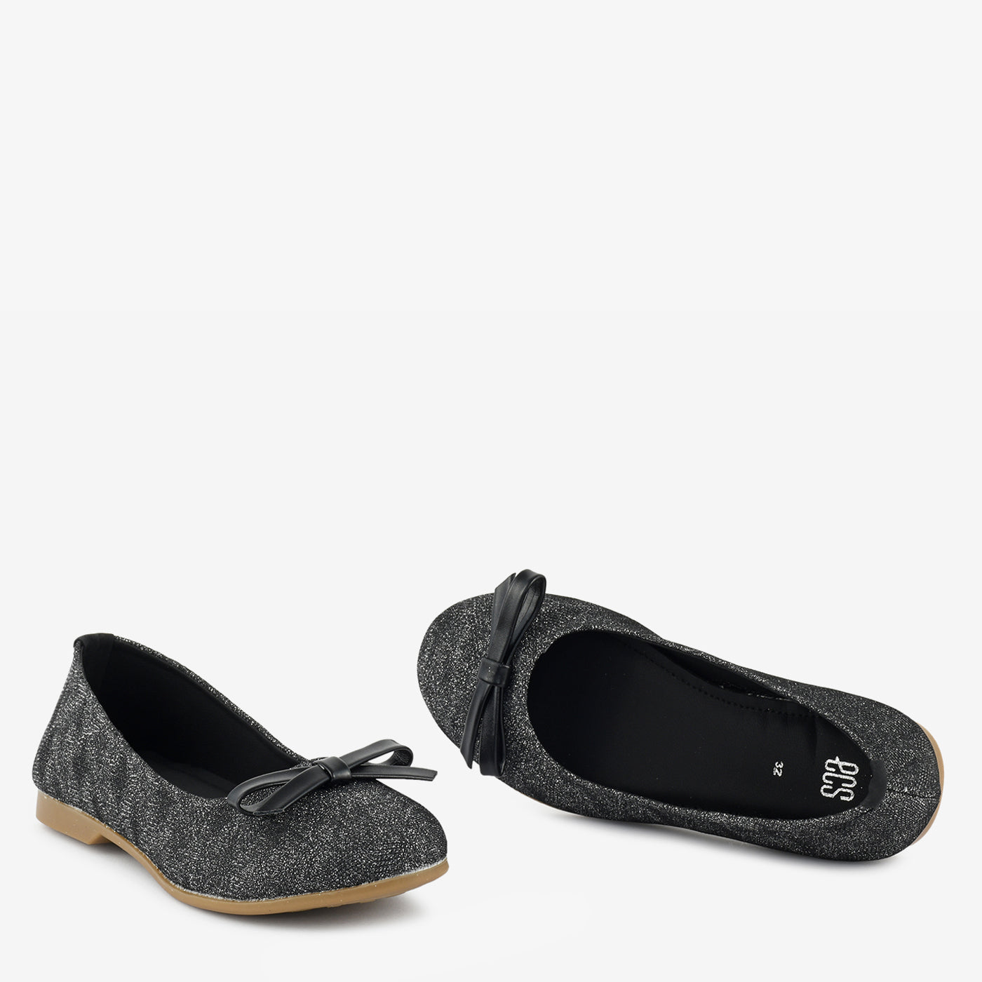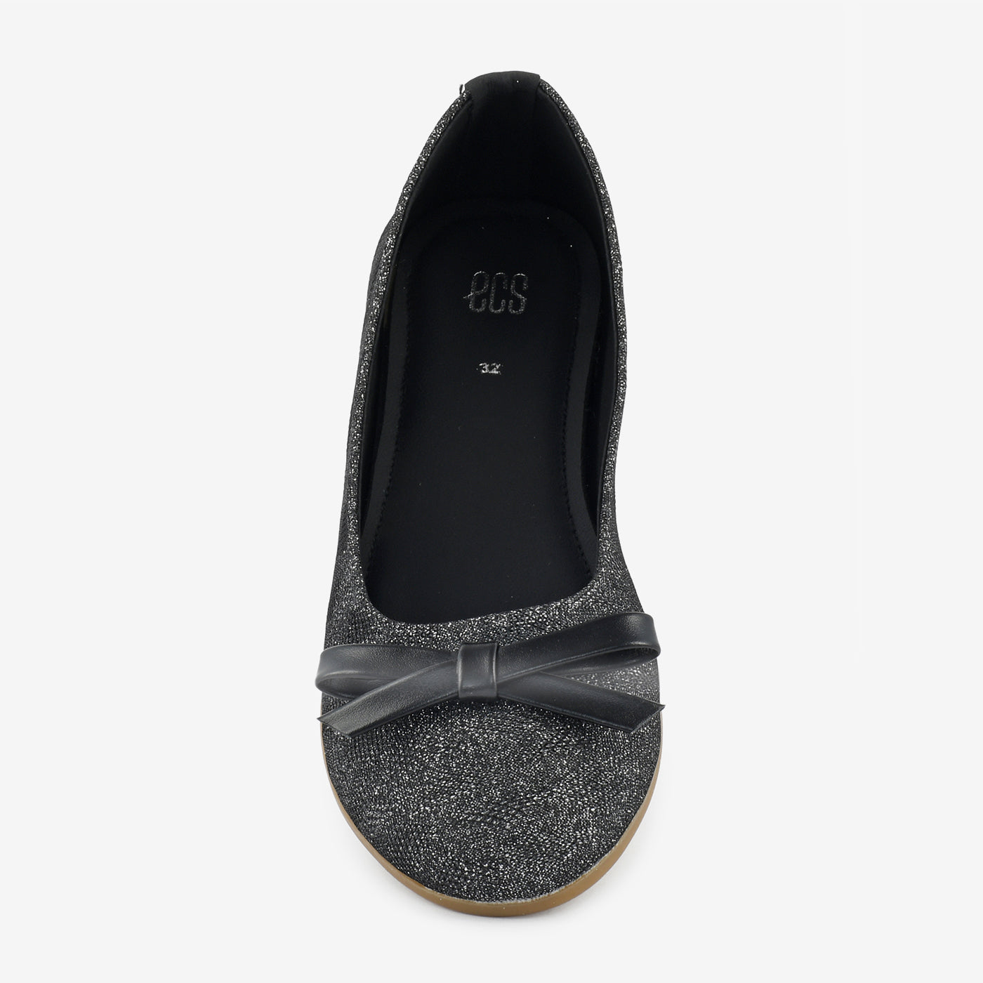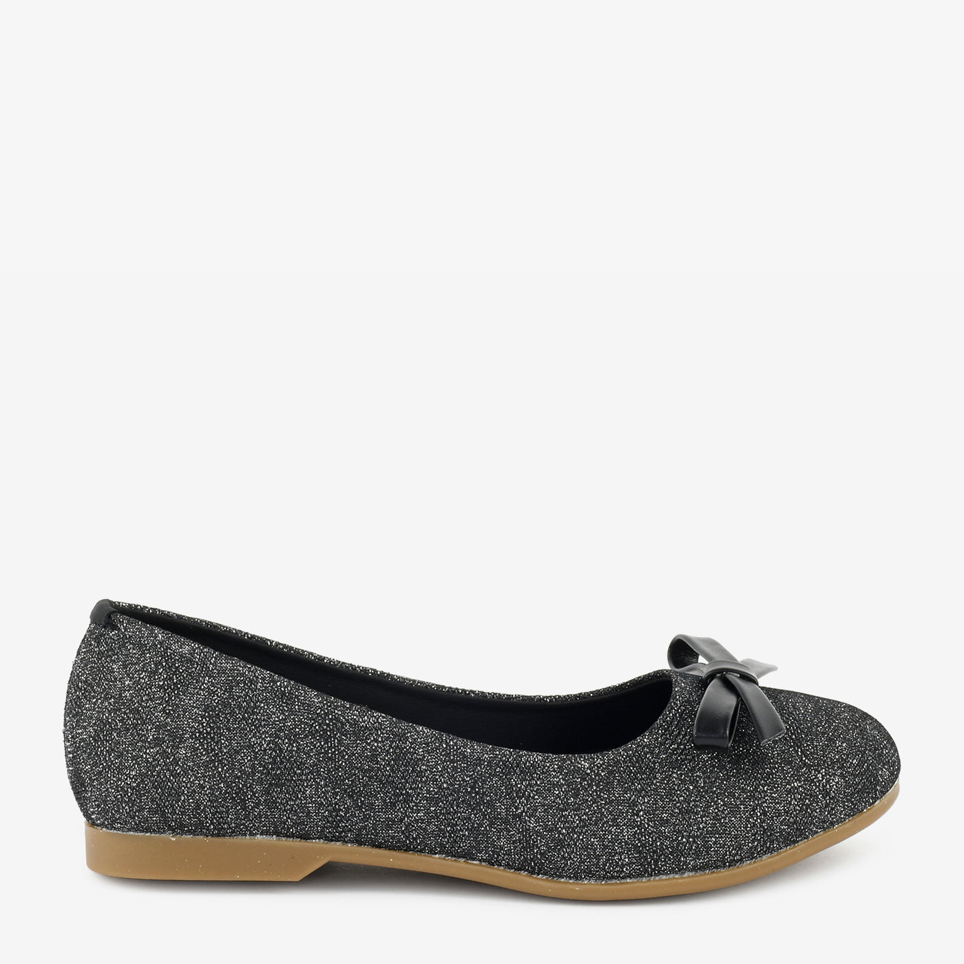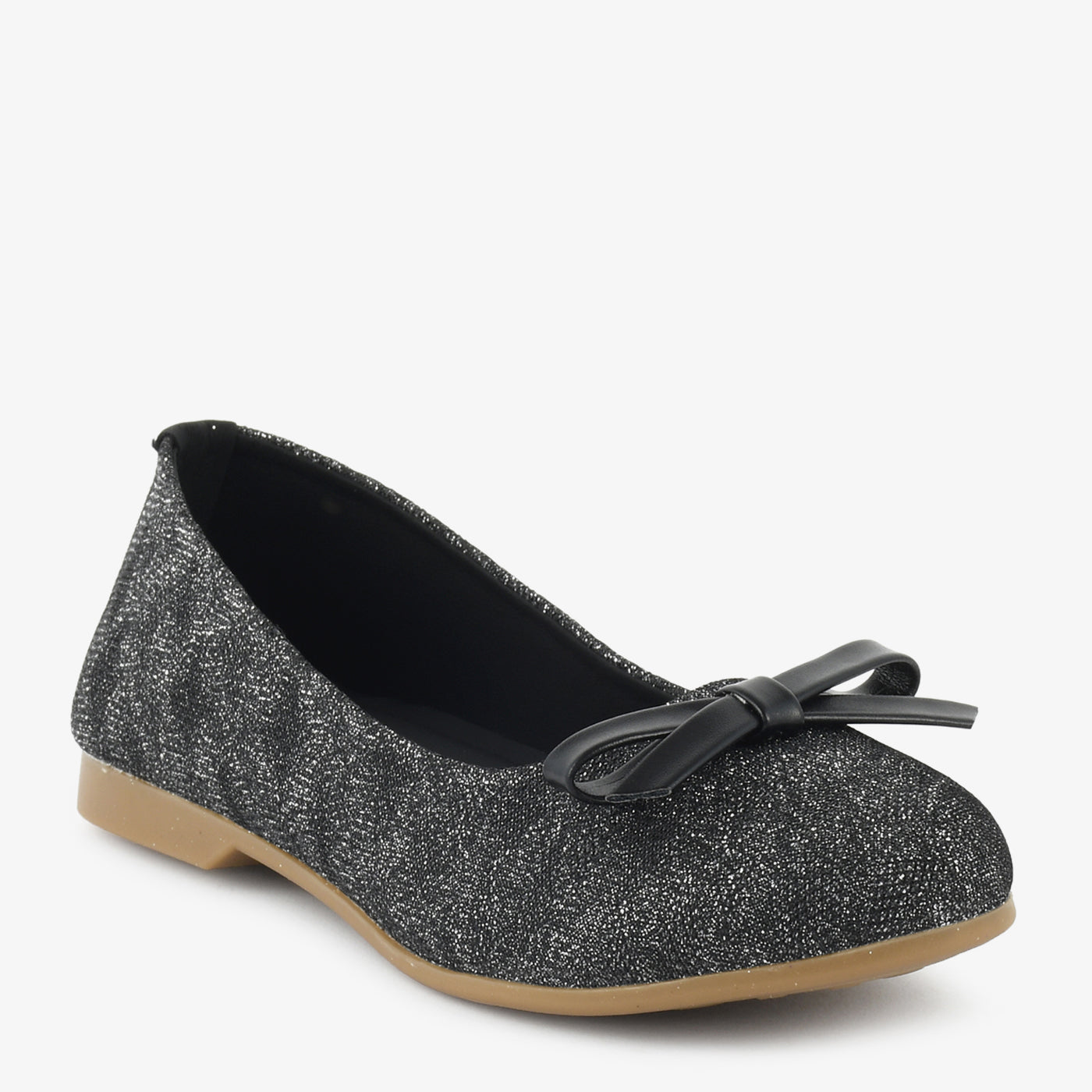 A round-toe pumpwith a glitter finish and a dainty bow detail for subtle charm. Flexible sole makes it a go-to for daily wear with a hint of shine.