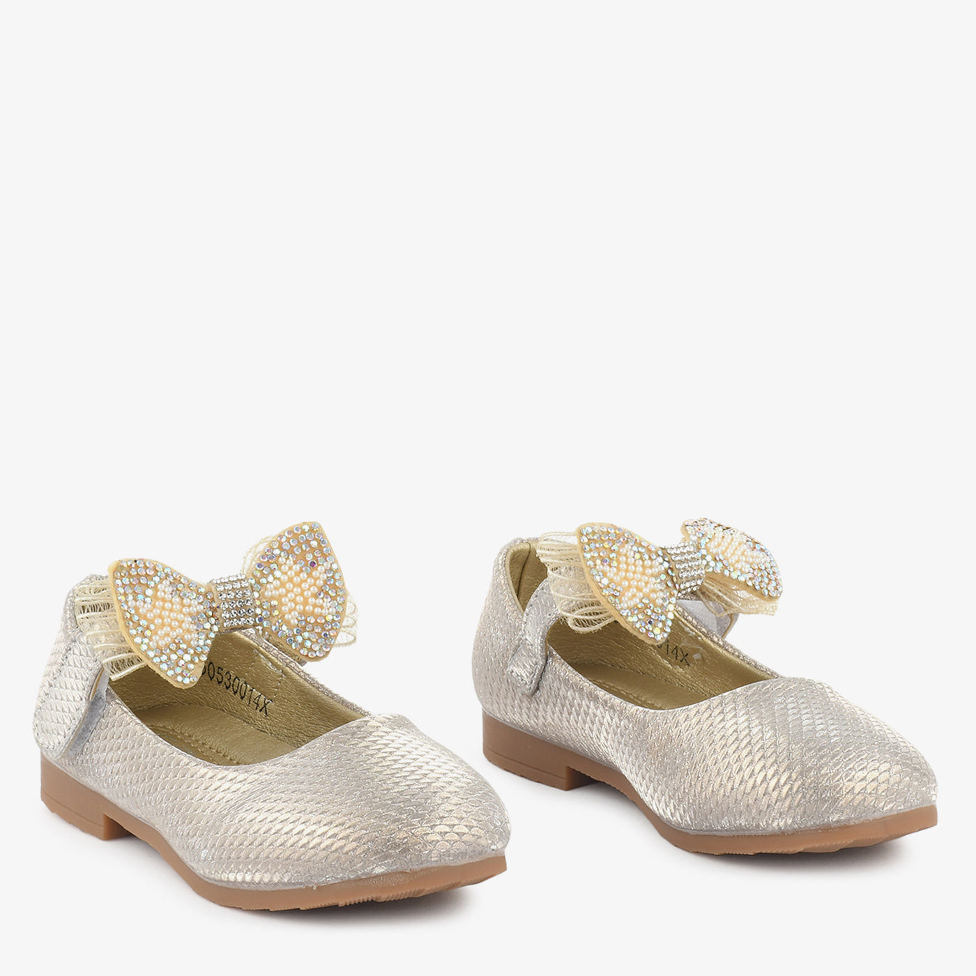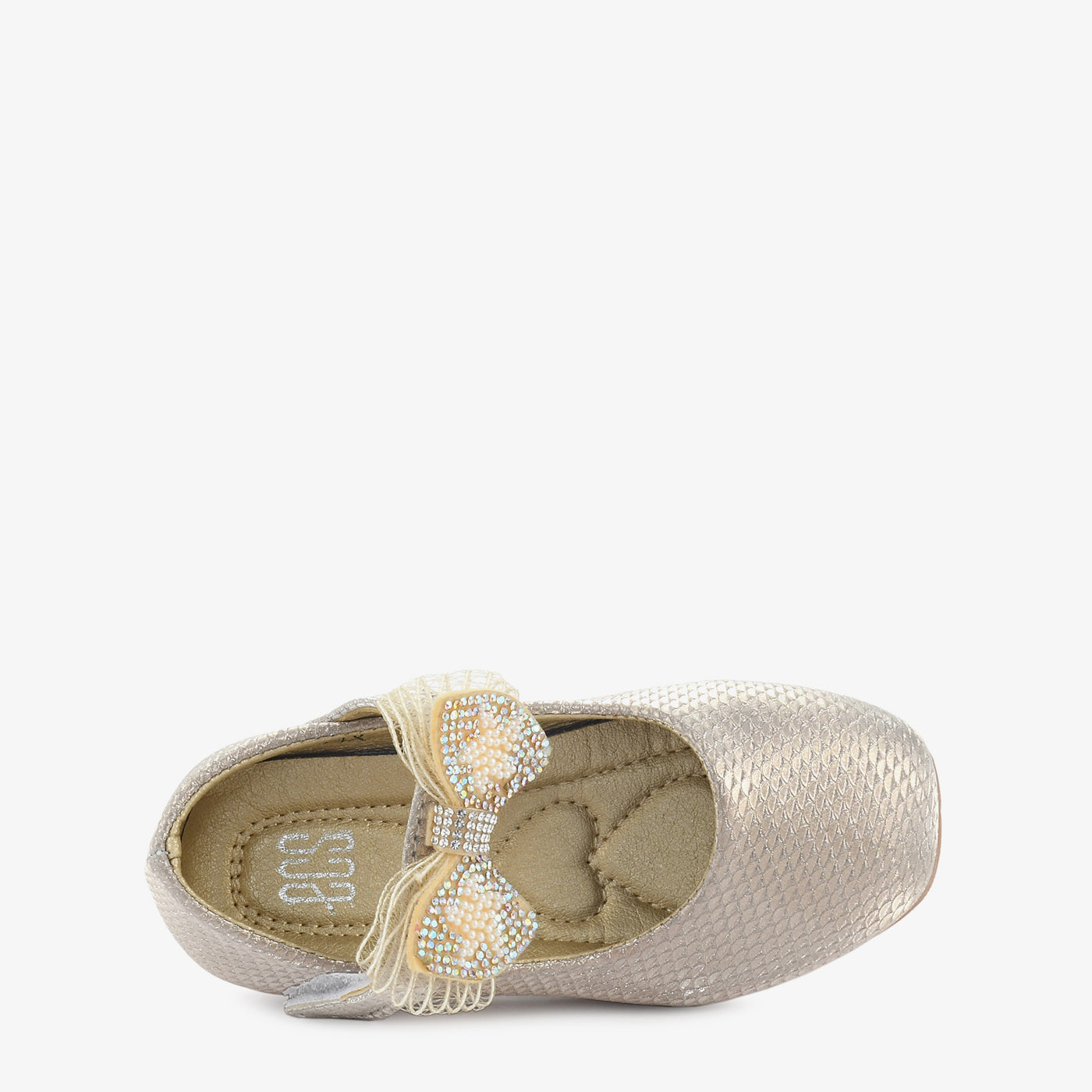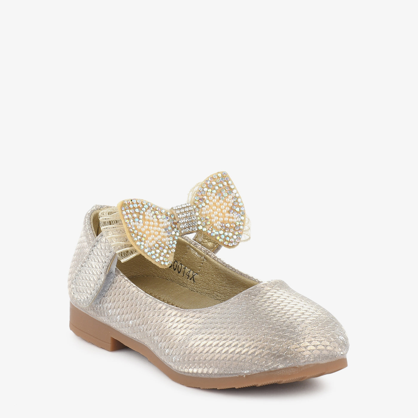 Fun and sparkly, featuring an oversized embellished bow with a glittery touch. The flat sole ensures comfort while maintaining festive flair.