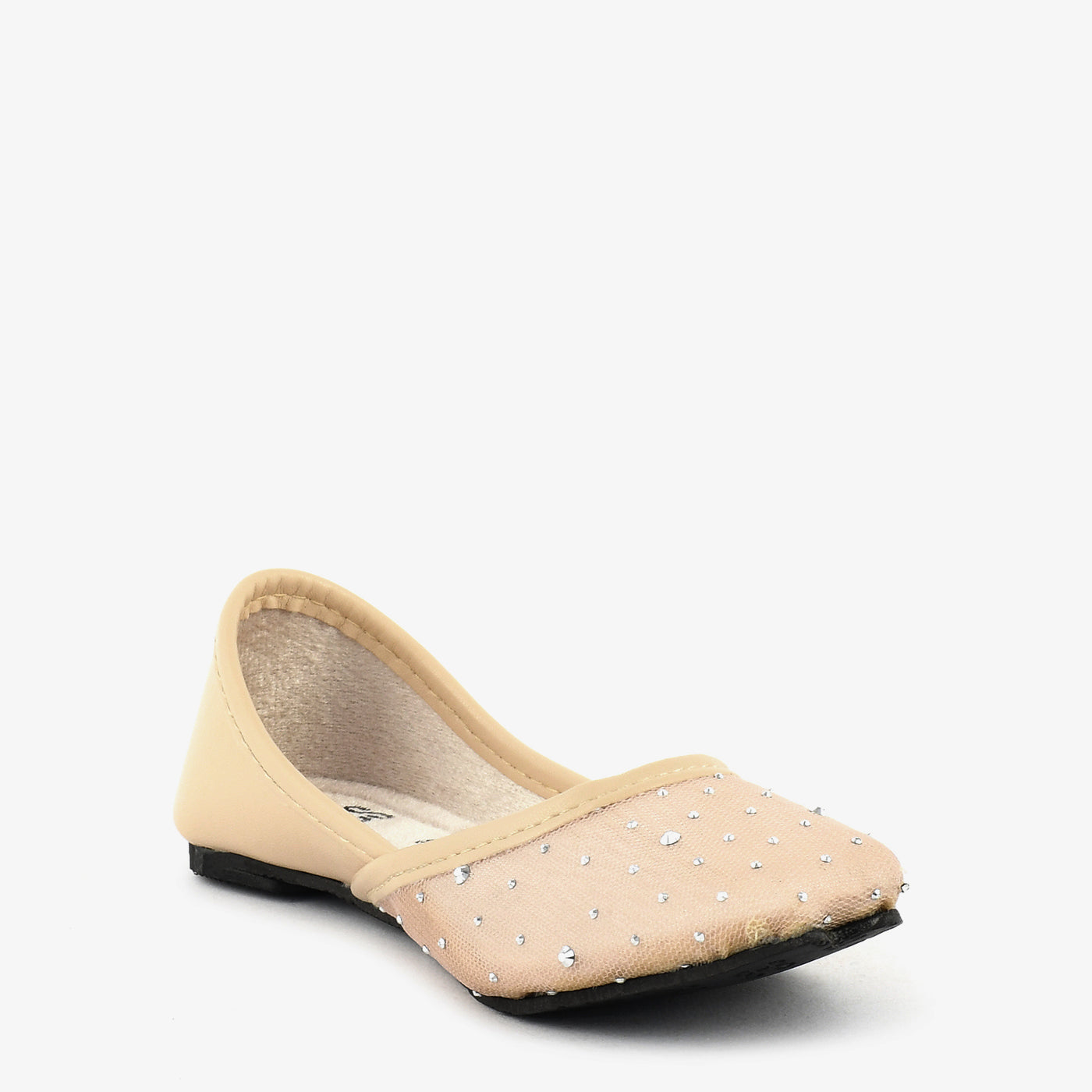 • Design: Flat pointed-toe kids khussa with full toe box micro rhinestone stud scatter on a slip-on construction
