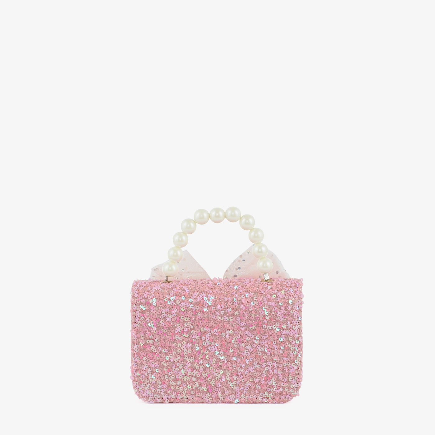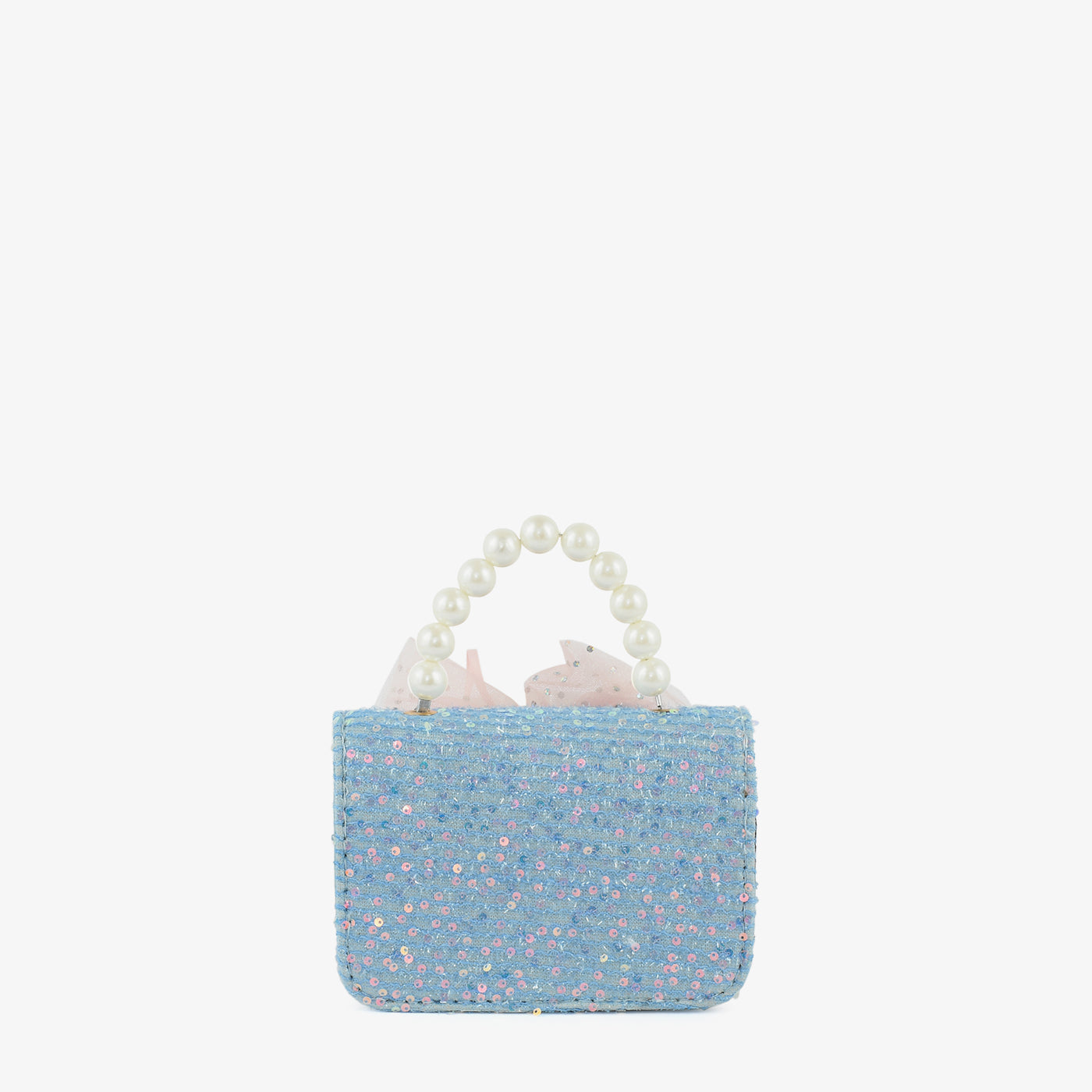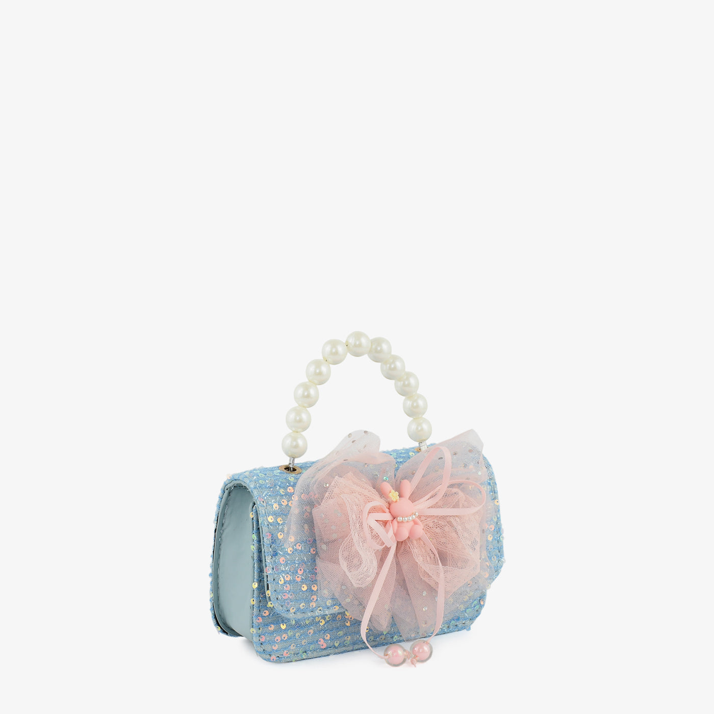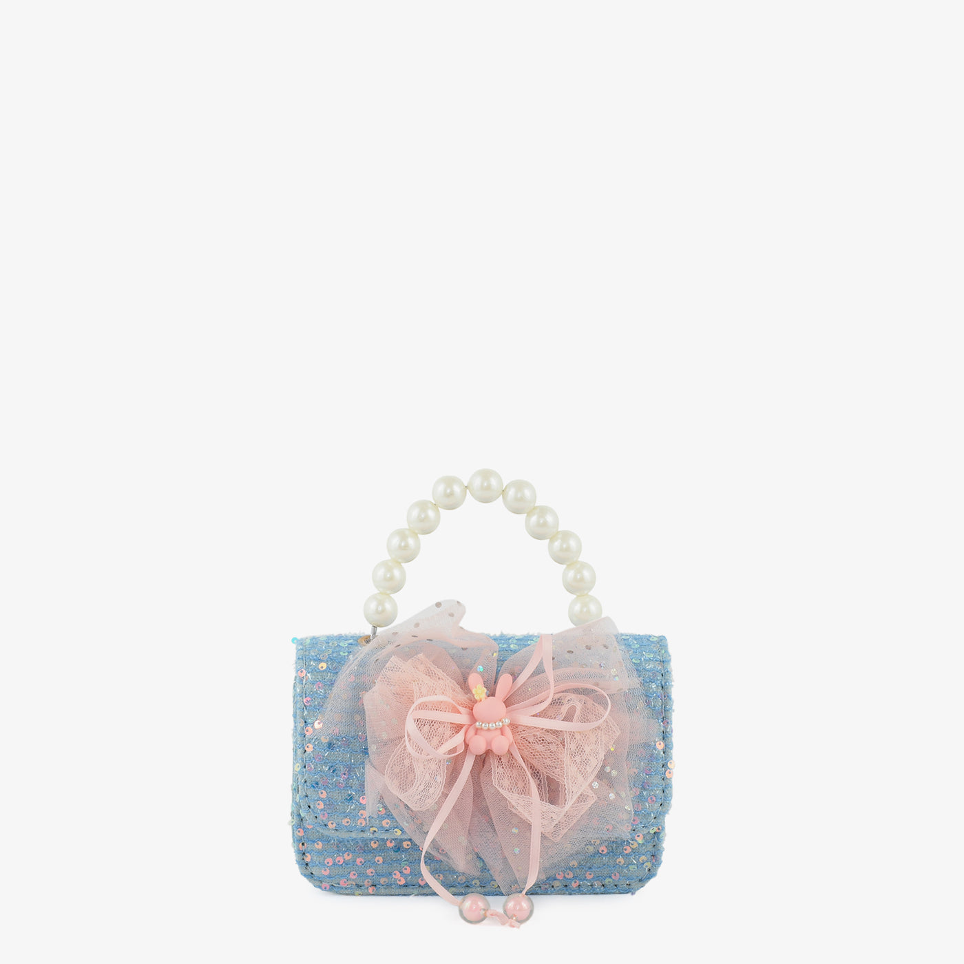 A whimsical kids’ handbag with a pearl handle and tulle bow that adds fairytale flair. Light yet elegant, it’s designed for joyful celebrations and little adventures.