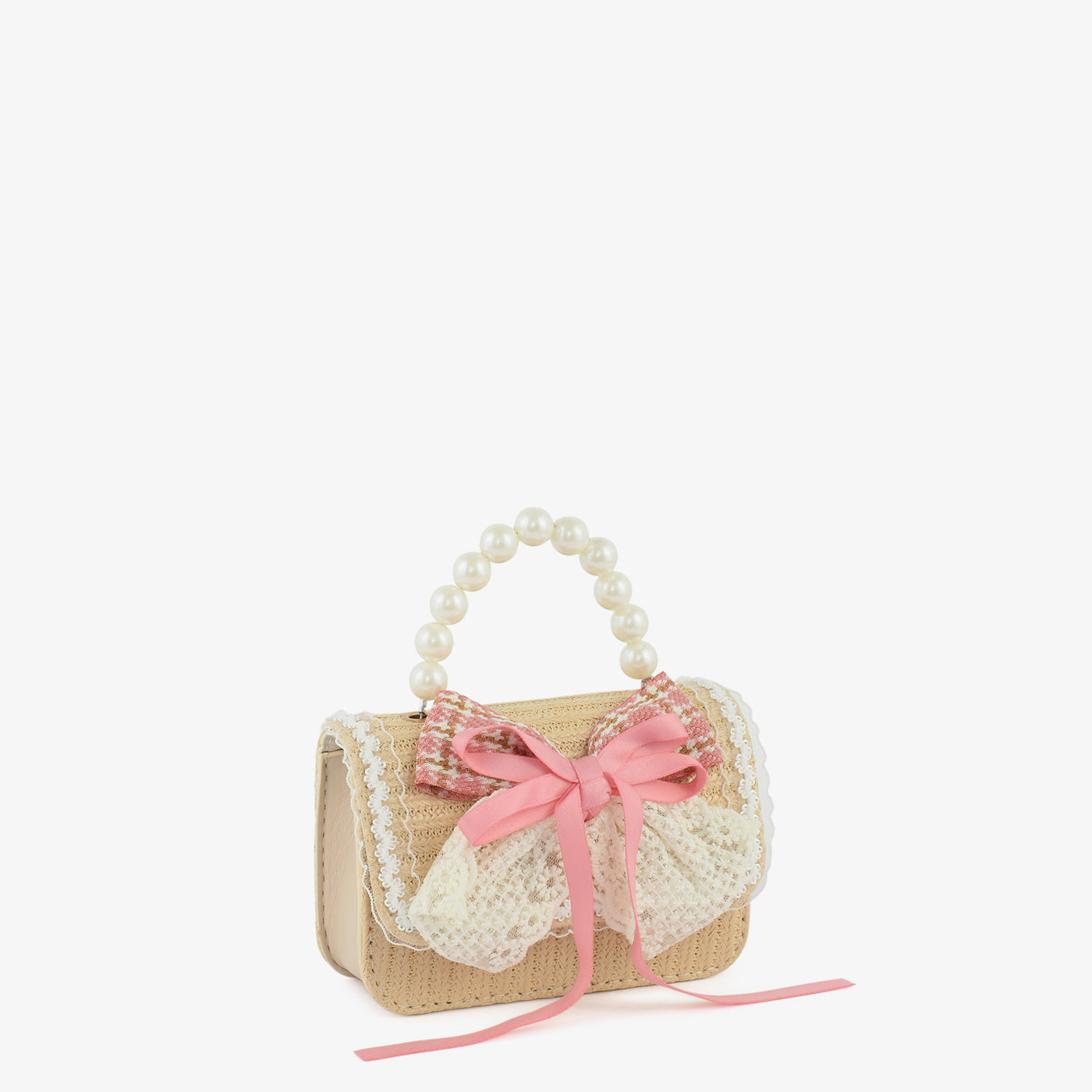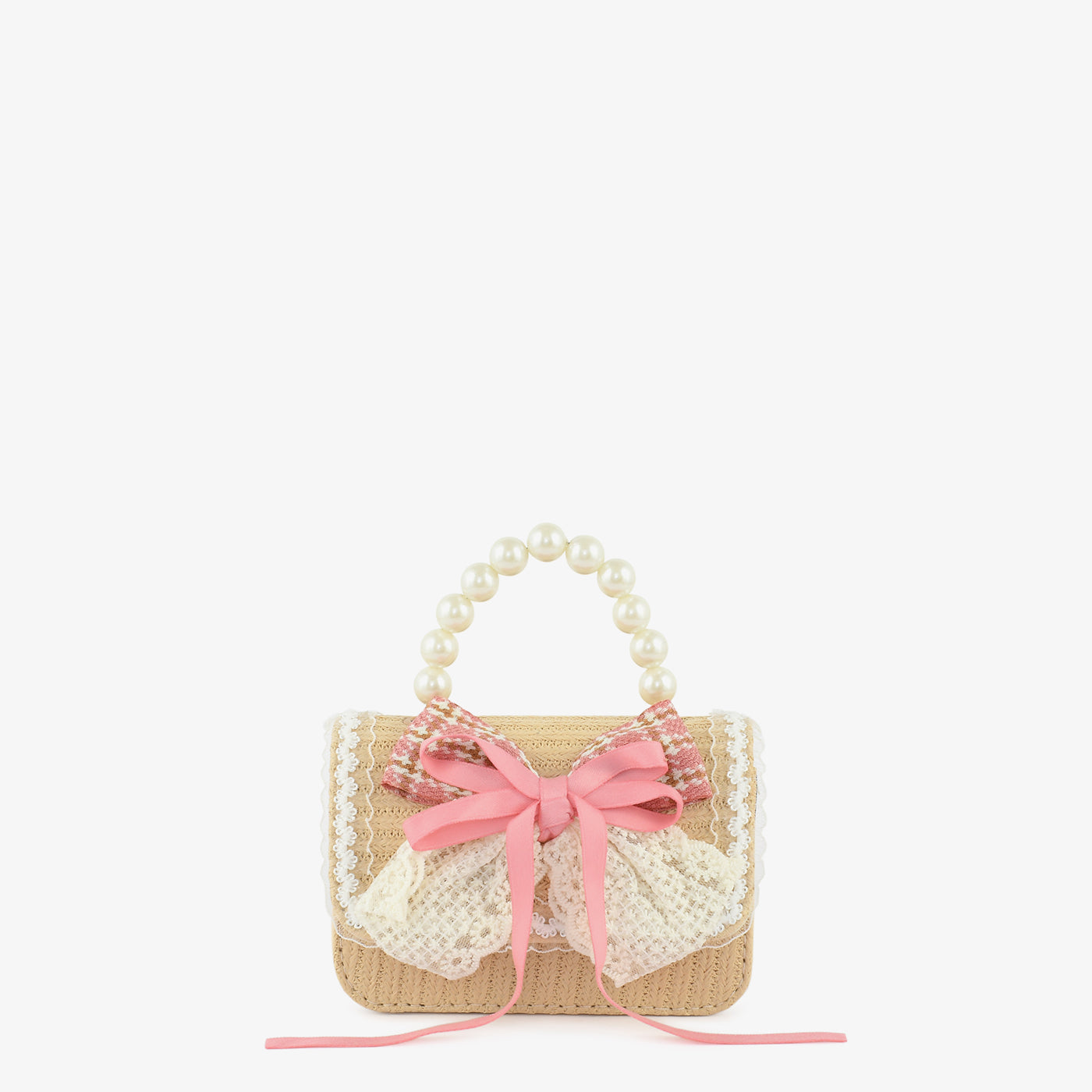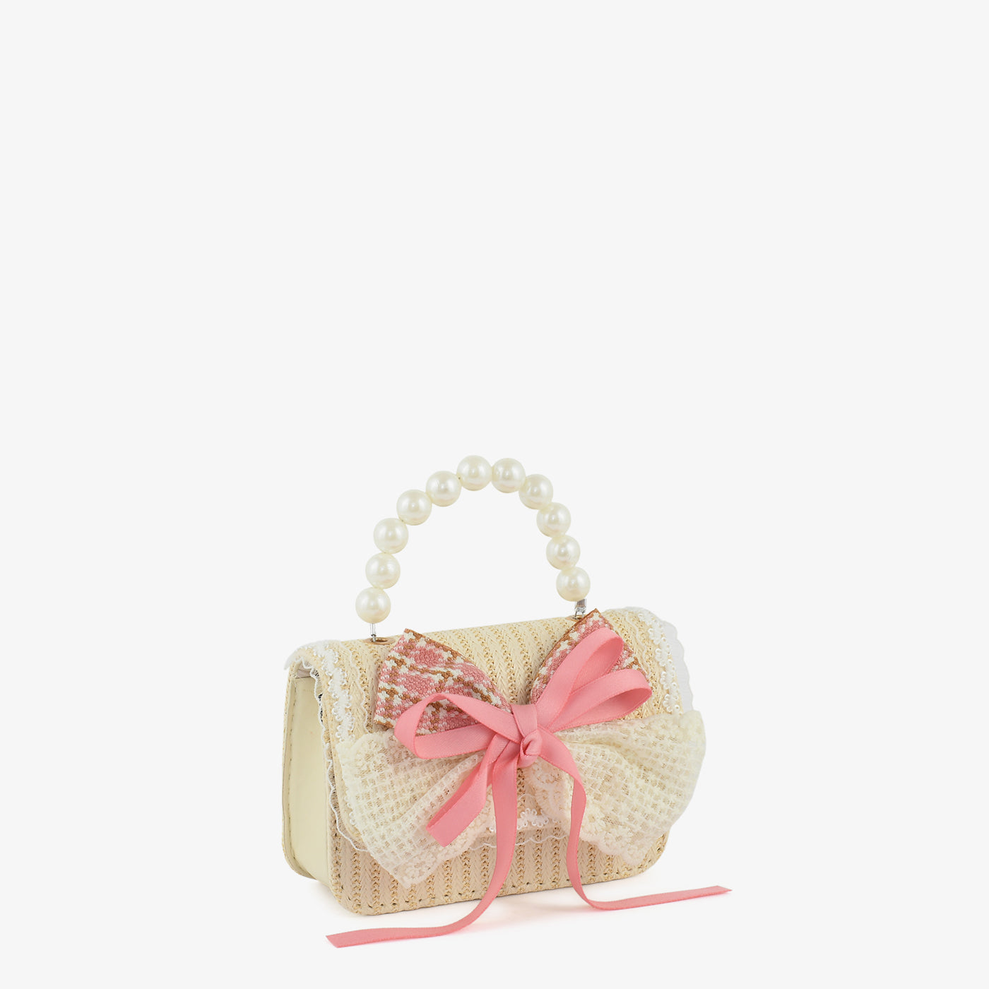 This adorable handbag features lace detailing and a statement ribbon bow for a charming, feminine look. Lightweight and easy to carry, it’s perfect for kids’ parties or casual playdates.