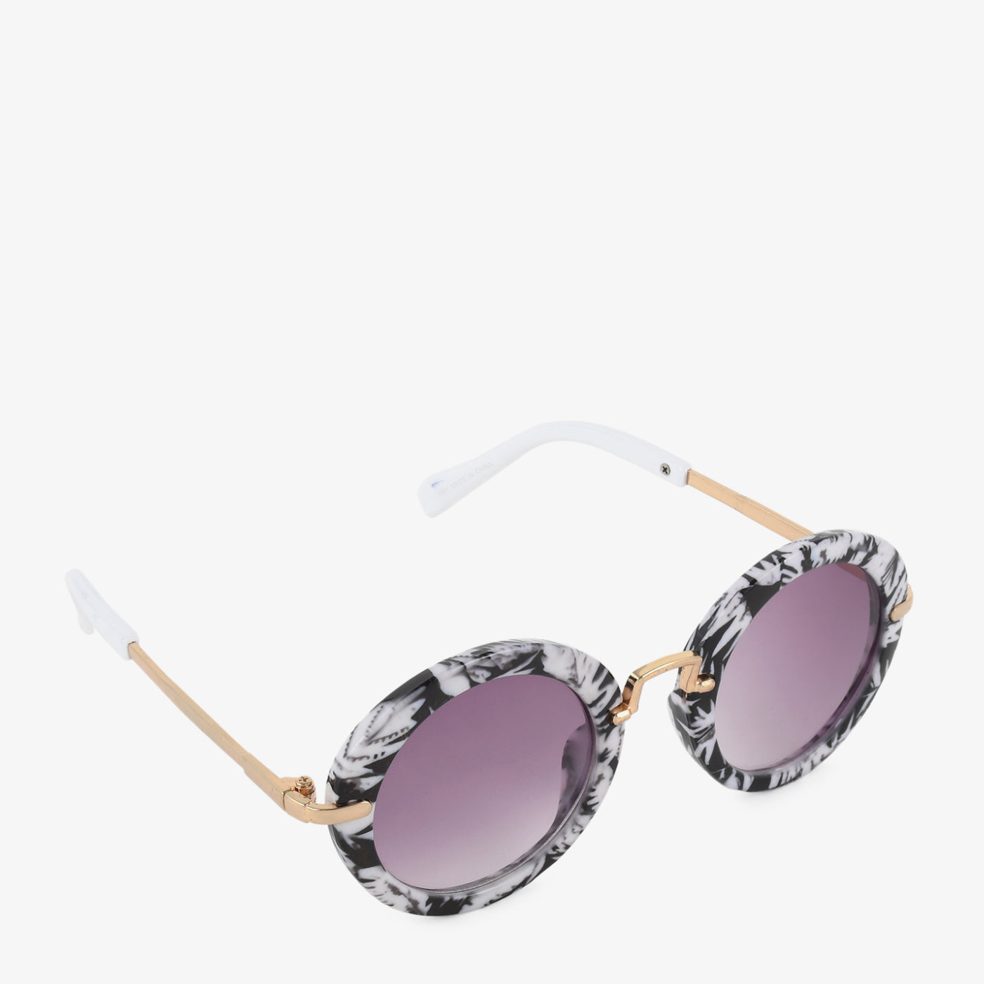 Make a statement with these Monochrome Sunglasses that combine retro flair with modern sophistication. The black-and-white marbled frame paired with gold-tone metal temples gives them an elevated, artistic look. Featuring gradient lenses, they provide both sun protection and standout style.