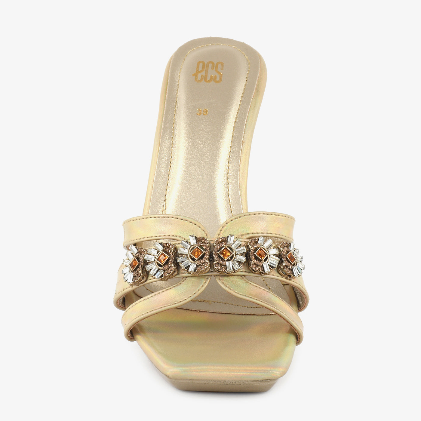 A luminous design with jewel-studded straps, this heel brings radiance to festive moments. Its sleek silhouette and high heel add a glamorous edge.