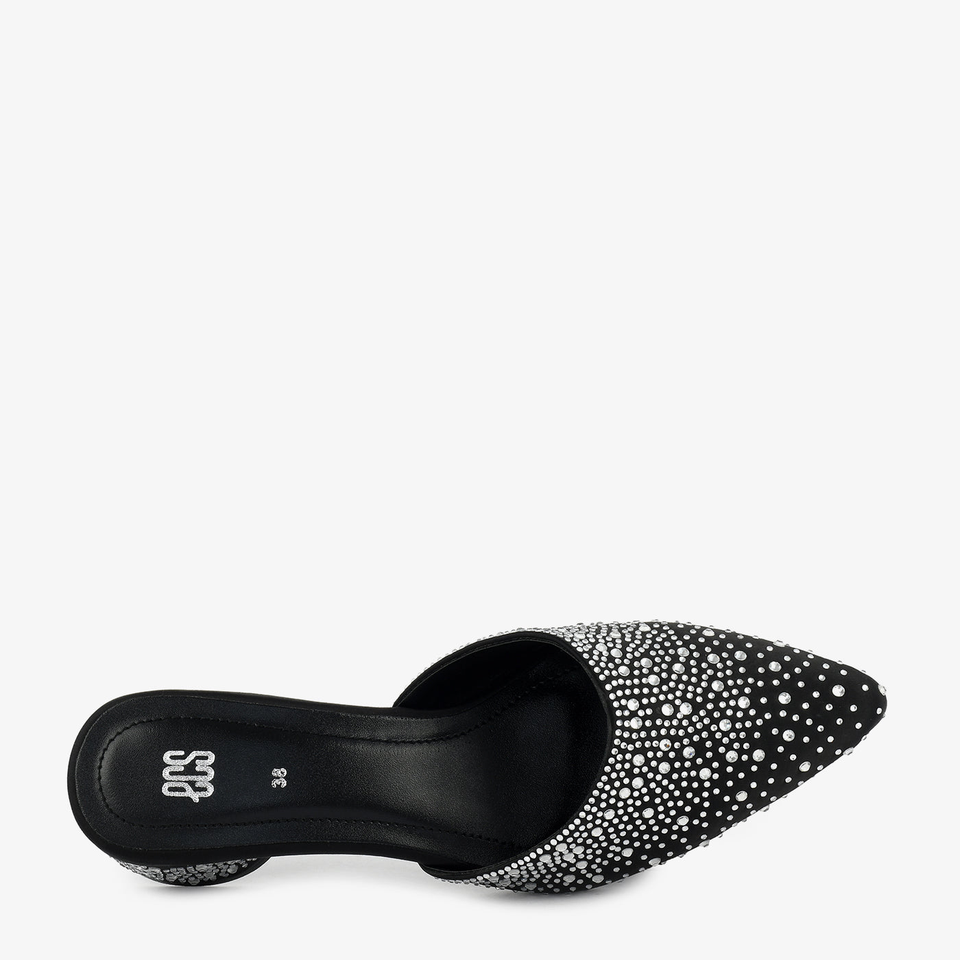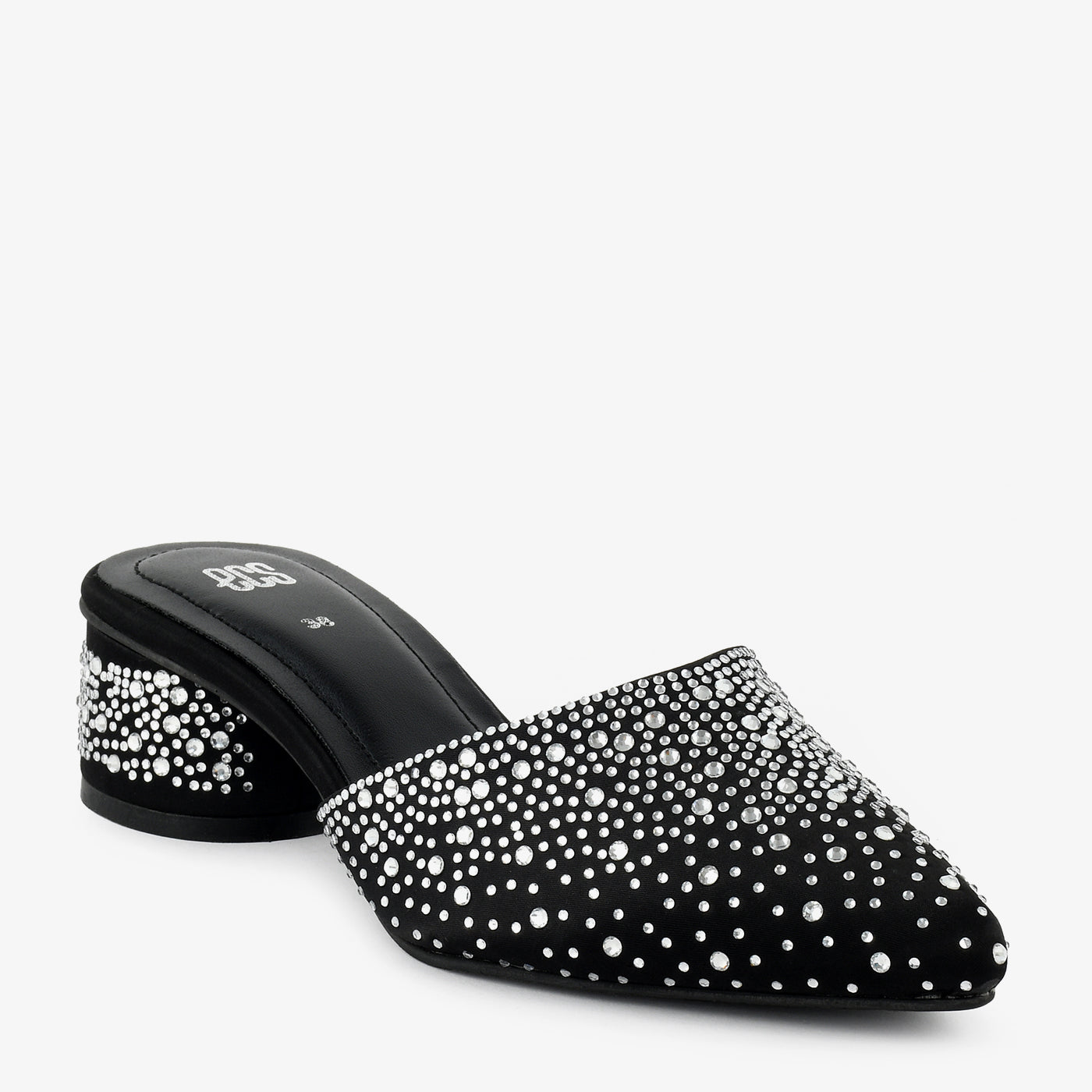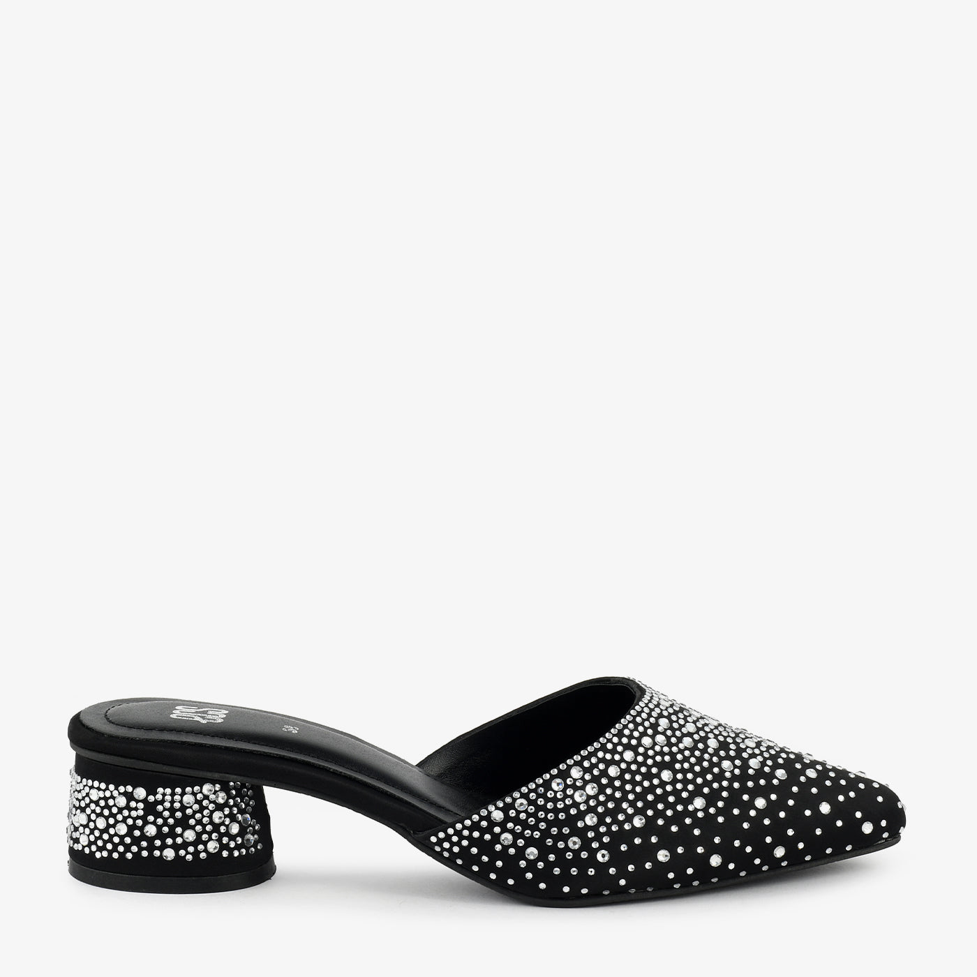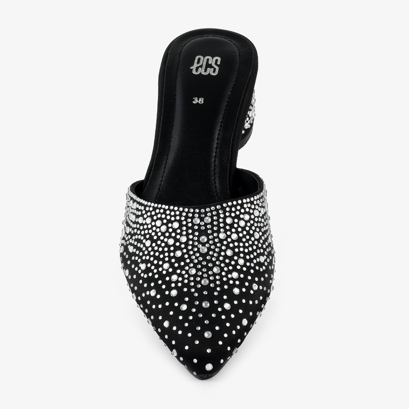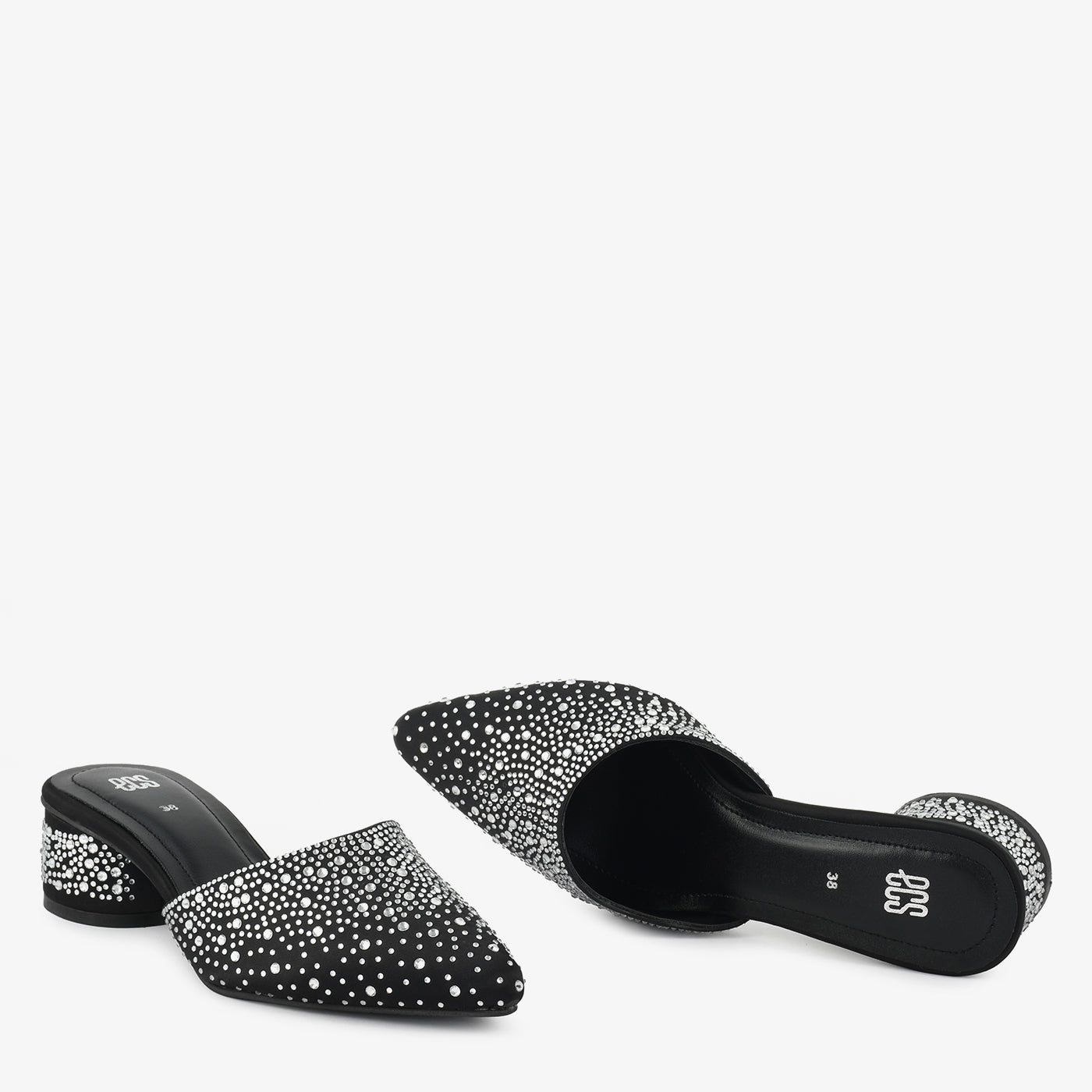 A chic mule crafted with all-over sparkling stud detailing, giving it a standout evening look. The slip-on design ensures quick styling while the mid-heel provides comfort throughout the night. A perfect pick for formal and festive outfits.