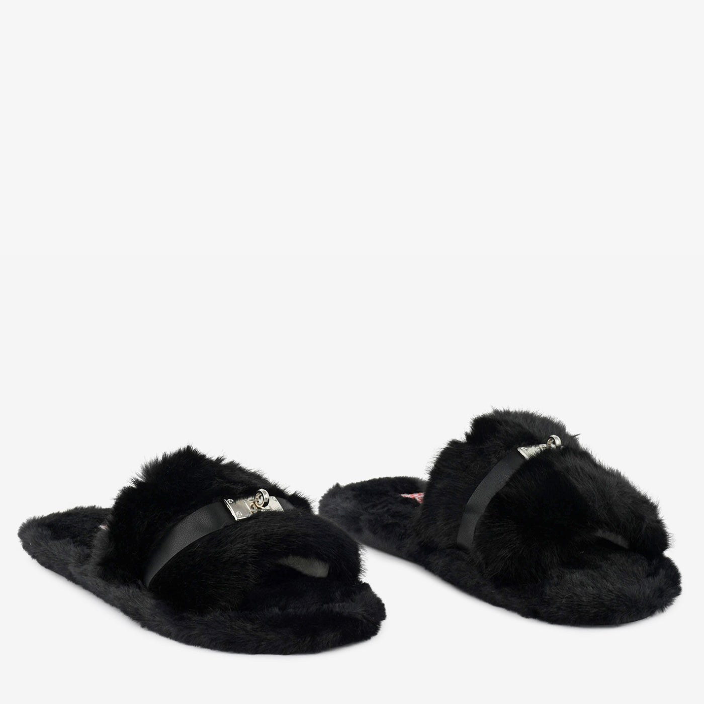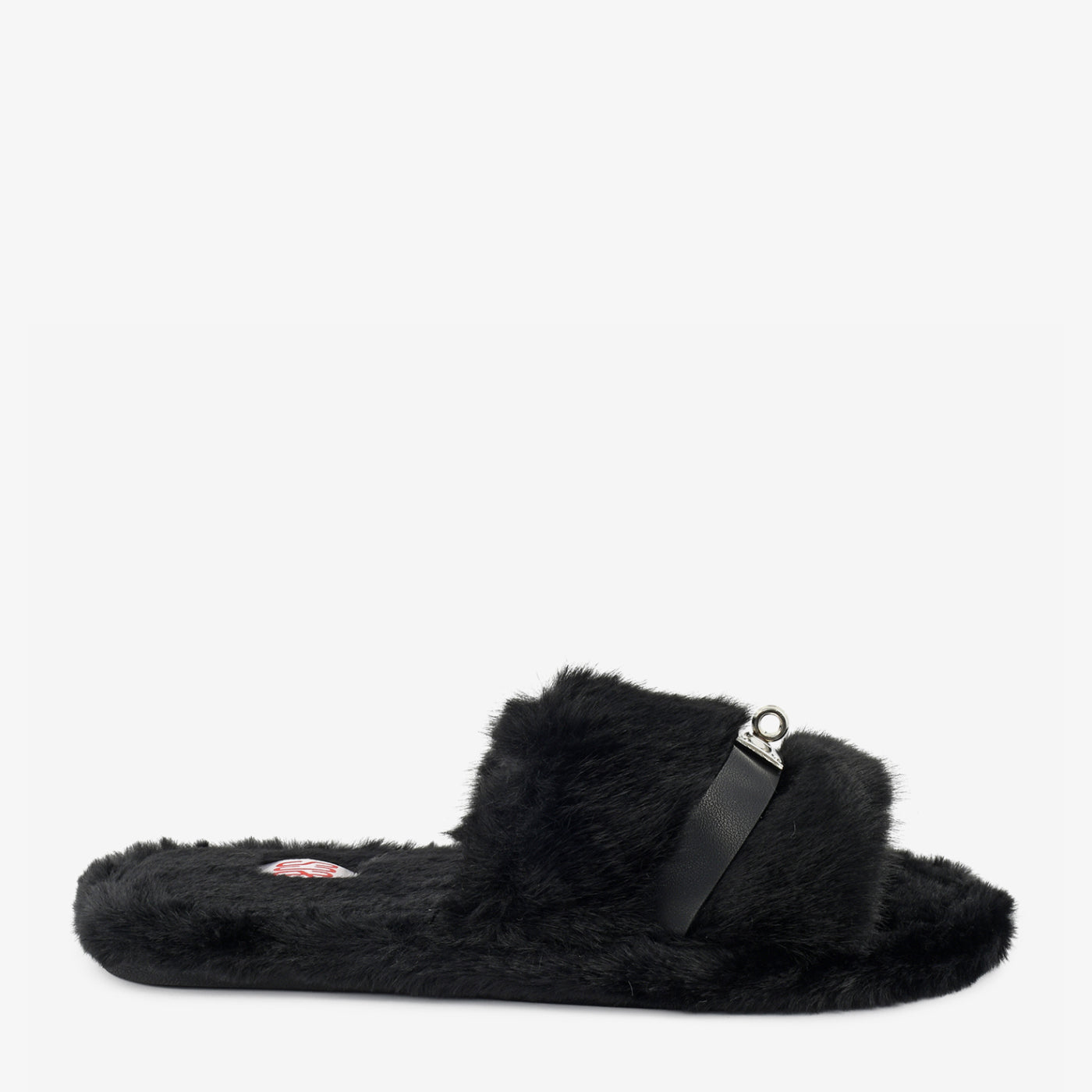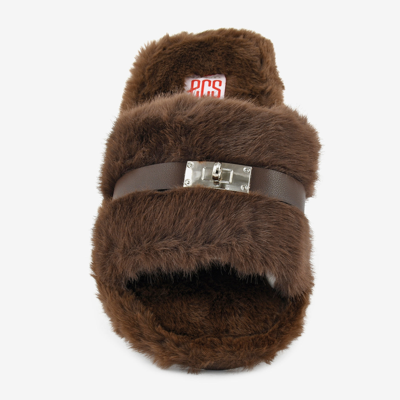 - Design: Plush winter slide with buckle accent