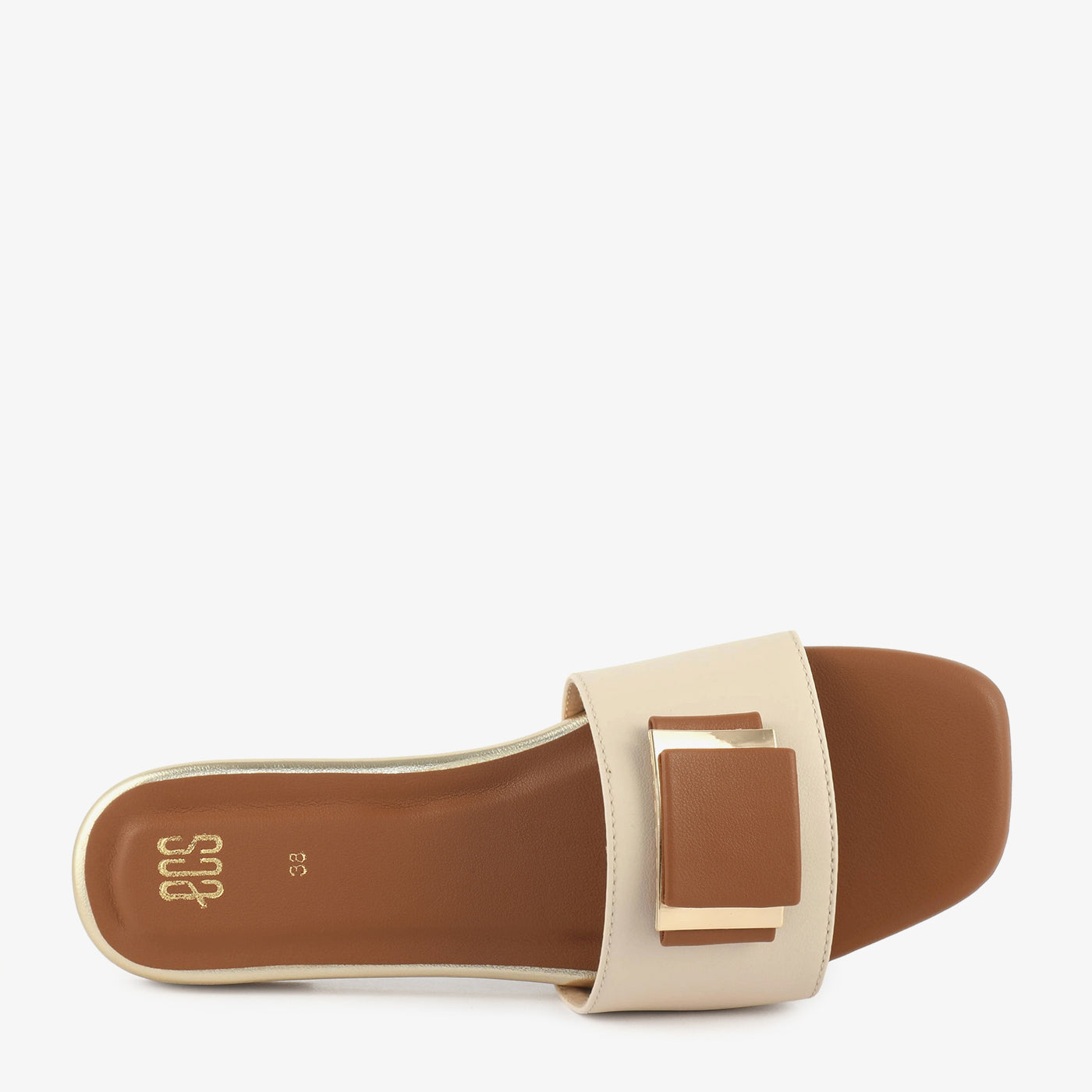 This stylish flat slipper features a wide strap with a sleek buckle accent that adds a refined and modern touch to your everyday look. Designed with a smooth cushioned footbed, it ensures long-lasting comfort for daily wear. The slip-on design offers easy wearability, making it perfect for busy routines. Its lightweight structure supports effortless movement, while the neatly finished edges enhance durability and maintain a polished appearance. Suitable for casual outings, office wear, and relaxed gatherings, this slipper blends simplicity with contemporary elegance.