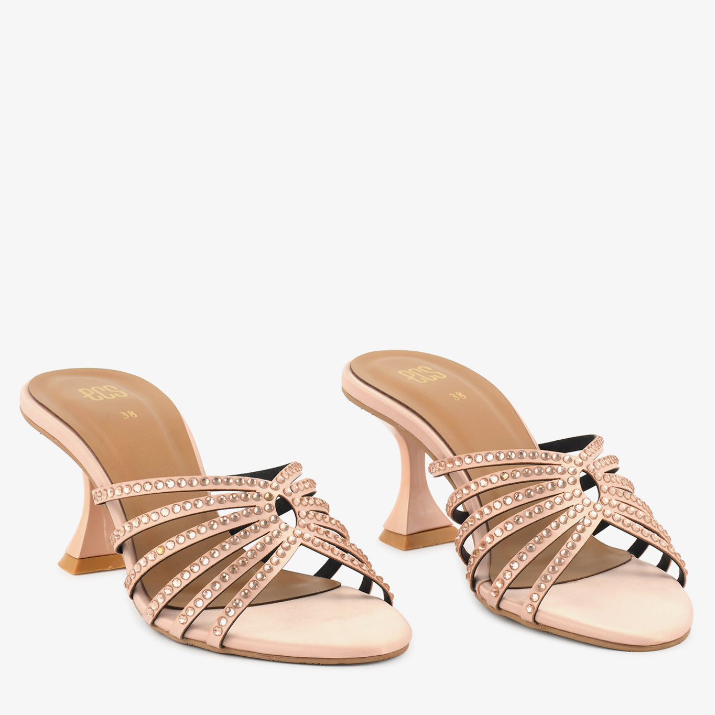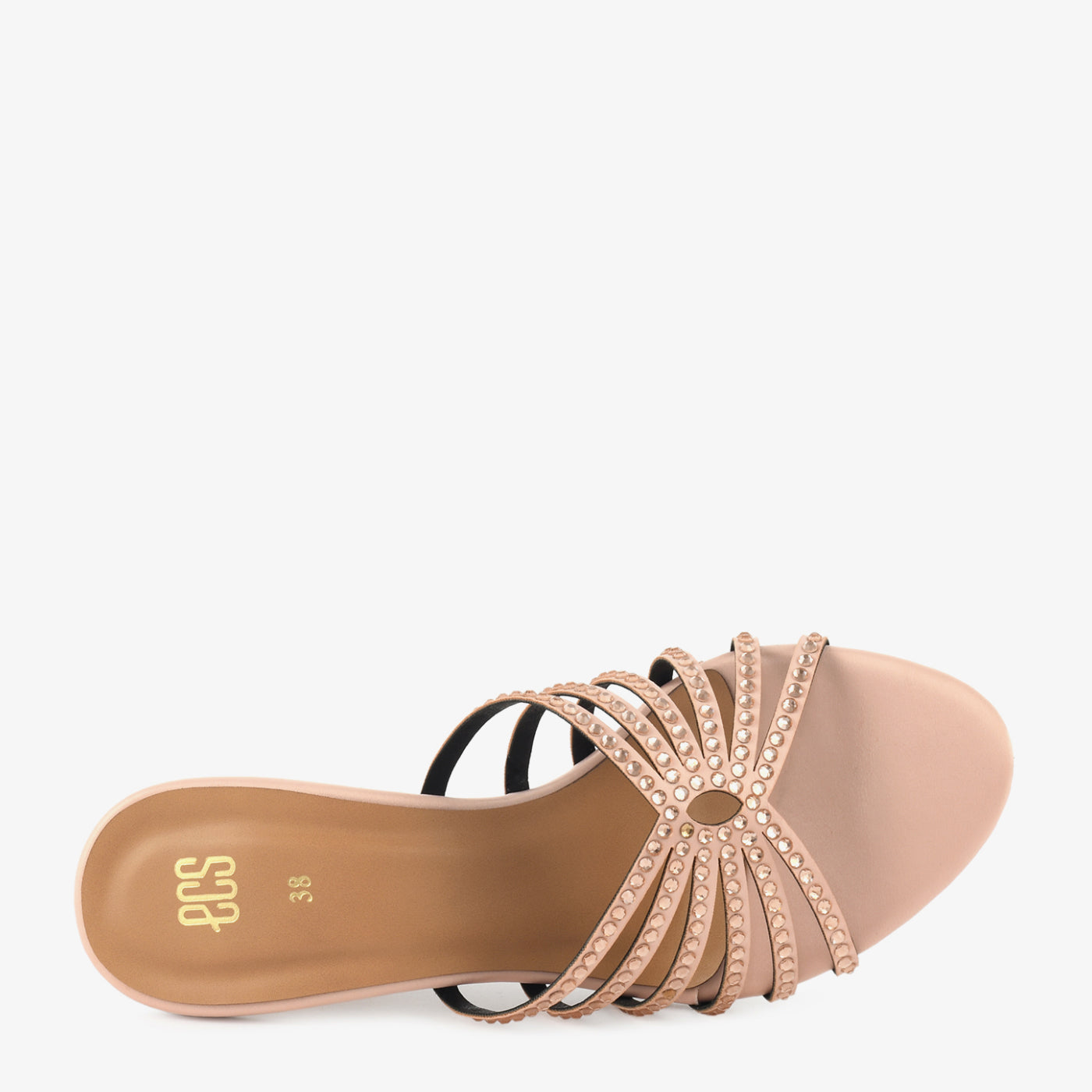 This stylish women’s heel features a sculpted raised sole that enhances posture while remaining comfortable. The multi-strap upper is detailed with fine crystal accents for a striking finish. Its slip-on structure offers ease without compromising elegance. Designed for women’s fashion wear, it delivers a modern statement silhouette. The smooth footbed supports extended use during events. Clean lines keep the focus on the embellished upper. An eye-catching piece for dressed-up occasions.
