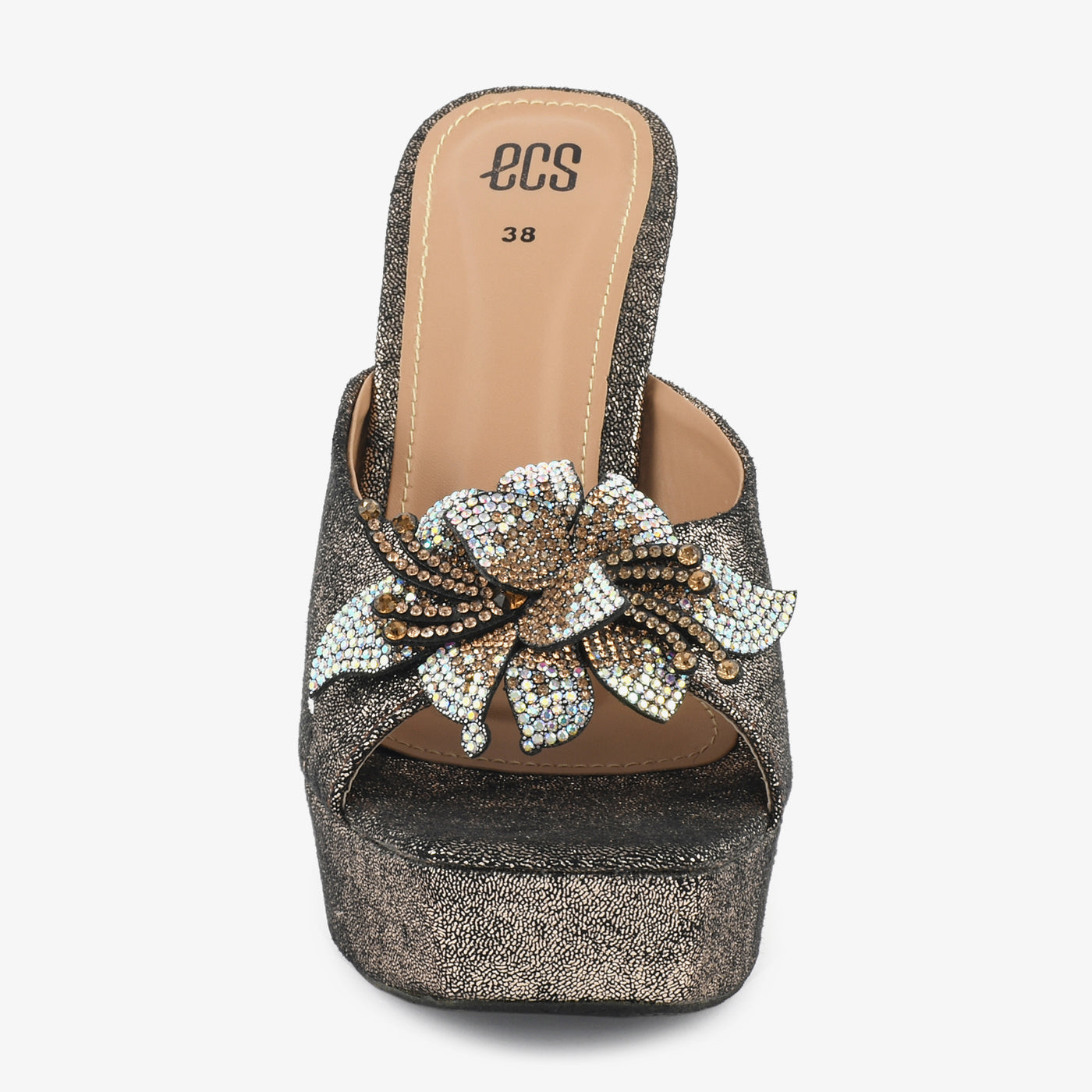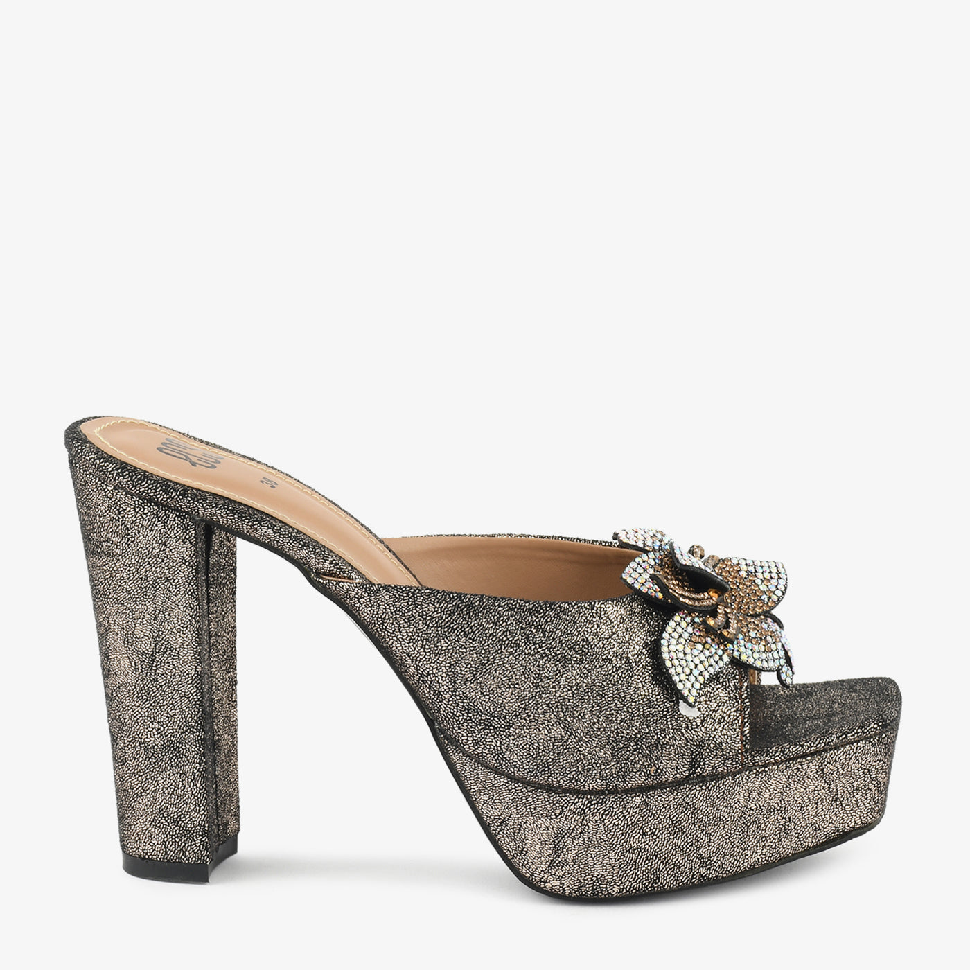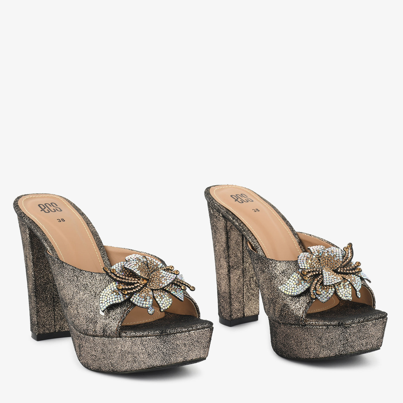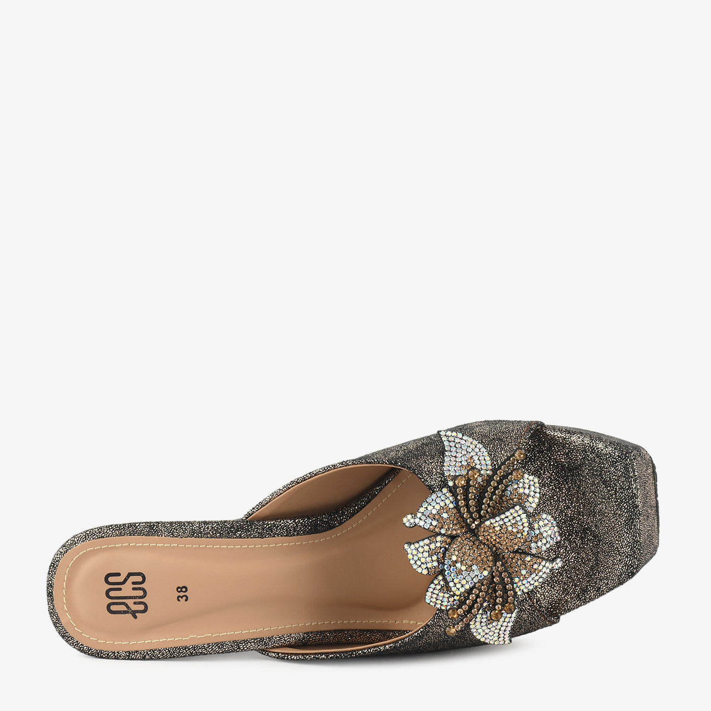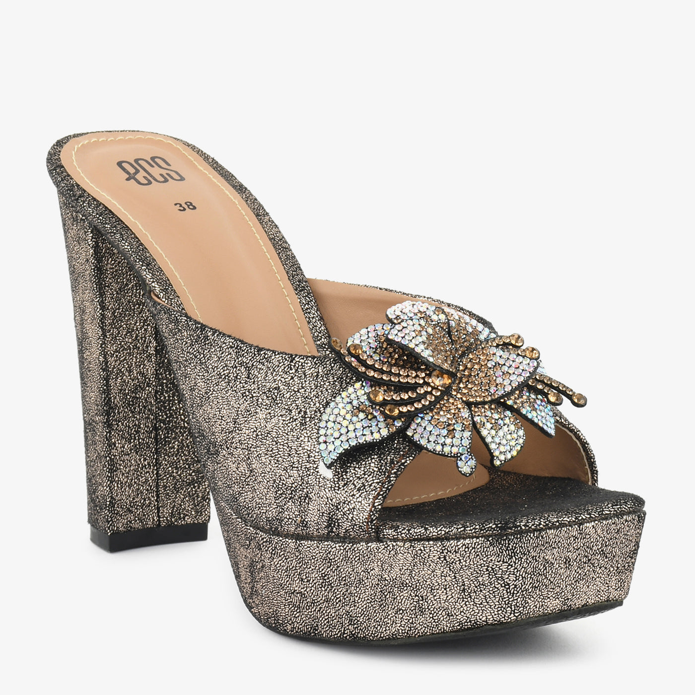 This elevated heel features a sculpted sole and delicately embellished upper that enhances its glamorous appeal. Designed to provide stability with style, the broad heel ensures comfort for extended wear. The open-front design keeps it modern and breathable. Perfect for celebrations and formal gatherings.