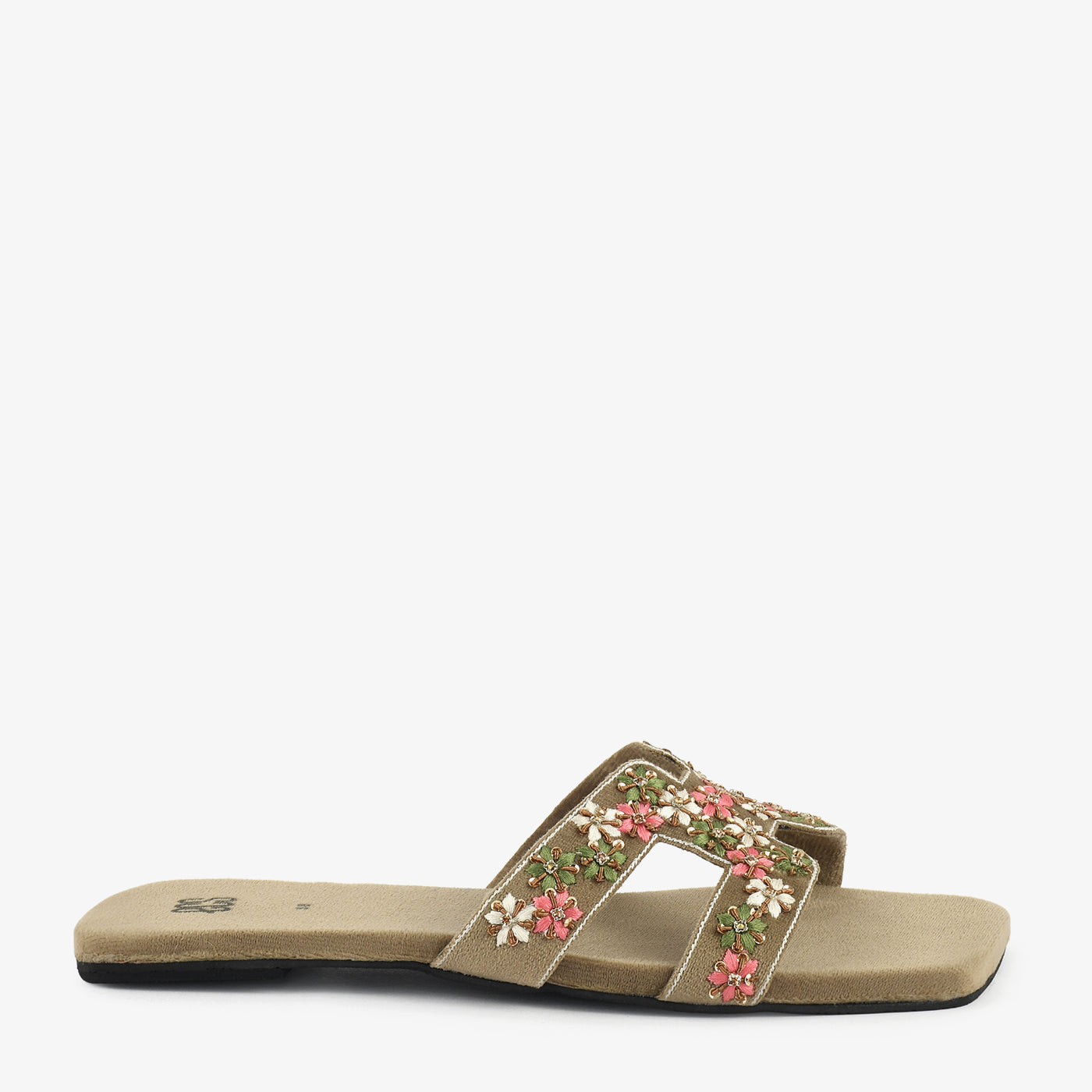 This stylish slip-on slipper features intricate floral embroidery that adds a charming and graceful touch to your everyday look. The criss-cross strap design provides a secure and comfortable fit for all-day wear. Crafted with a soft and cushioned footbed, it ensures lasting comfort with every step. Its lightweight construction allows easy movement and reduces foot fatigue. The smooth inner lining enhances overall comfort and durability. The slip-on structure makes it convenient for quick outings and daily use. Perfect for casual and ethnic wear, it blends elegance with everyday practicality.