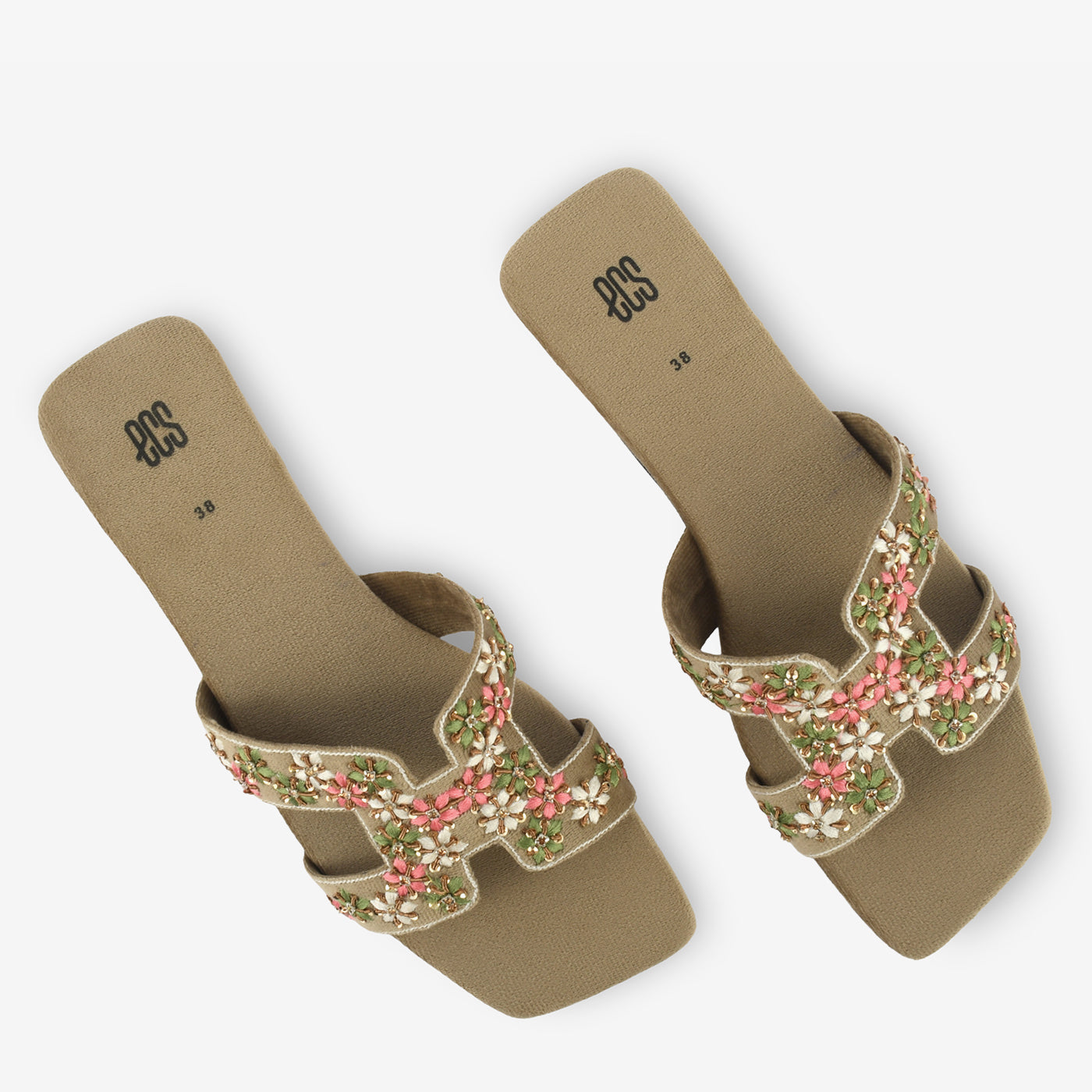 - Design: Slip-on slipper with embroidered cross straps