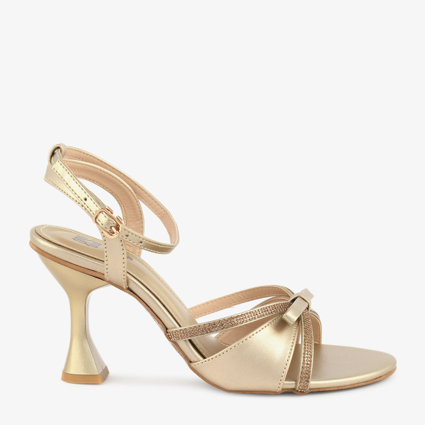 • Design: Bow detail with ankle strap and sculpted heel