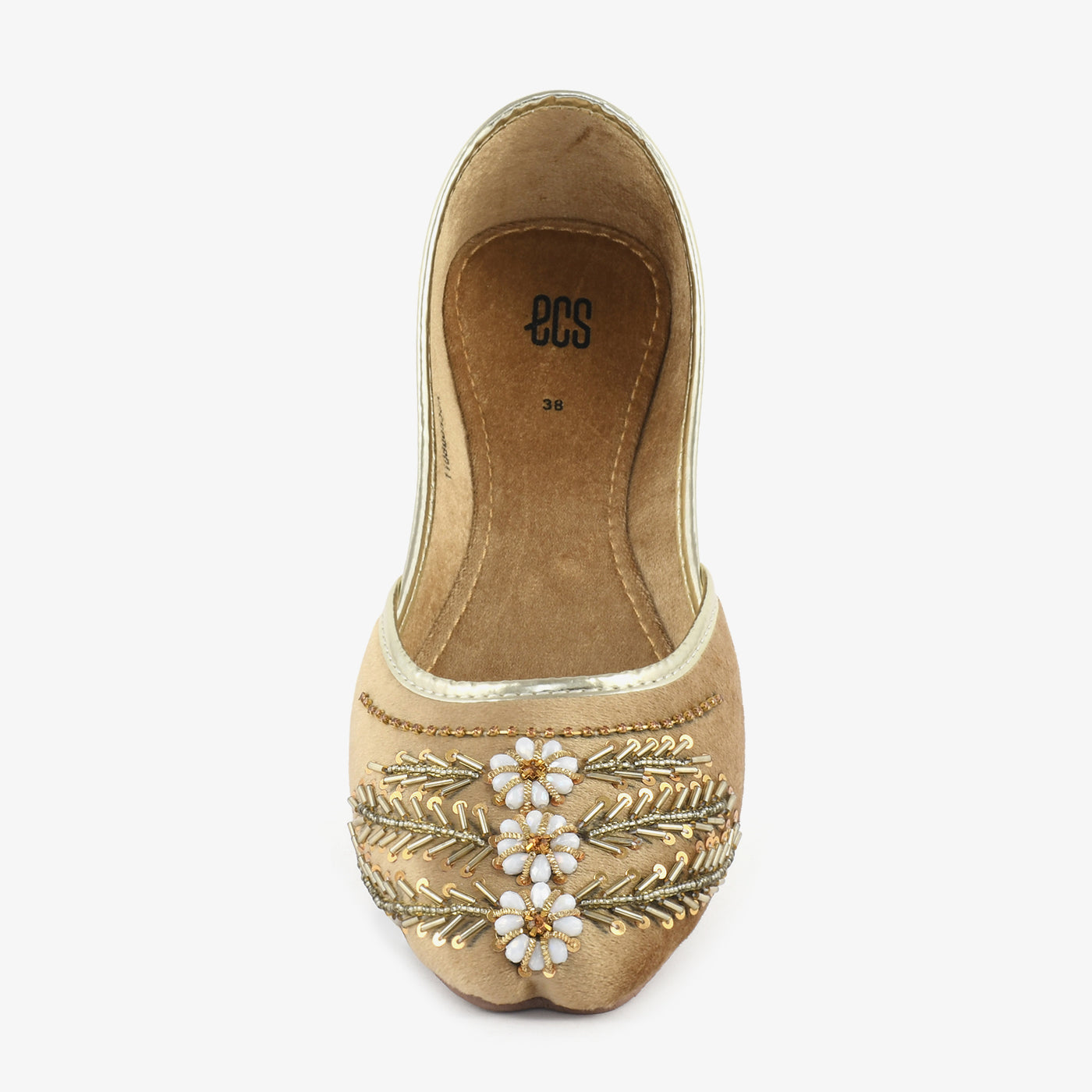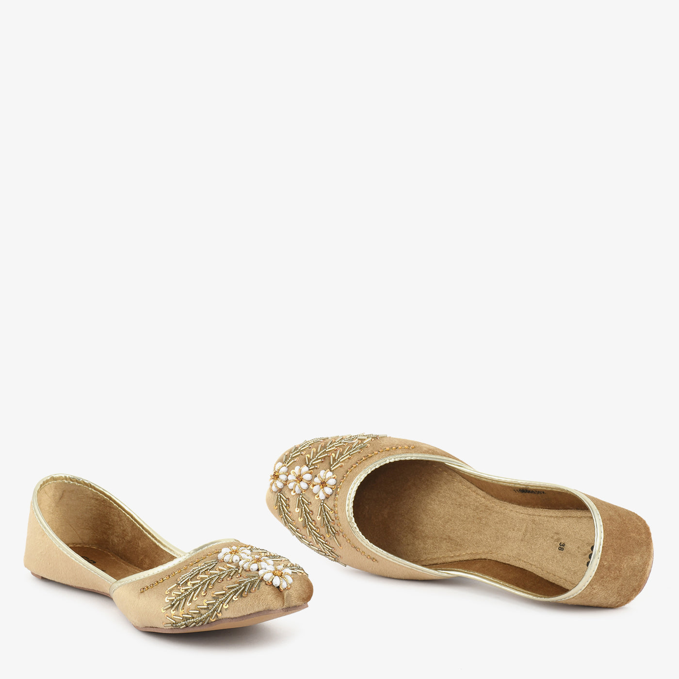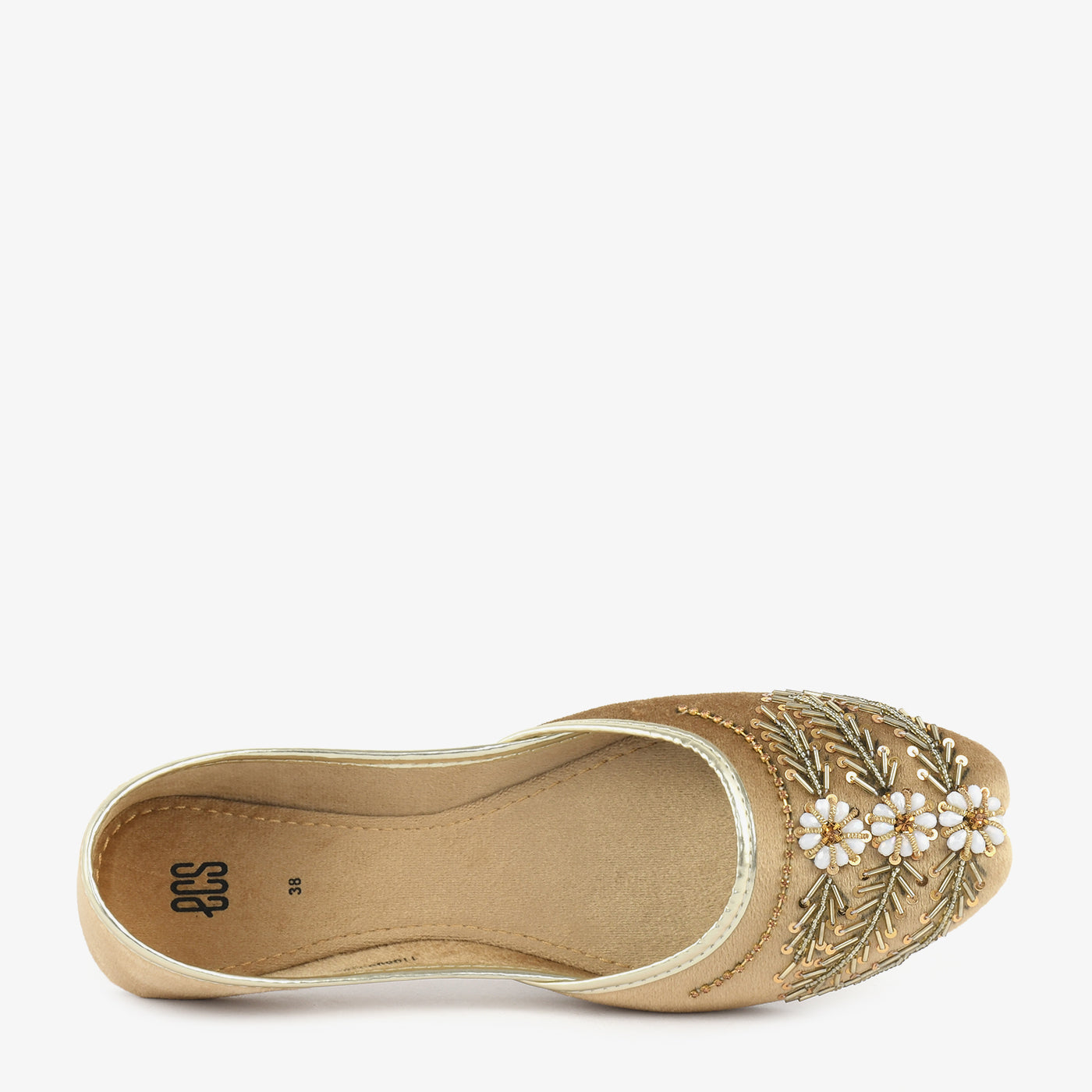 • Material: Soft fabric upper with intricate embellishments