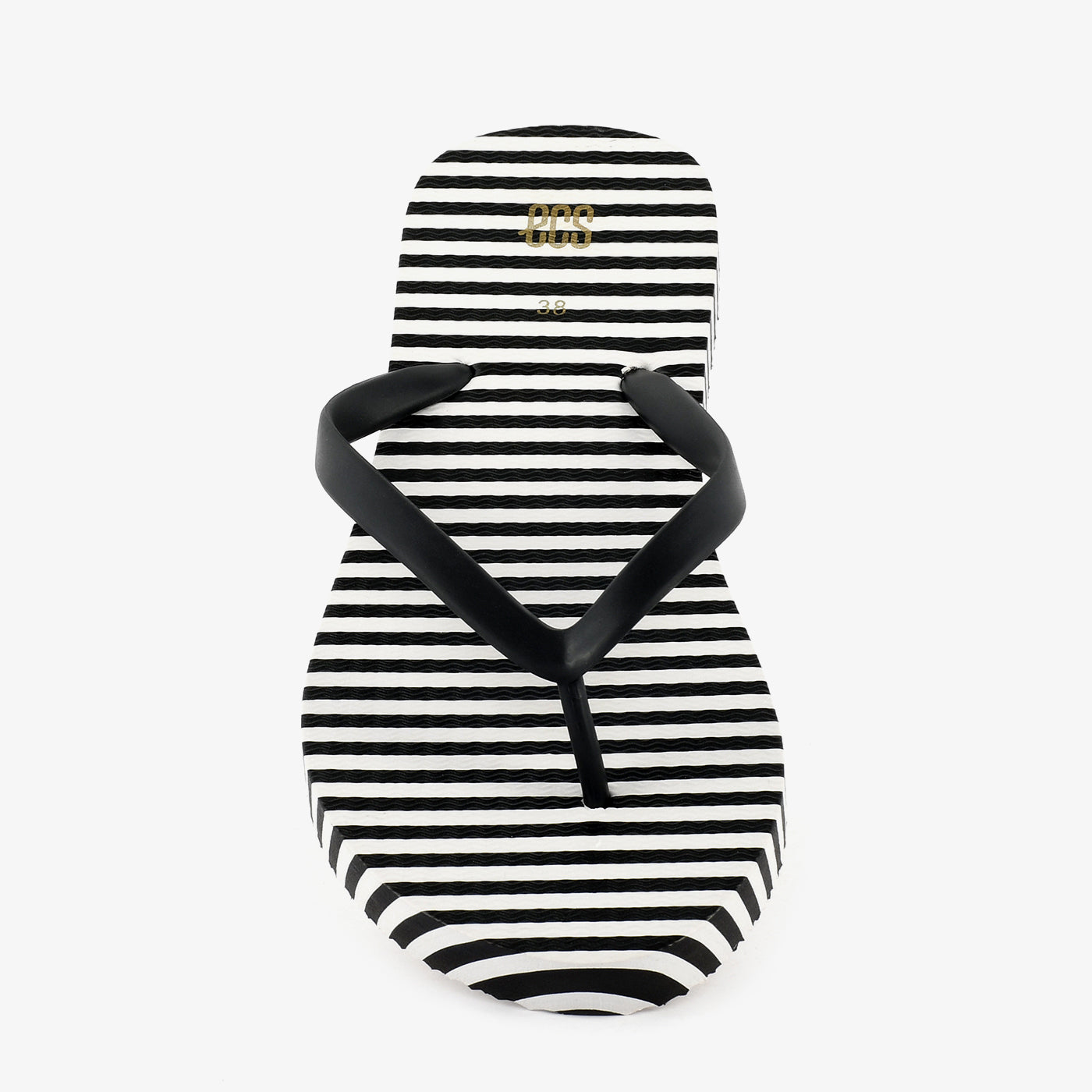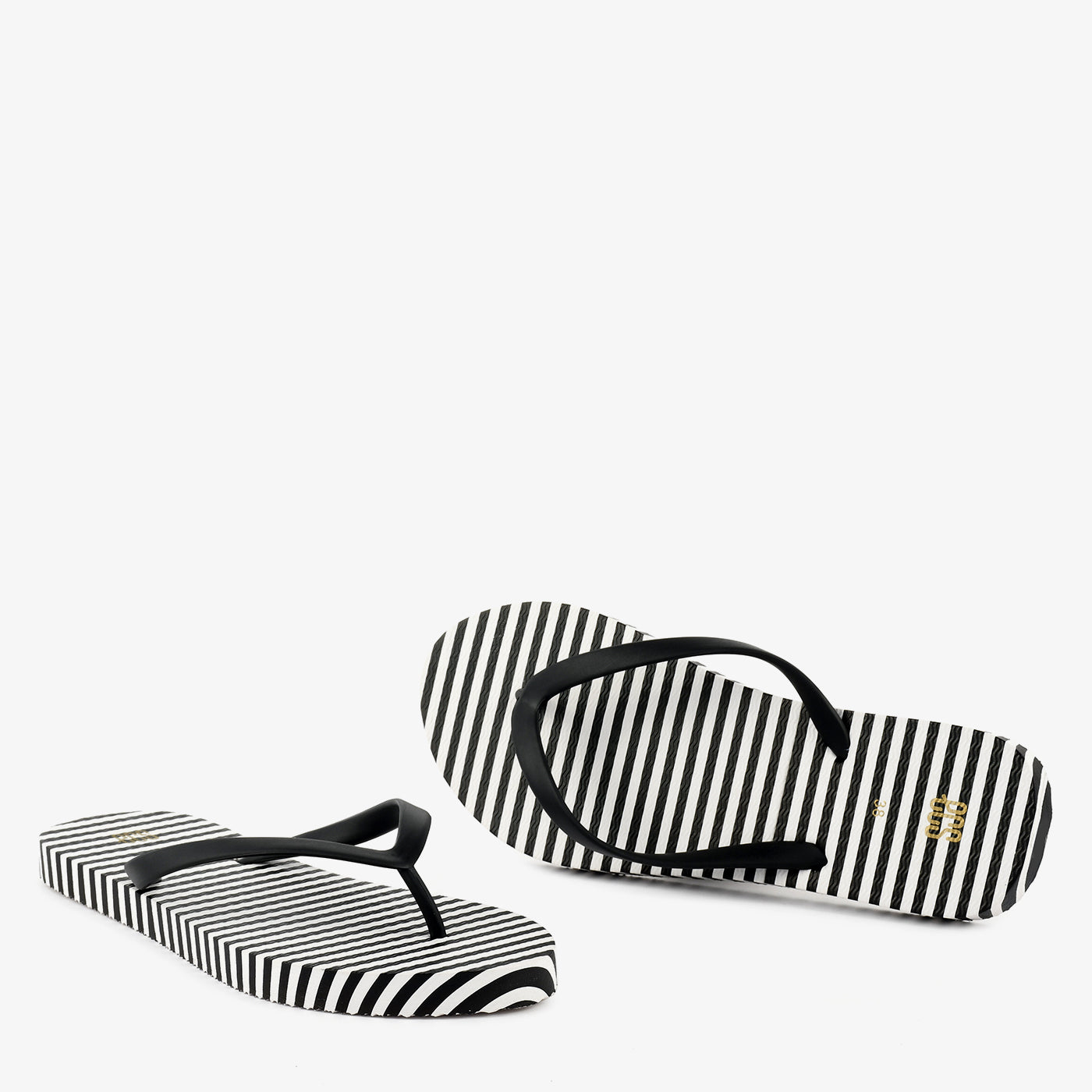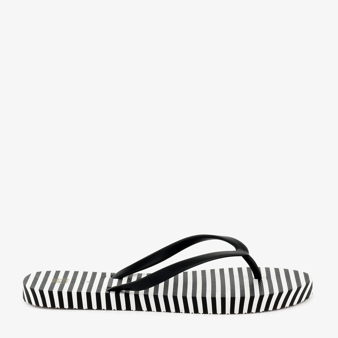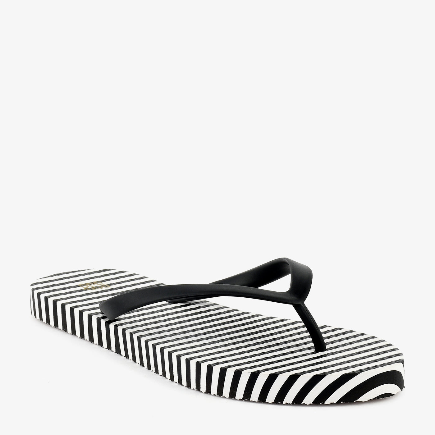 A flat toe-post chappal built on a lightweight rubber sole featuring a bold diagonal stripe print across the entire footbed surface, creating a graphic two-tone pattern that runs consistently from heel to toe. The slim rubber Y-strap in a contrasting solid tone sits cleanly against the printed footbed, adding a minimal and functional upper that keeps the focus on the graphic base. A small gold-tone brand detail is embossed at the side of the footbed, adding a discreet finishing touch. Lightweight and easy to wear, this chappal is designed for casual everyday use where a clean graphic aesthetic is the defining feature.