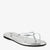 - Material: Metallic mirror-finish faux leather straps and footbed with slim toe-loop and flat rubber outsole