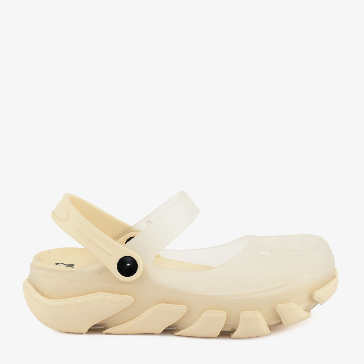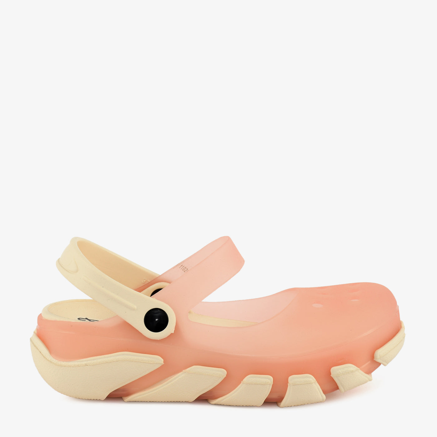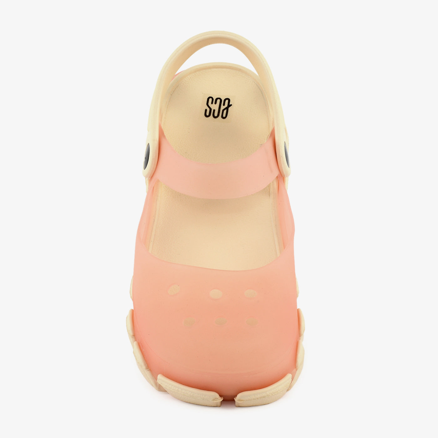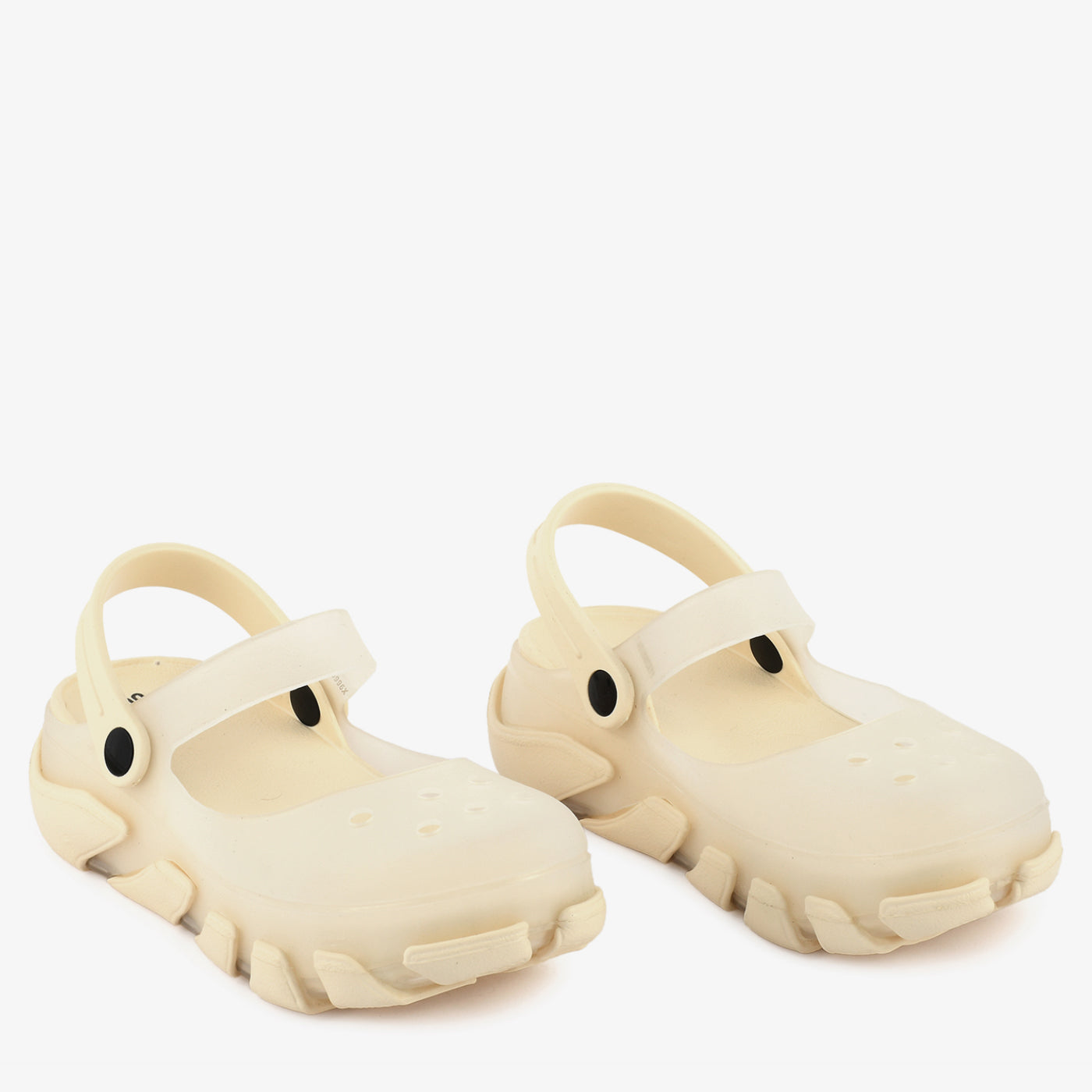 A lightweight EVA women's sandal constructed in a nature-inspired character mould, featuring a sculpted textured upper with dimensional detailing at the vamp, a chunky ridged outsole that adds a bold and expressive silhouette, and a fully enclosed toe box that provides a secure and protective fit. A flexible ankle strap with a hook-and-loop closure wraps around the back of the heel, offering an adjustable and comfortable fit suited for extended casual wear. The fully moulded one-piece EVA construction makes this sandal water-resistant, lightweight, and easy to clean, suited for outdoor settings, beach outings, and relaxed everyday use.Â