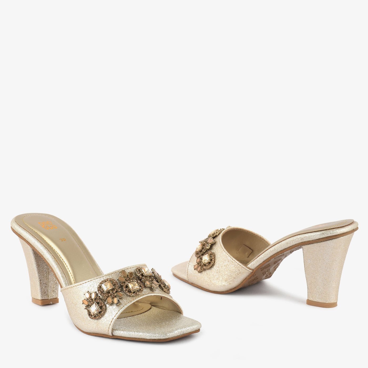 Styling Tip: These heeled slip-ons are ideal for complementing ethnic wear, from festive kurtis and semi-formal shalwar kameez to flowy dresses, adding a touch of glamour to your ensemble.
