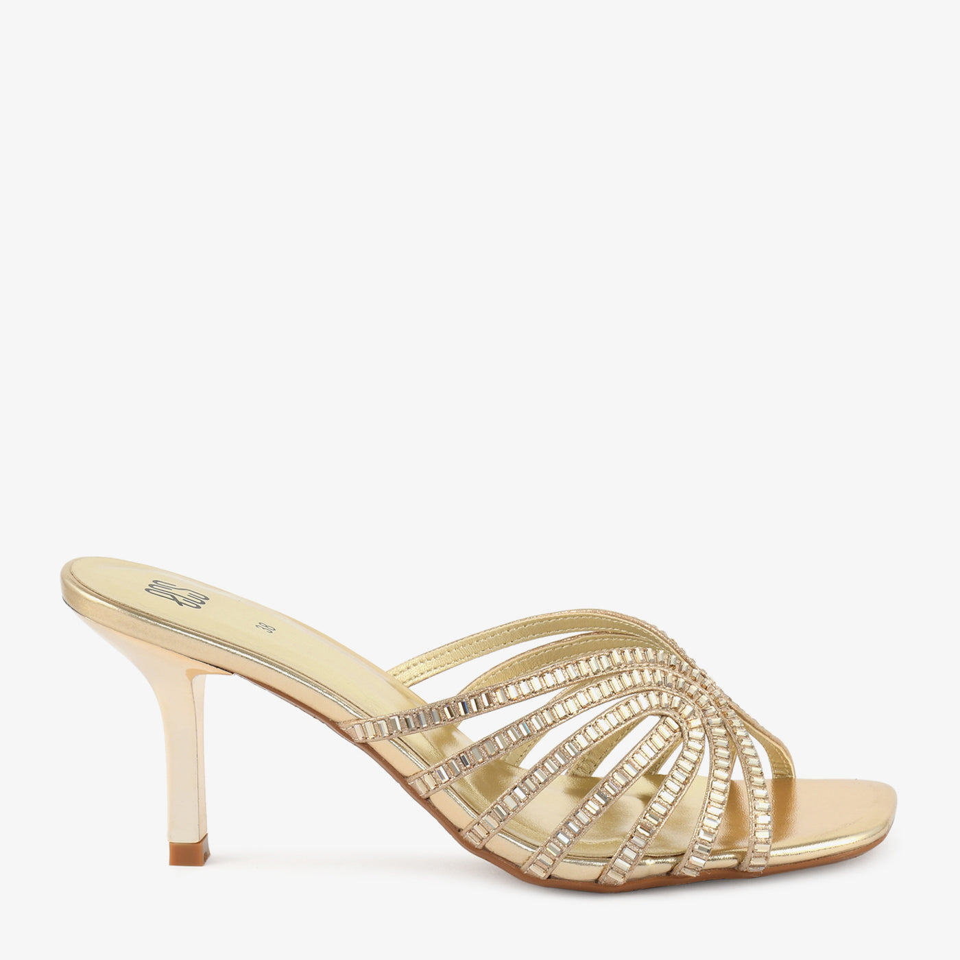 • Material: Mirror metallic footbed with multi slim baguette crystal-set radiating straps