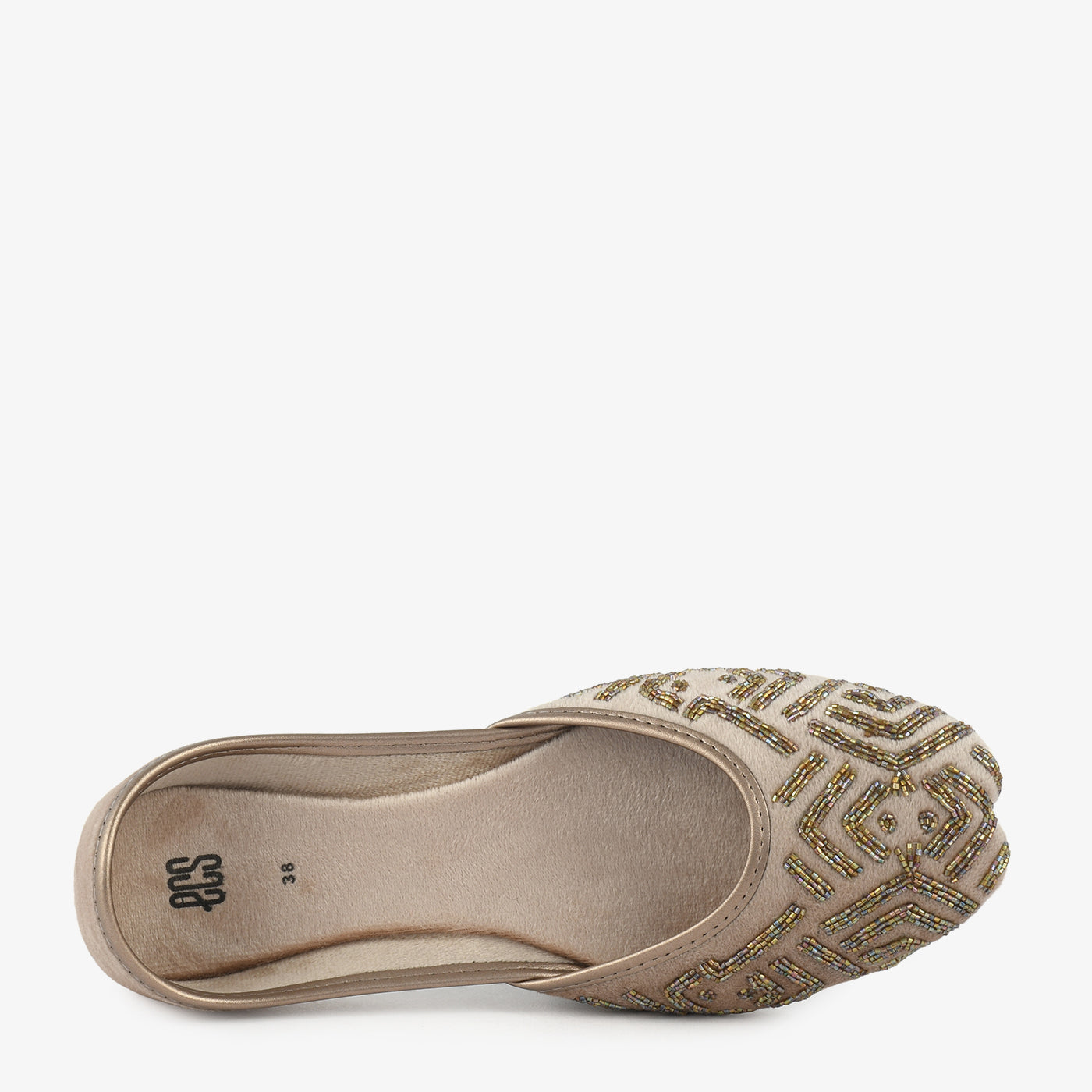 • Material: Soft fabric upper with bead embroidery and padded inner lining