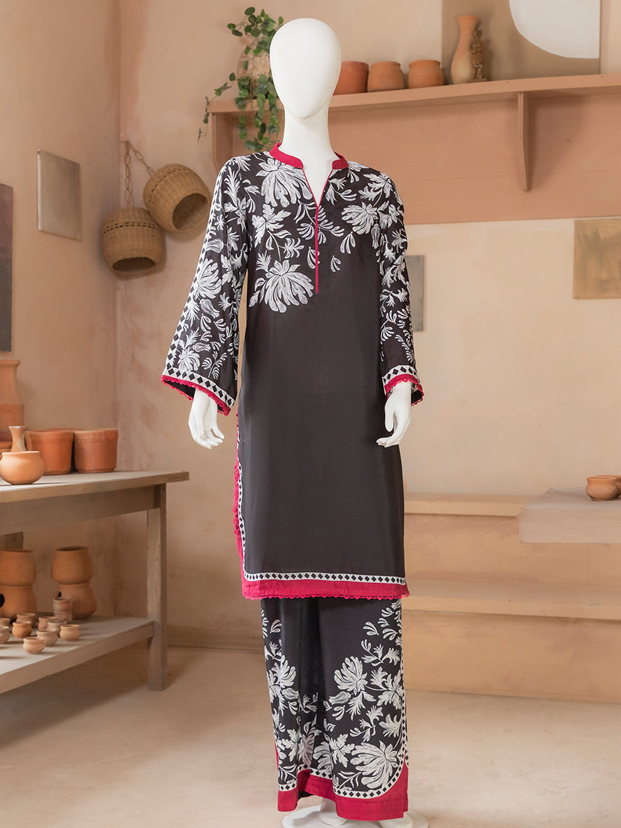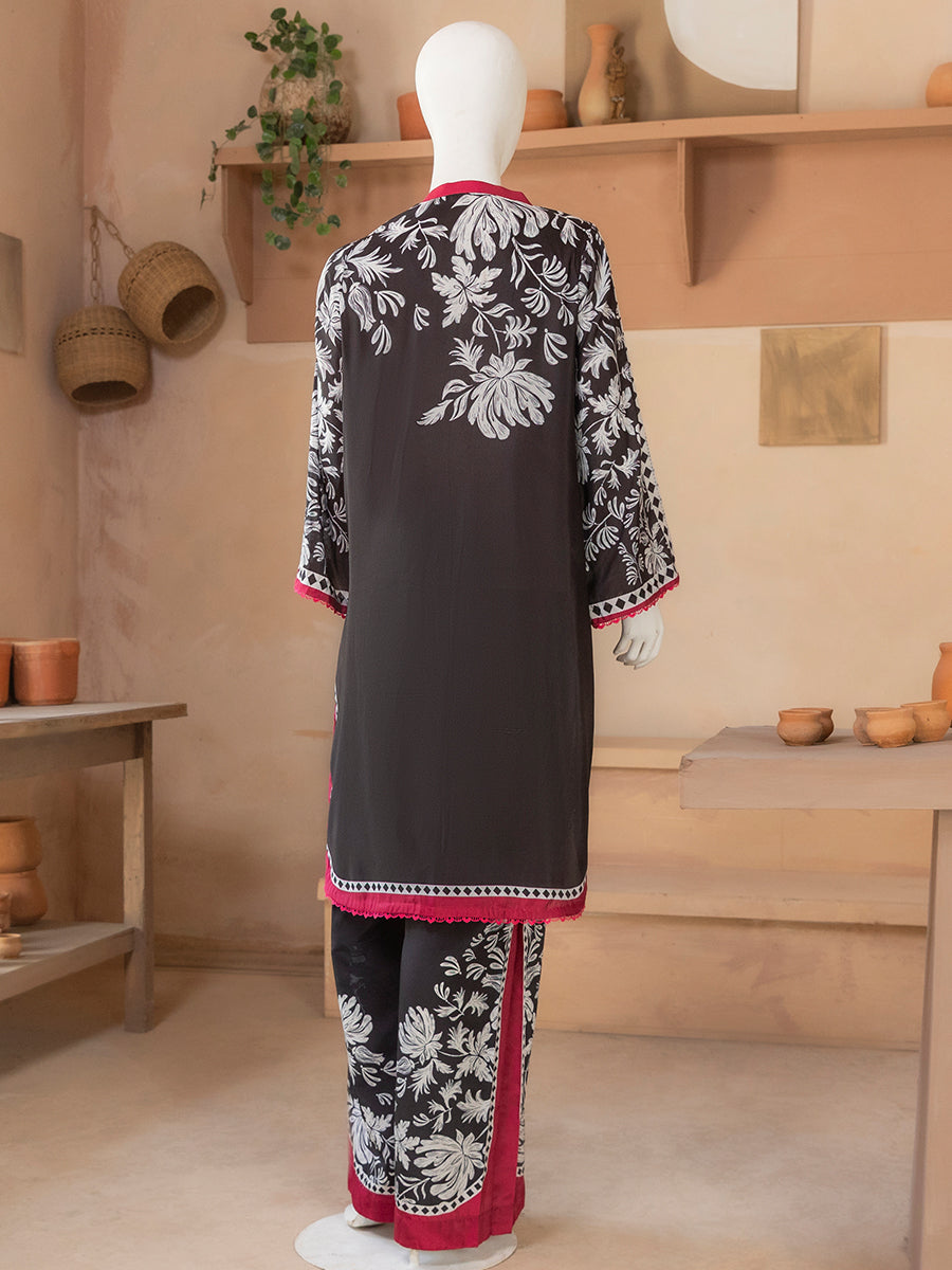 Satin Bloom is a 2-piece outfit crafted from premium crape silk. Featuring a basic shirt with trousers, it combines comfort with elegance. The printed design enhances its appeal, making it suitable for modest everyday and semi-formal wear.