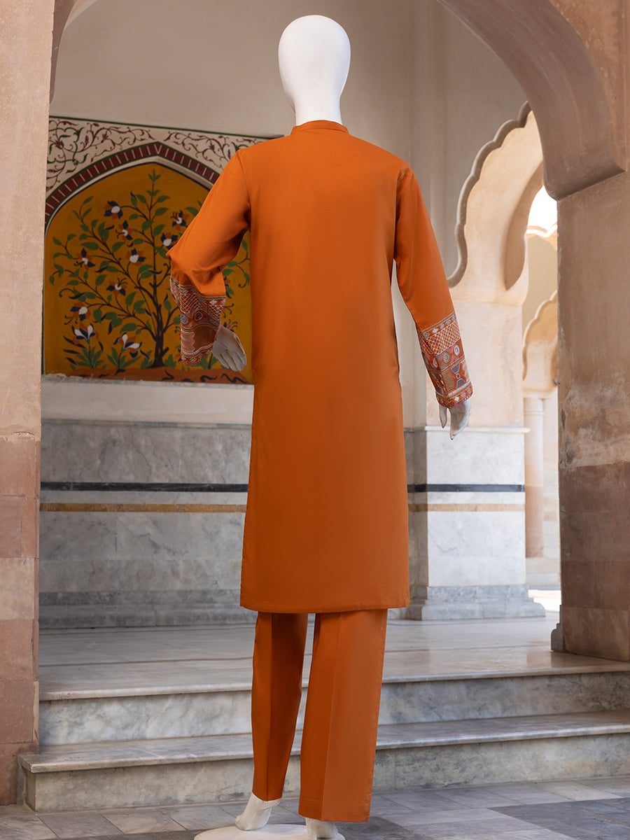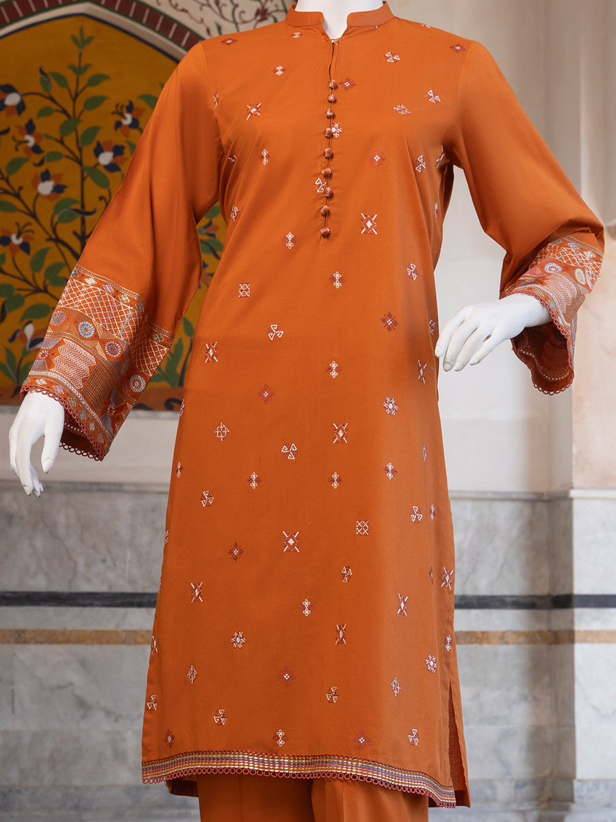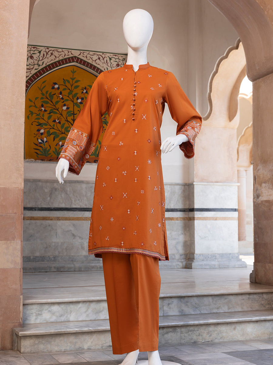 Rustic Charm 2 Piece is a thoughtfully designed outfit crafted from premium Lawn and Cambric fabric, offering breathable comfort with a refined everyday look. The basic shirt paired with matching trousers creates a balanced and modest silhouette, perfect for regular wear. Subtle embroidered motifs spread across the shirt add delicate charm, while the detailed sleeve borders and neatly finished hem enhance its polished appeal. The lightweight fabric ensures ease of movement and all-day comfort. With its clean structure and graceful detailing, this outfit is ideal for casual gatherings, workdays, and daily styling.