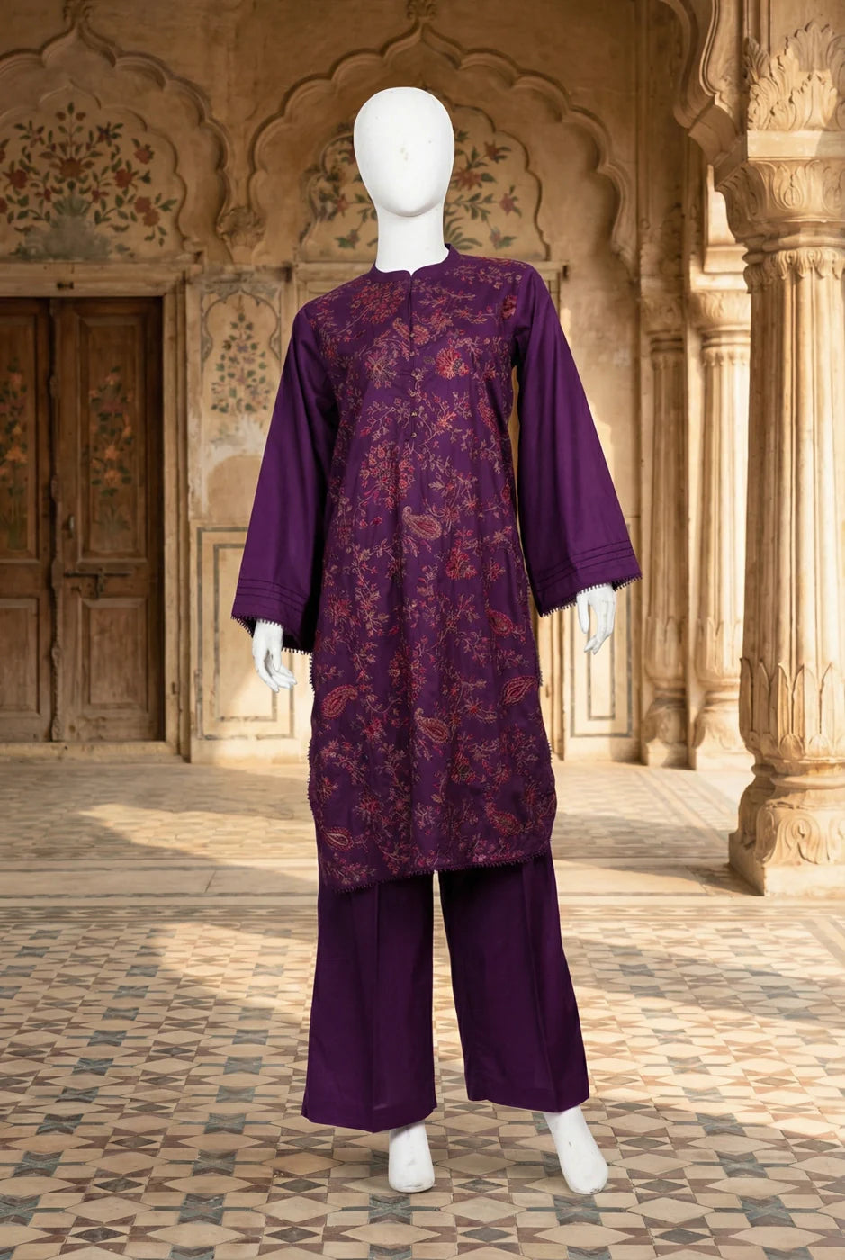 • Design: Basic Shirt with Shalwar and Botanical Paisley Print