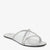- Design: Sheer crossed embellished straps, flat sole, slip-on style