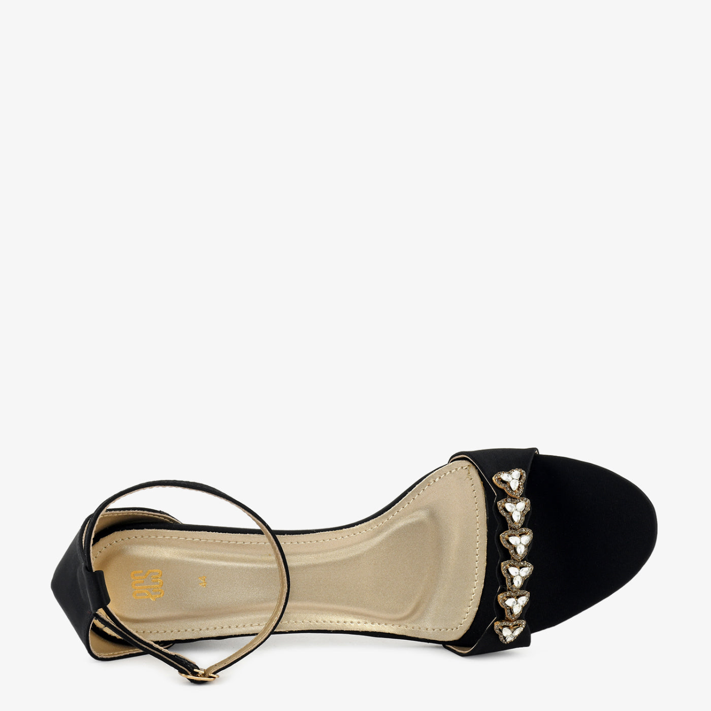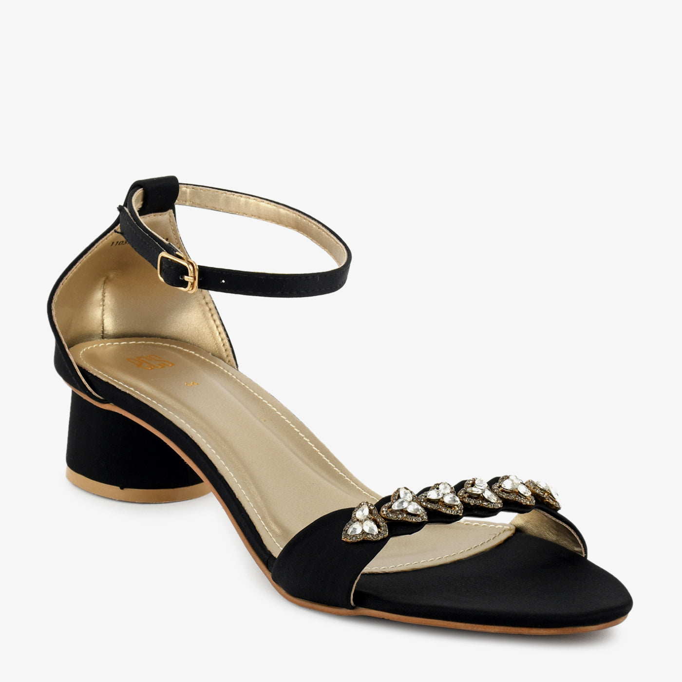 This elegant sandal is highlighted with decorative jewel detailing on the front strap. Designed for festive and semi-formal wear, it offers a stable block base. The cushioned insole supports long wear. An ankle strap ensures a secure fit. Its refined detailing elevates any outfit. Ideal for celebrations and gatherings. A stylish occasion sandal.