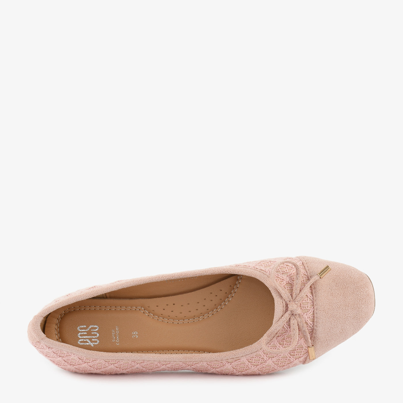 A beautifully crafted pair featuring intricate lacework and a dainty bow detail. Its soft interior and flexible sole ensure lasting comfort throughout the day. A chic choice for casual outings or semi-formal looks that need a gentle touch of charm.