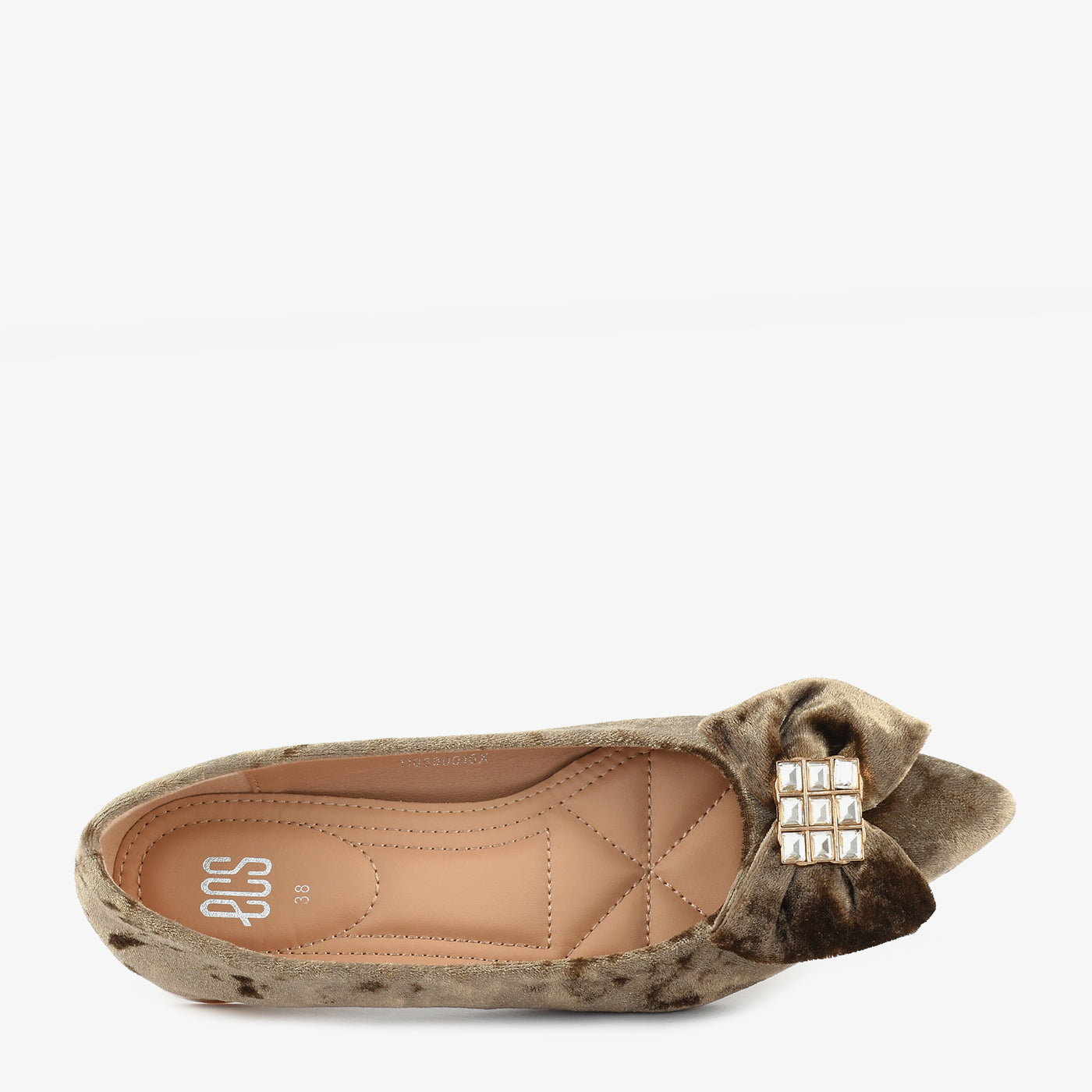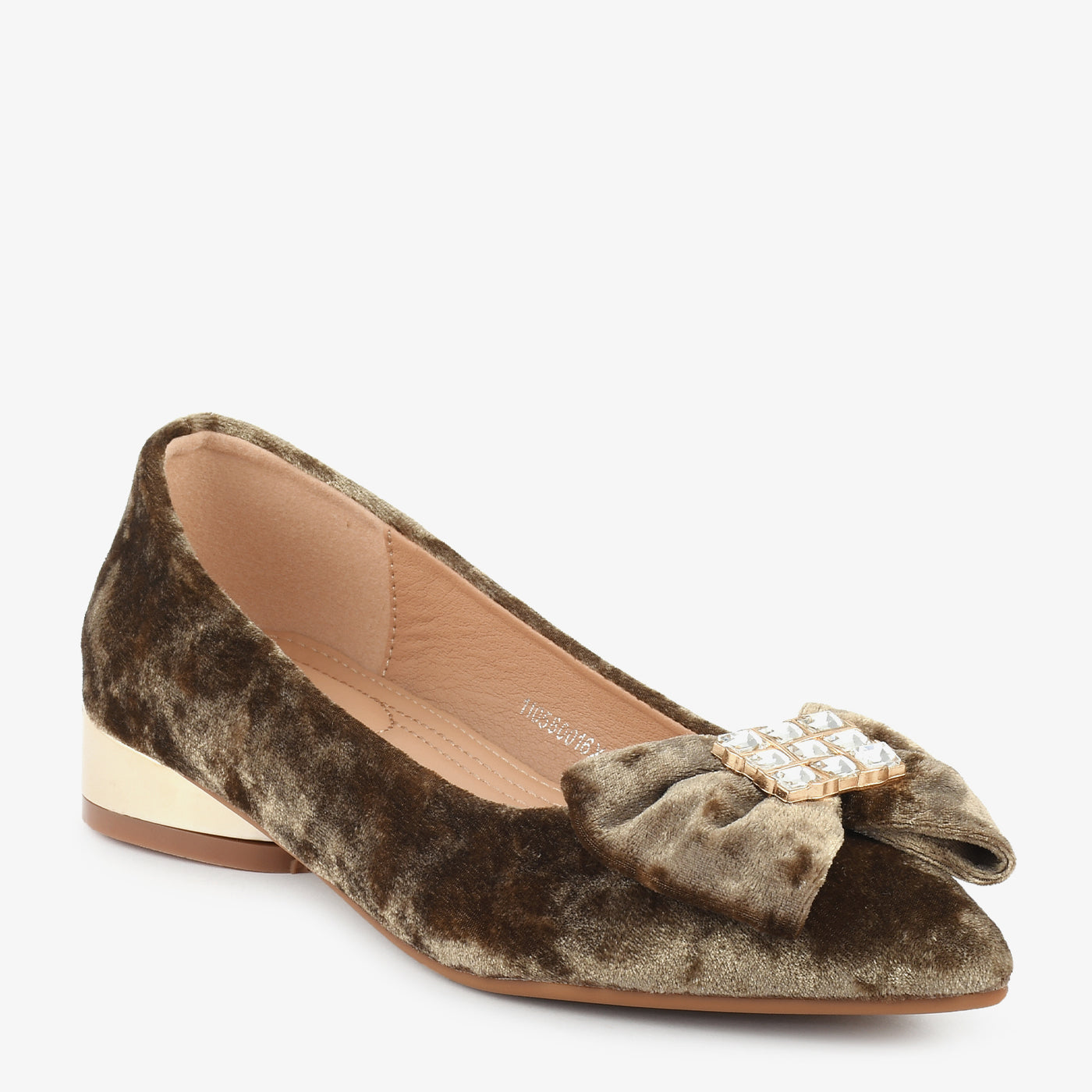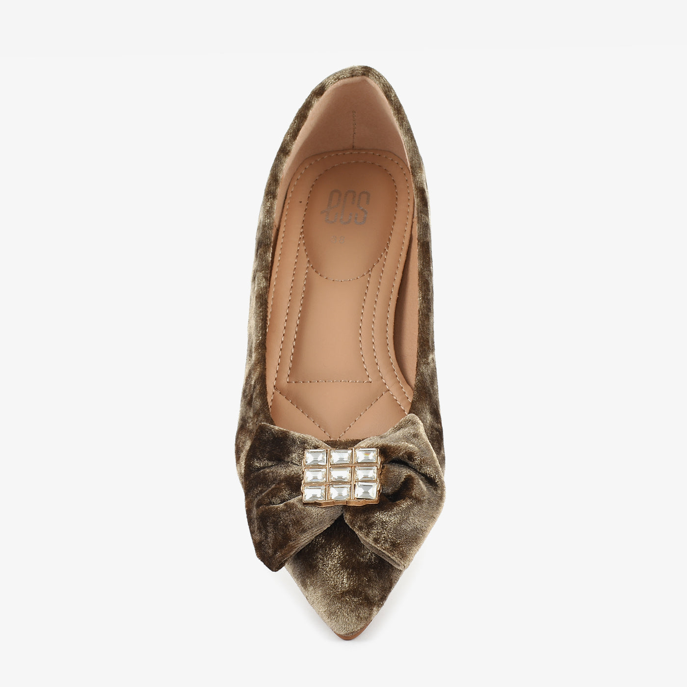 A bold bow with sparkling gem embellishments makes this flat a festive favorite. Comfortable yet glamorous, it is designed to add shine to any celebration outfit.