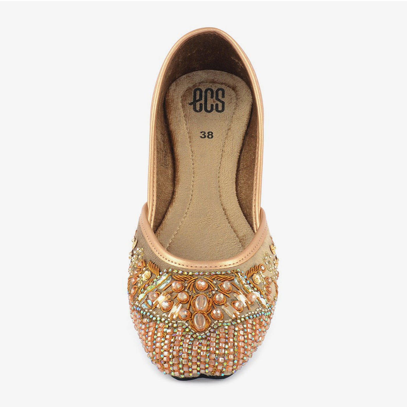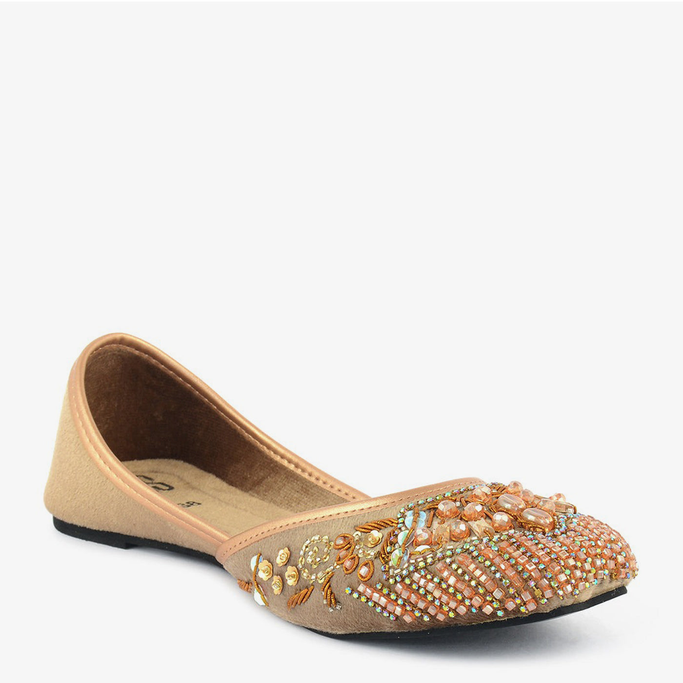 A richly embellished khussa that showcases meticulous beading and embroidery, ideal for special occasions.