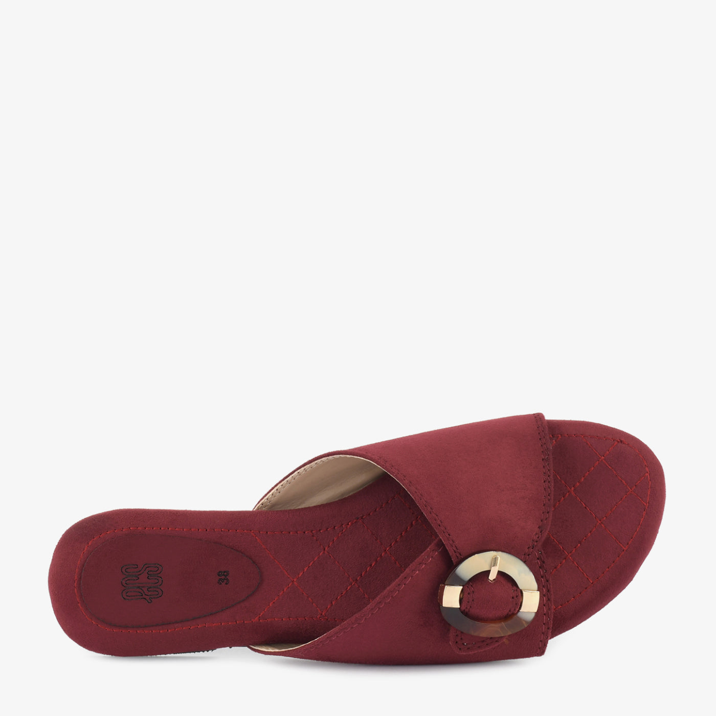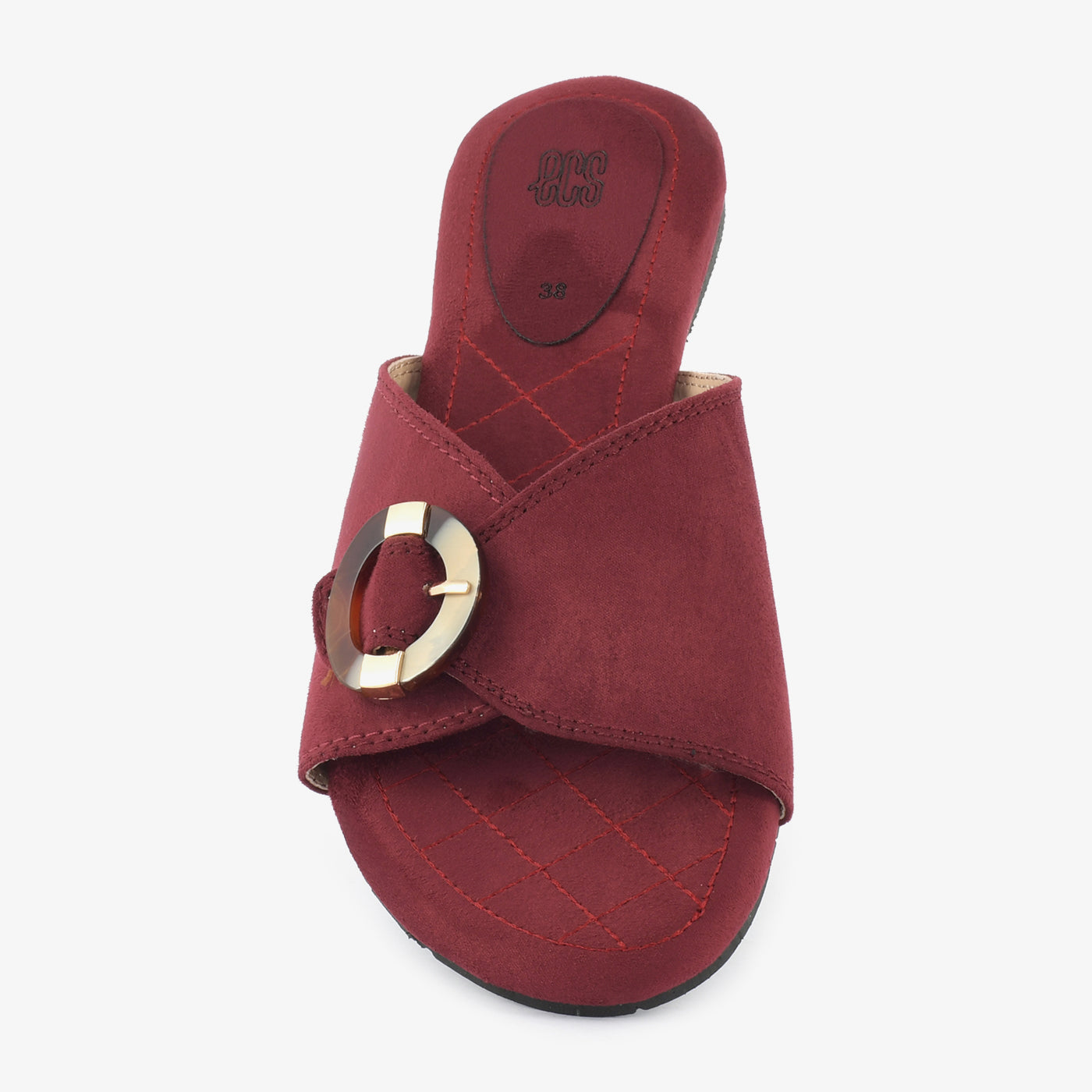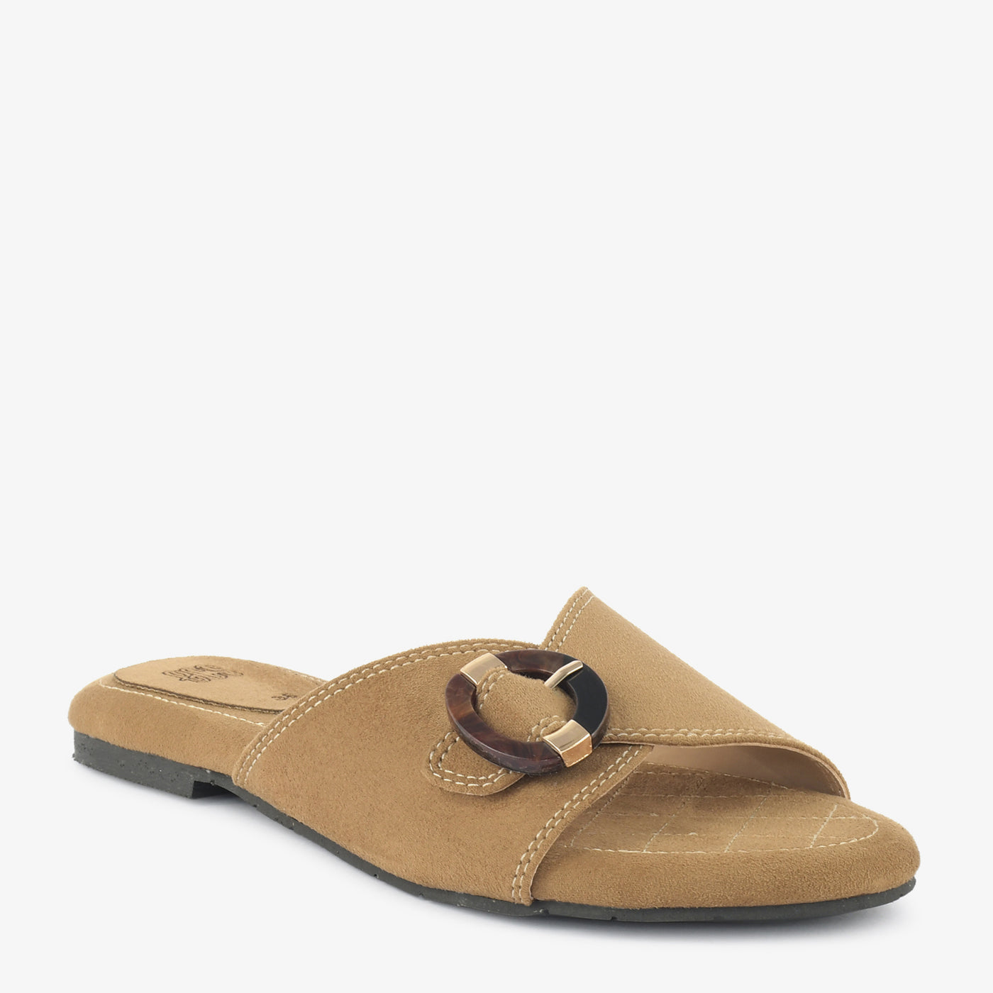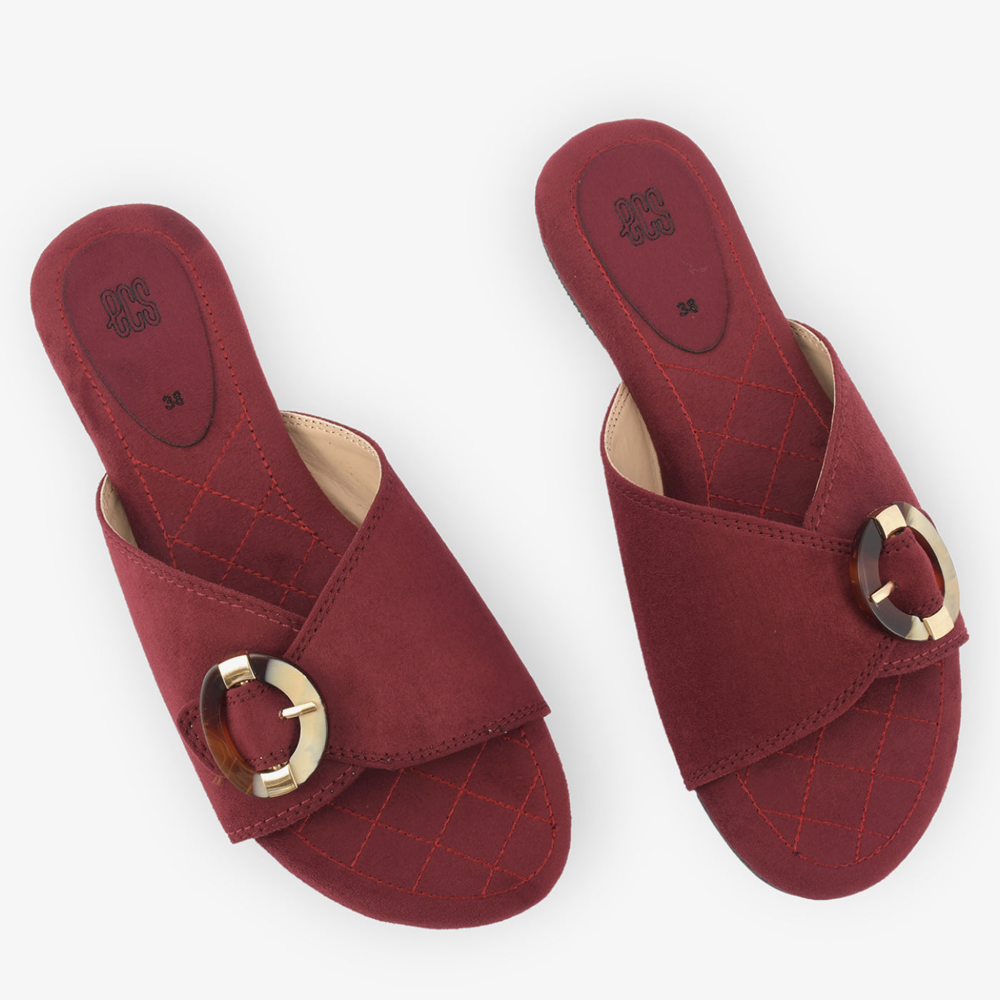 Add a touch of contemporary artistry to your casual look with these Sculpted Buckle Slides. Featuring a uniquely sculpted buckle detail and a comfortable flat sole, these slides offer a modern and stylish aesthetic. The slip-on style ensures ease of wear for everyday comfort.