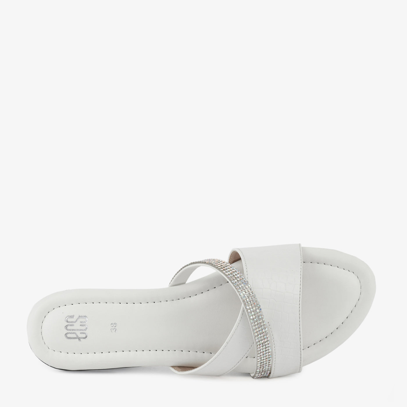 • Design: Crystal-embellished strap, Minimalist design, Flat sole